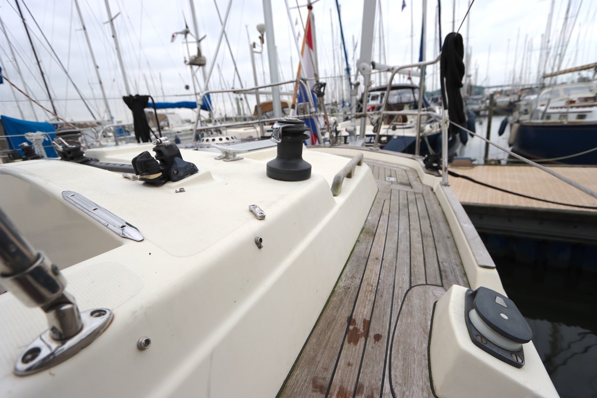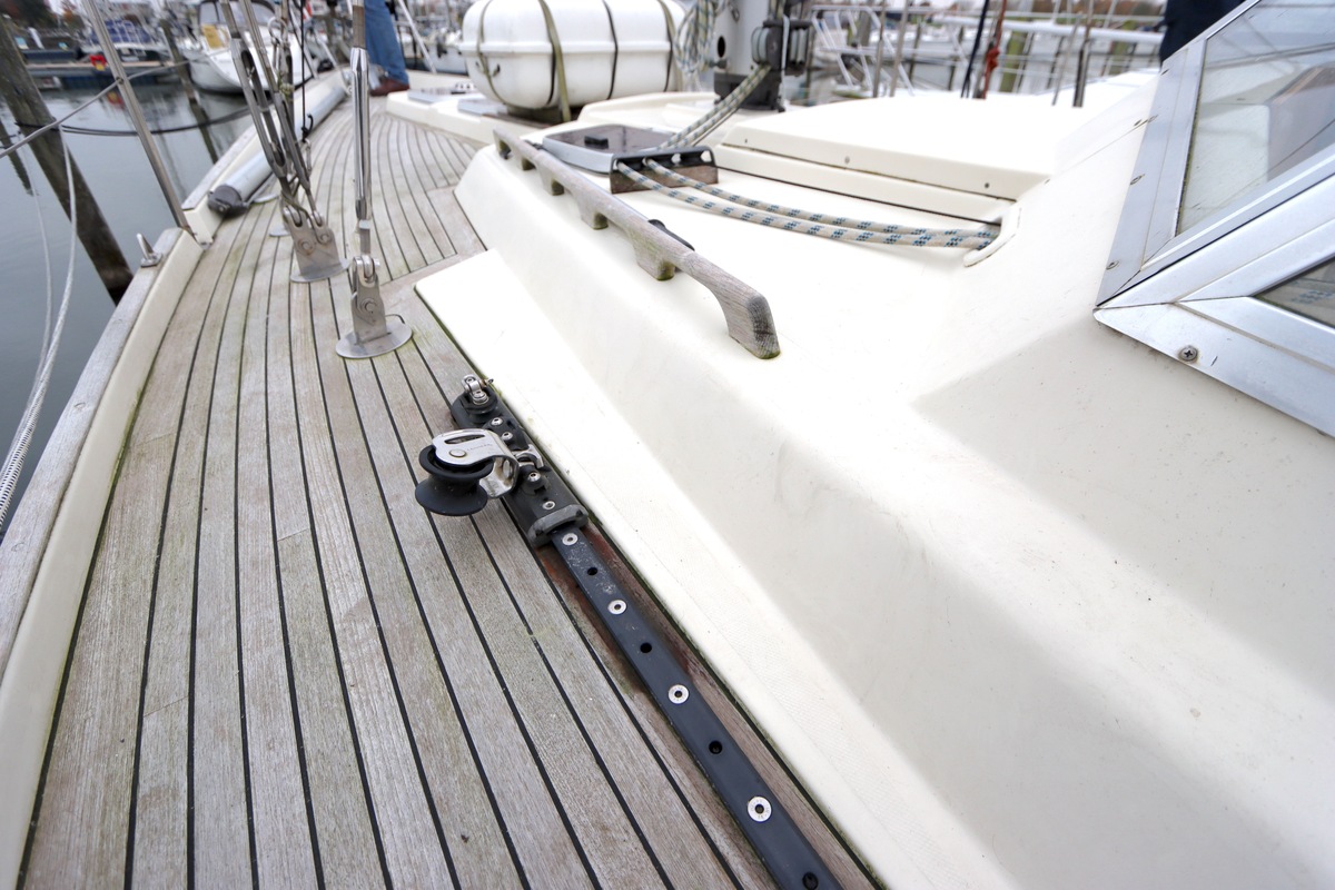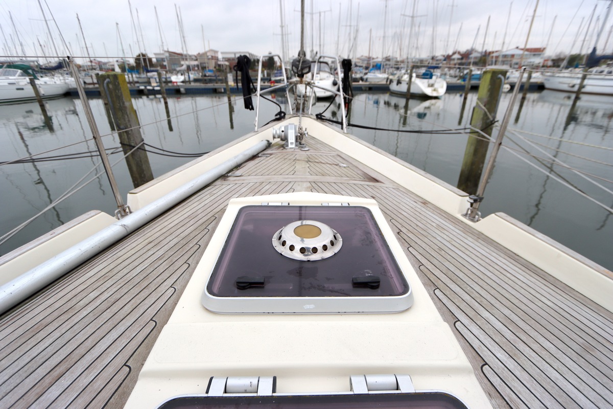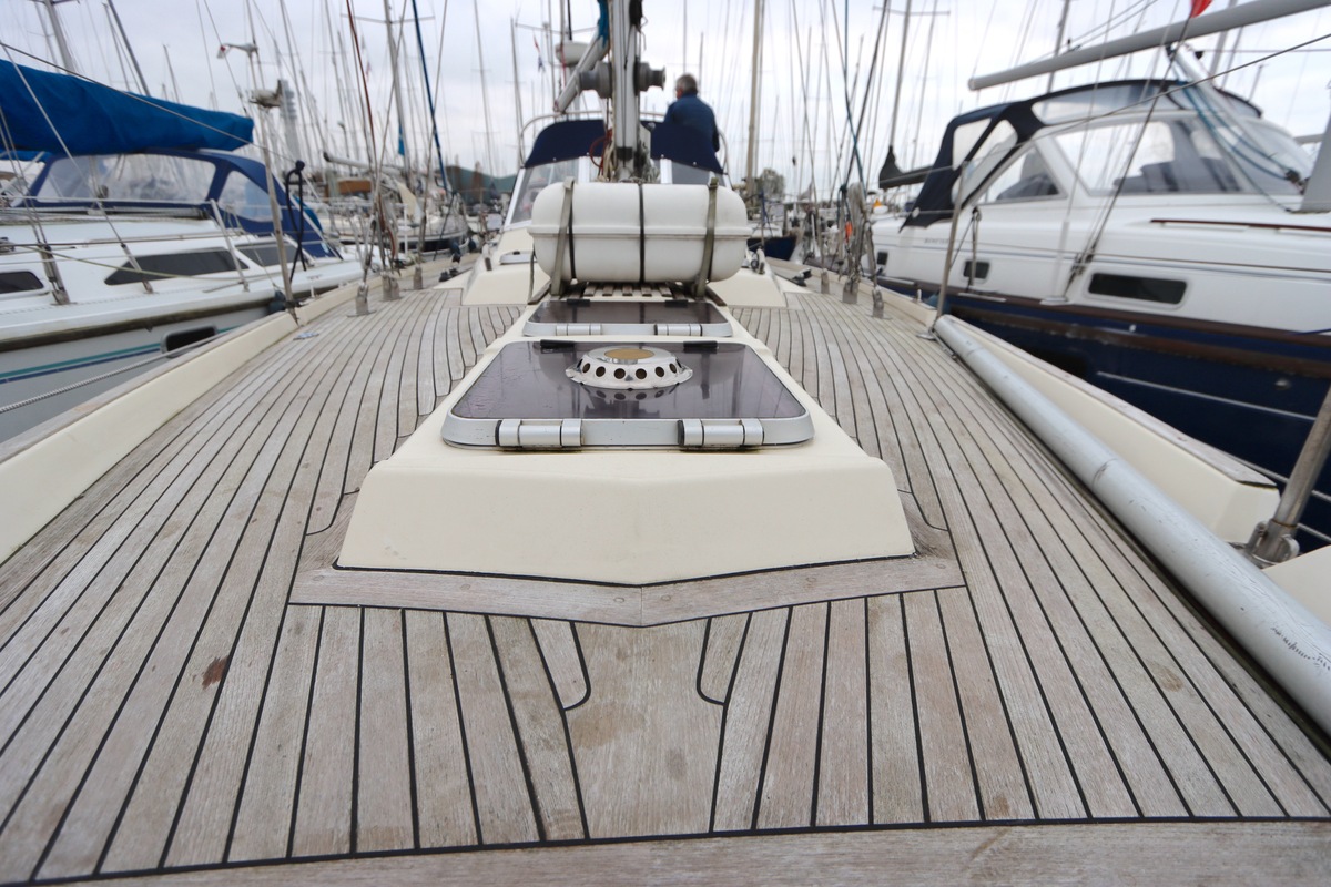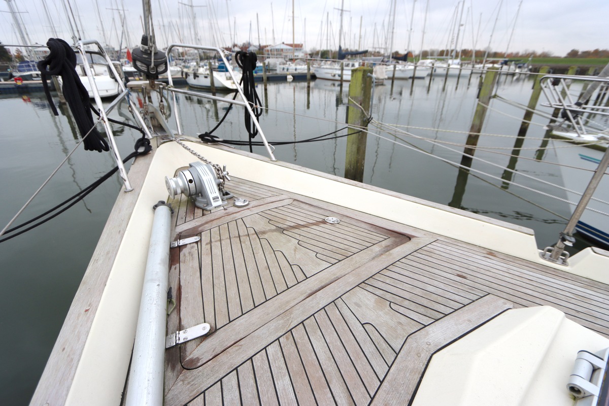 Sterk Nederlands schip met teakhouten interieur van hoge kwaliteit. Door middenkuip en windvaanstuurinrichting klaar voor lange reizen.