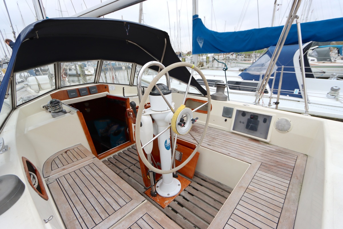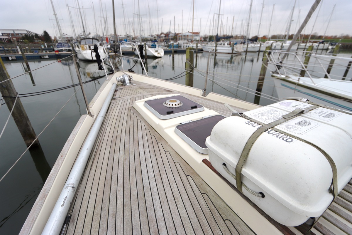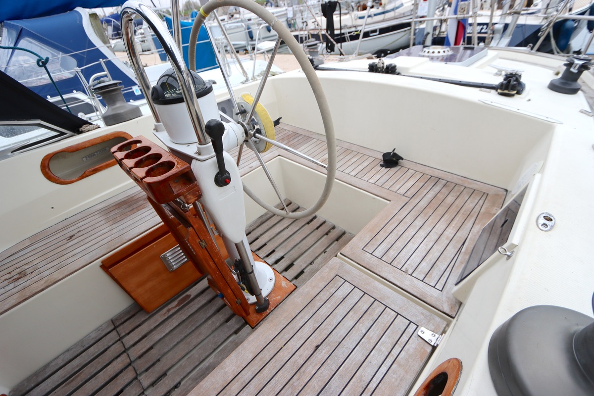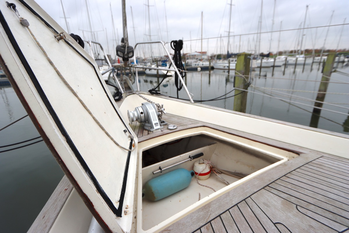 Sterk Nederlands schip met teakhouten interieur van hoge kwaliteit. Door middenkuip en windvaanstuurinrichting klaar voor lange reizen.