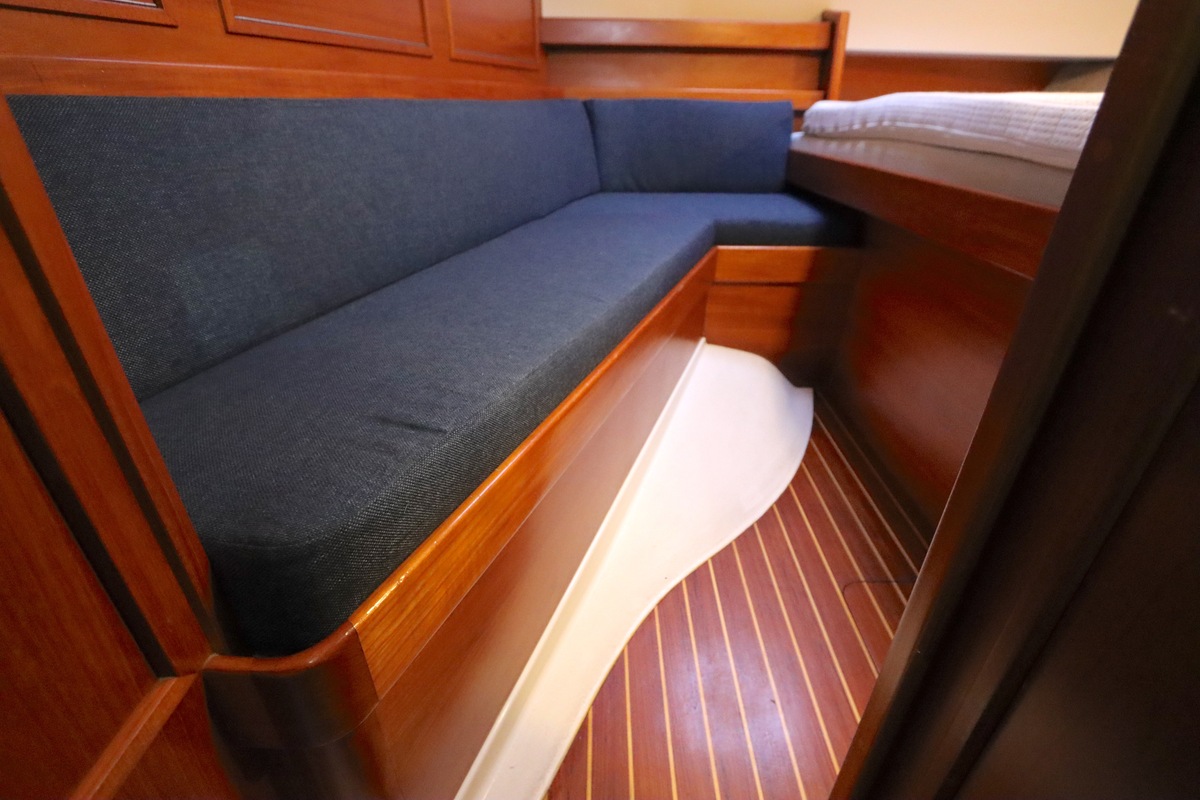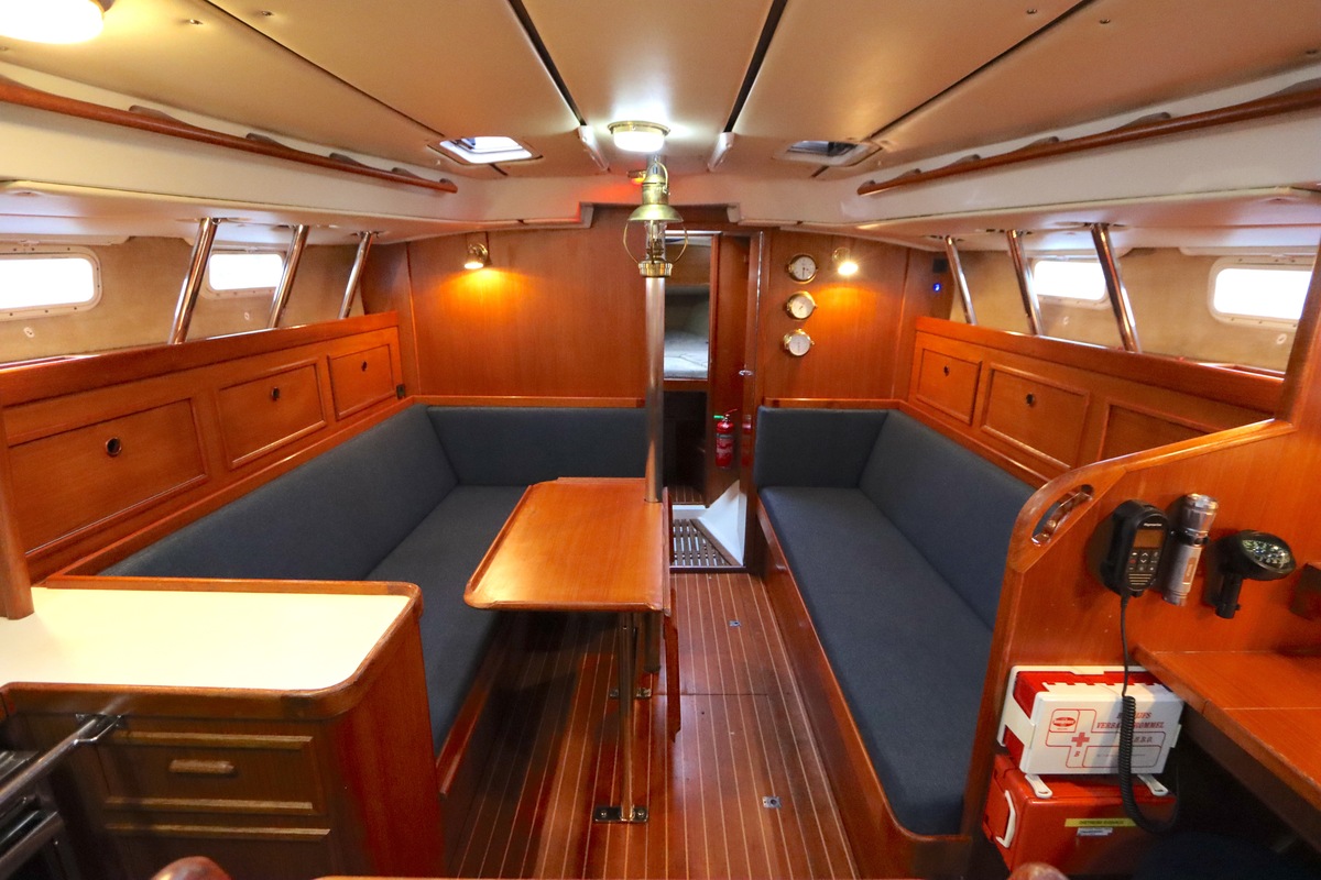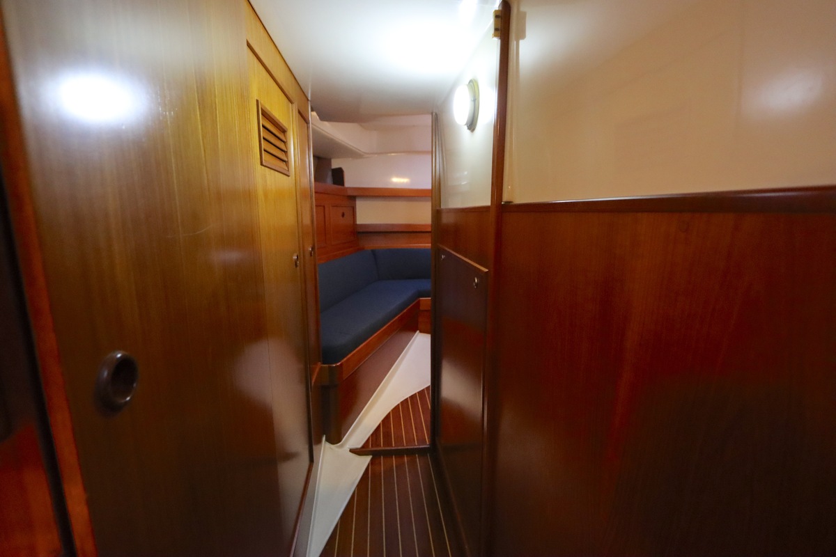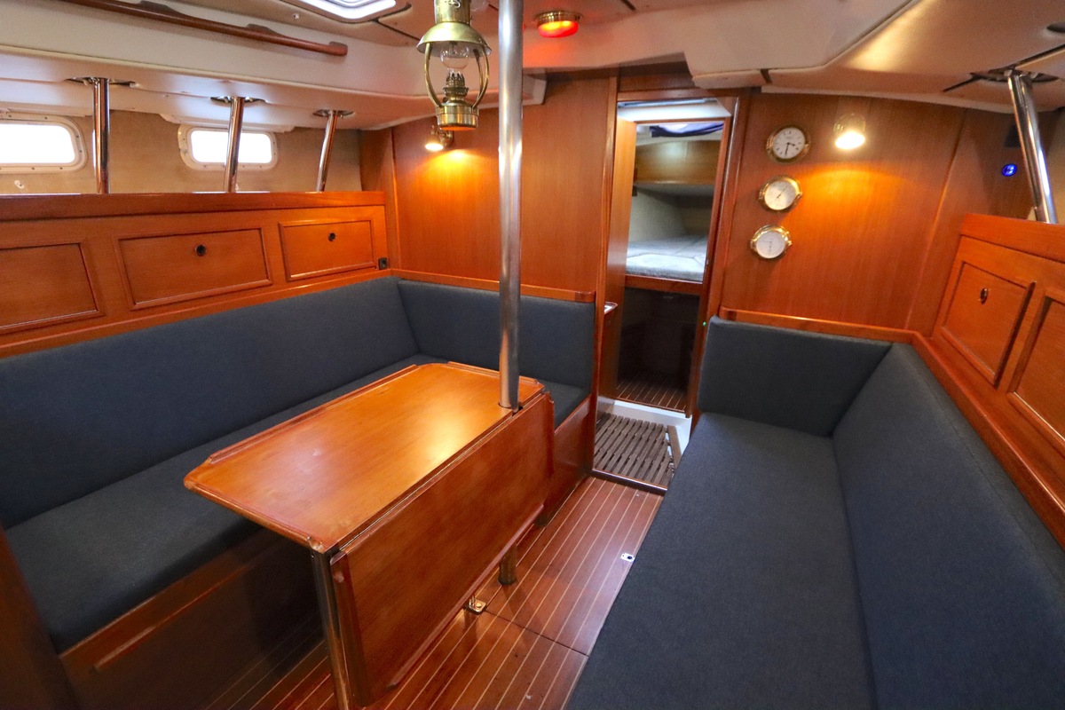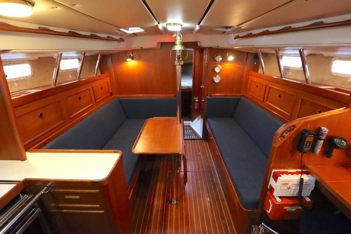 Sterk Nederlands schip met teakhouten interieur van hoge kwaliteit. Door middenkuip en windvaanstuurinrichting klaar voor lange reizen.