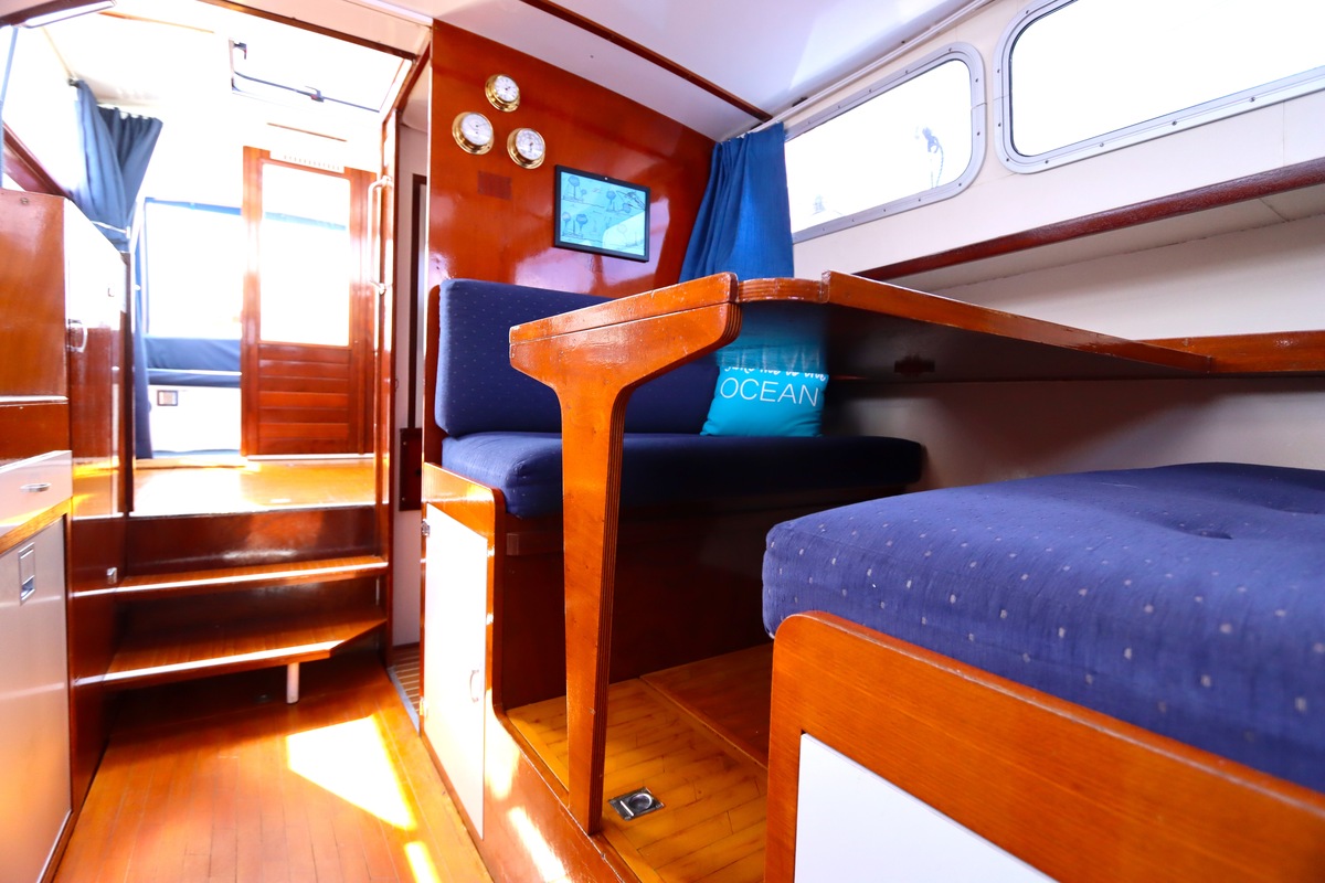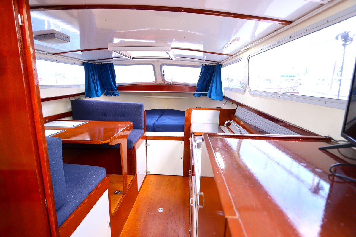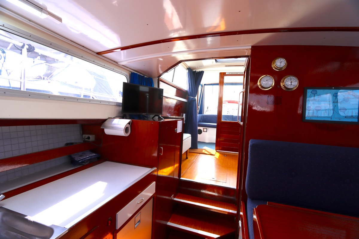Na een volledige refit in de afgelopen twee jaar verkeert dit schip in topconditie. Alles aan boord ademt zorg en aandacht. Van nieuwe plafonds, matrassen, kussens en gordijnen tot een ongebruikte TV, stuurstoel en verwarming – het is allemaal aanwezig. Het lak- en schilderwerk, zowel binnen als buiten, werd in april en mei 2024 professioneel uitgevoerd. Ook het motoronderhoud is in mei 2024 gedaan, inclusief een nieuwe impeller in april 2025. De mahonie betimmering en vloeren zijn opnieuw gelakt.