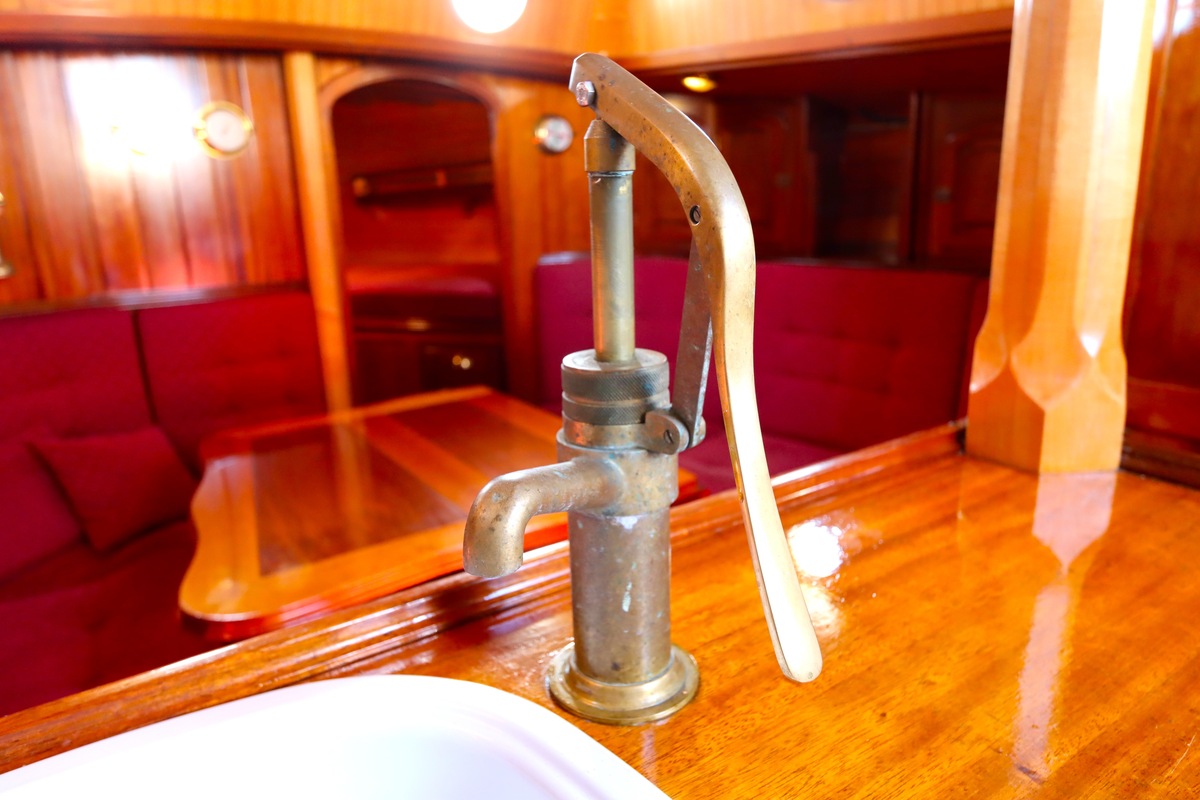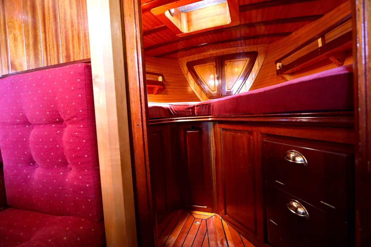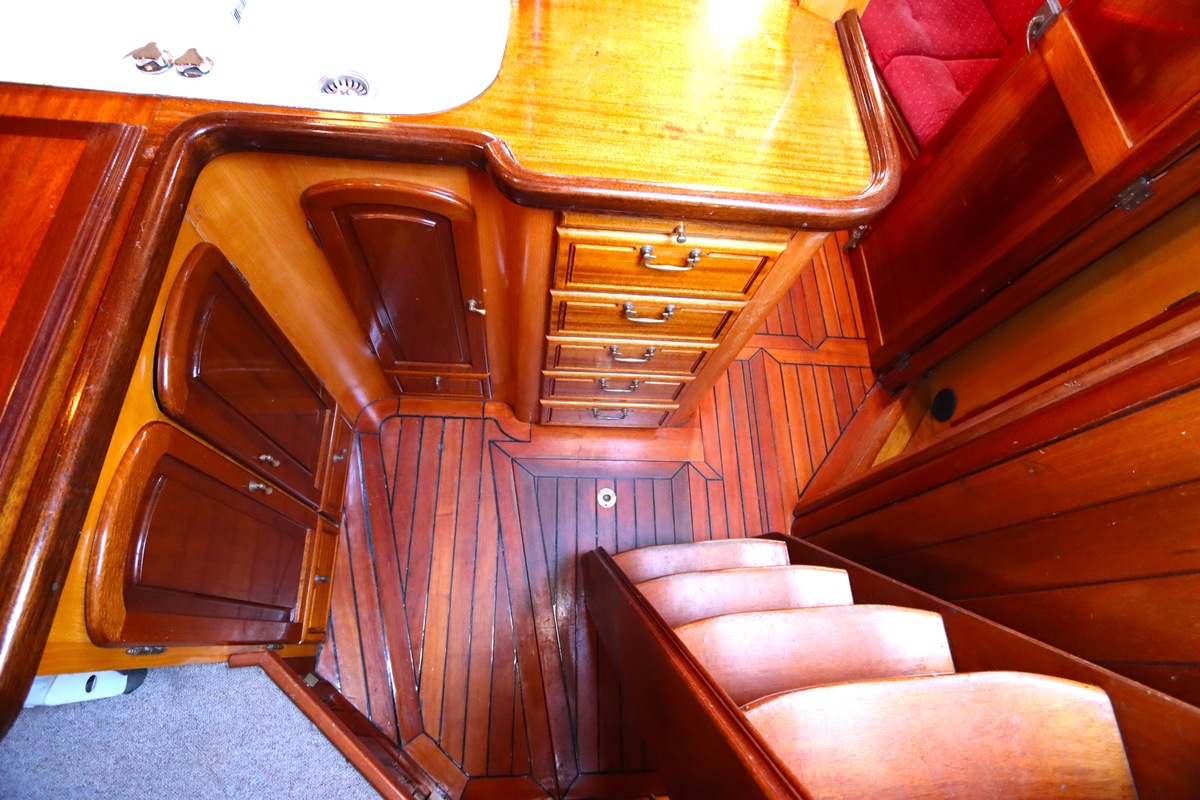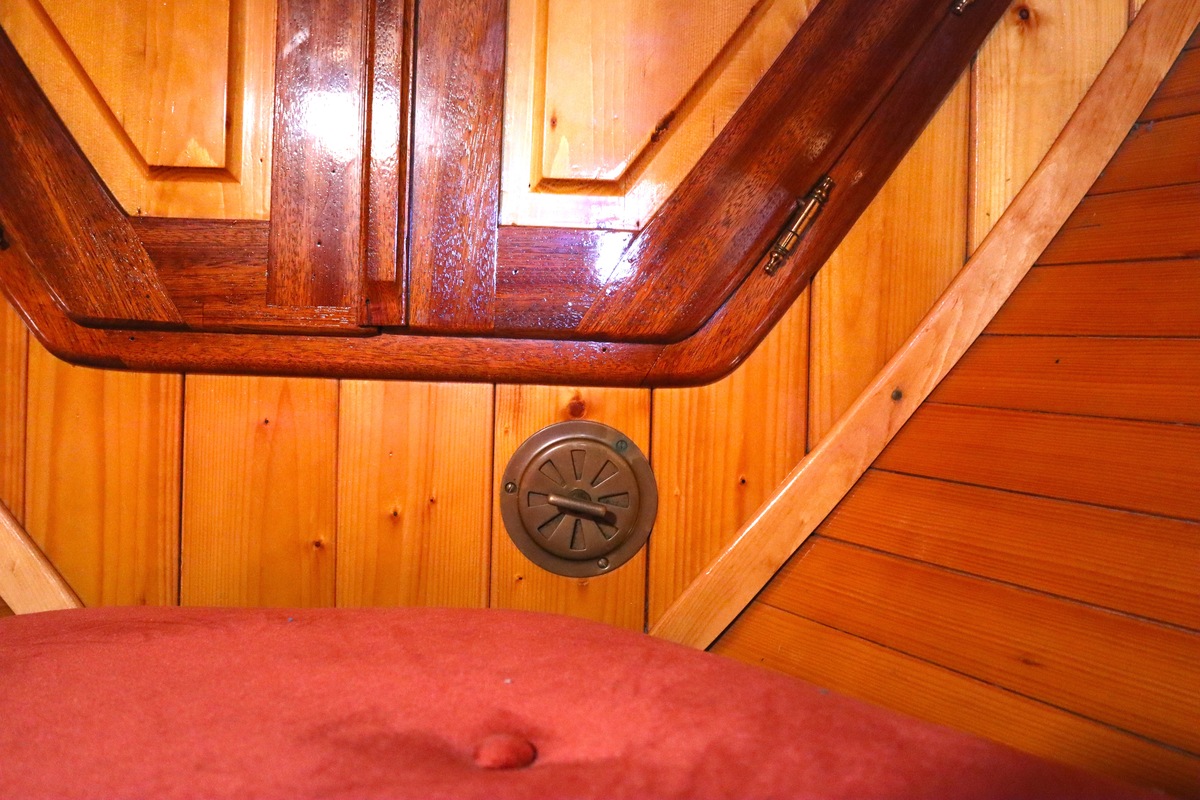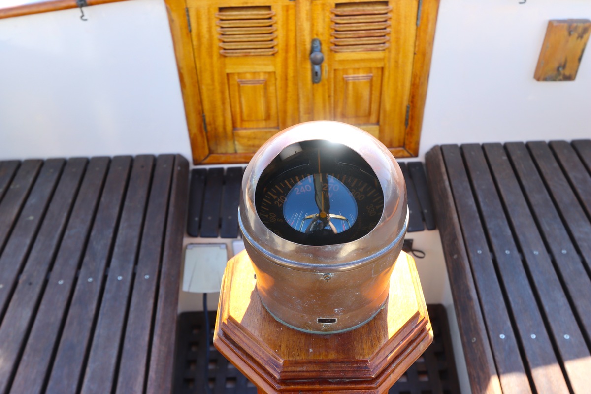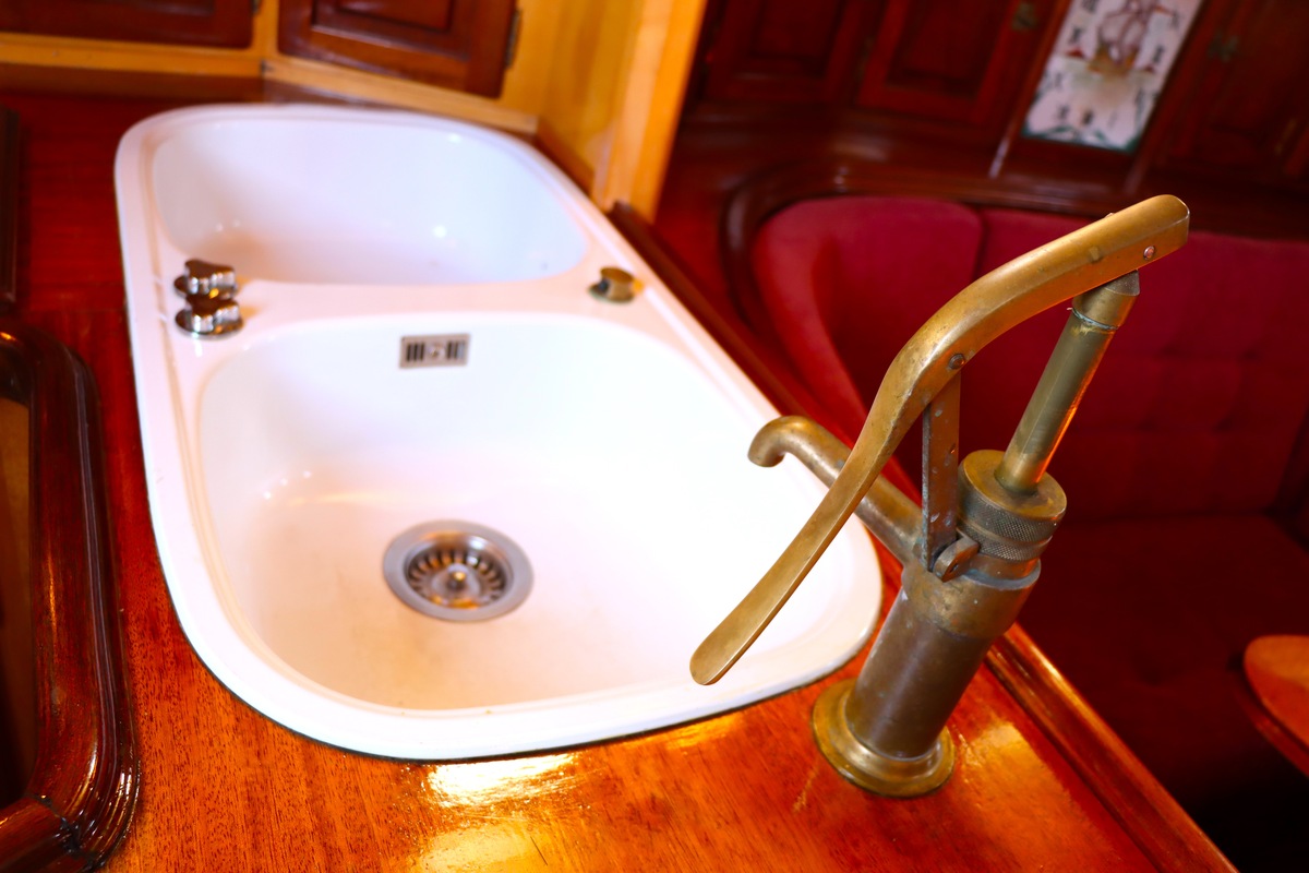 Maar het echte pronkstuk bevindt zich onderdeks. Het interieur is met ongekende precisie en liefde voor detail ingetimmerd. Geen concessies aan tijd of materiaal – en dat zie je in alles. Van de houtverbindingen tot de afwerking alles straalt vakmanschap uit. Het is een schip dat niet alleen gebouwd is om de wereldzeeën te trotseren, maar ook om je thuis te laten voelen zodra je aan boord stapt. Een echte blikvanger, van buiten én van binnen.