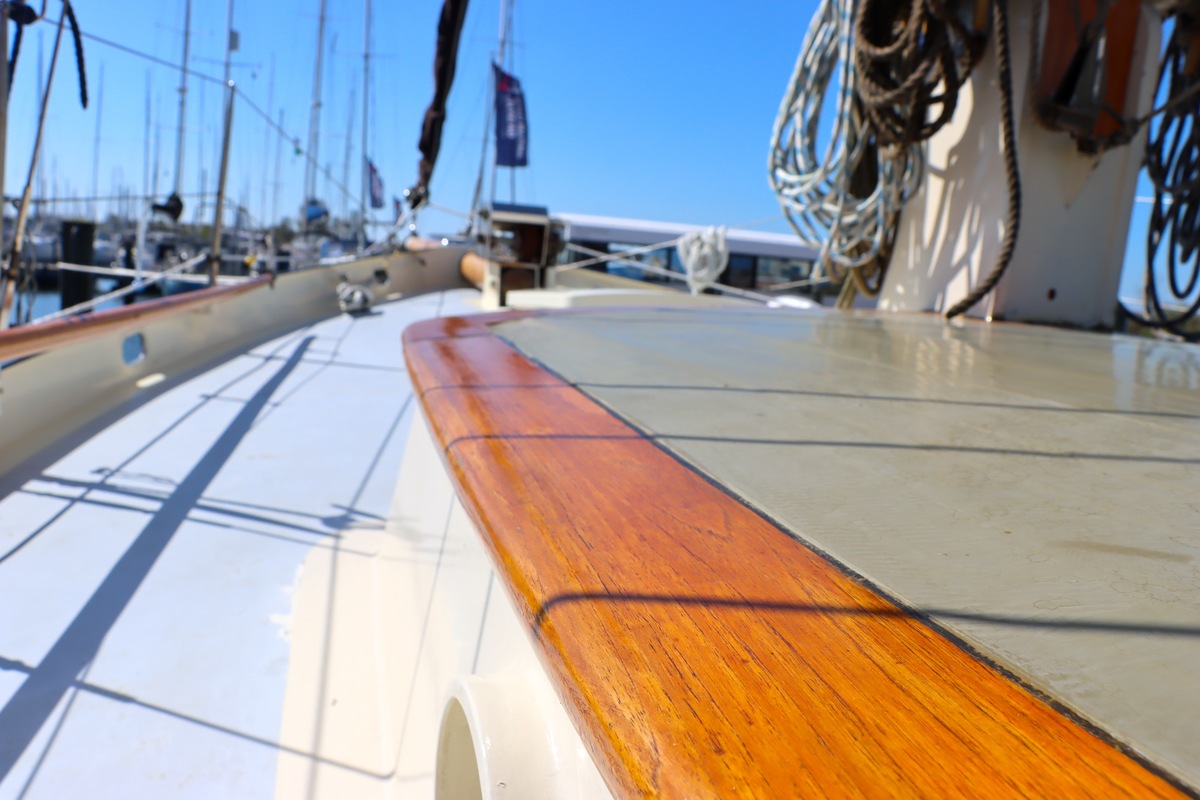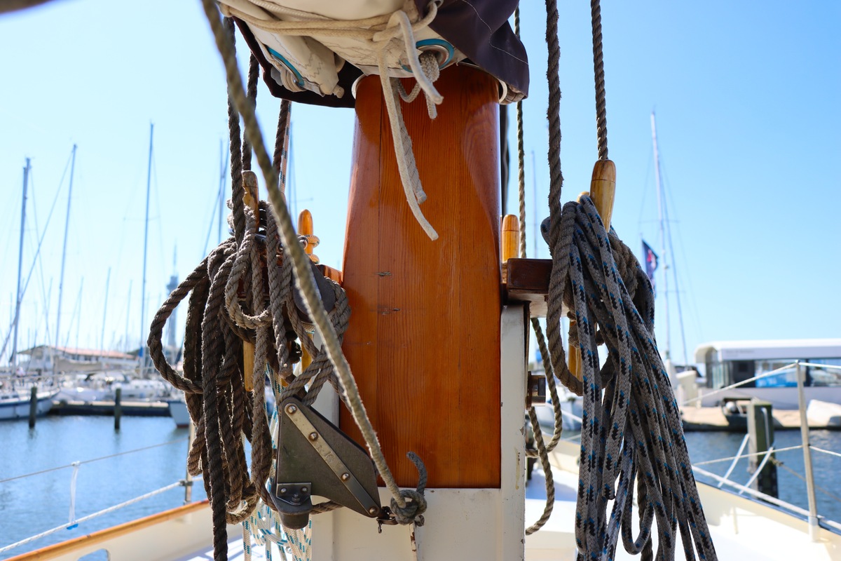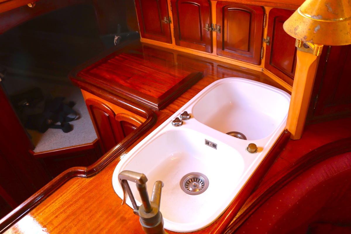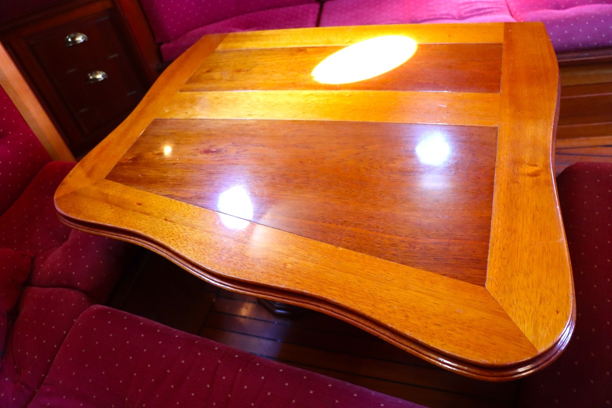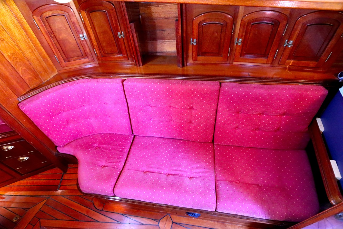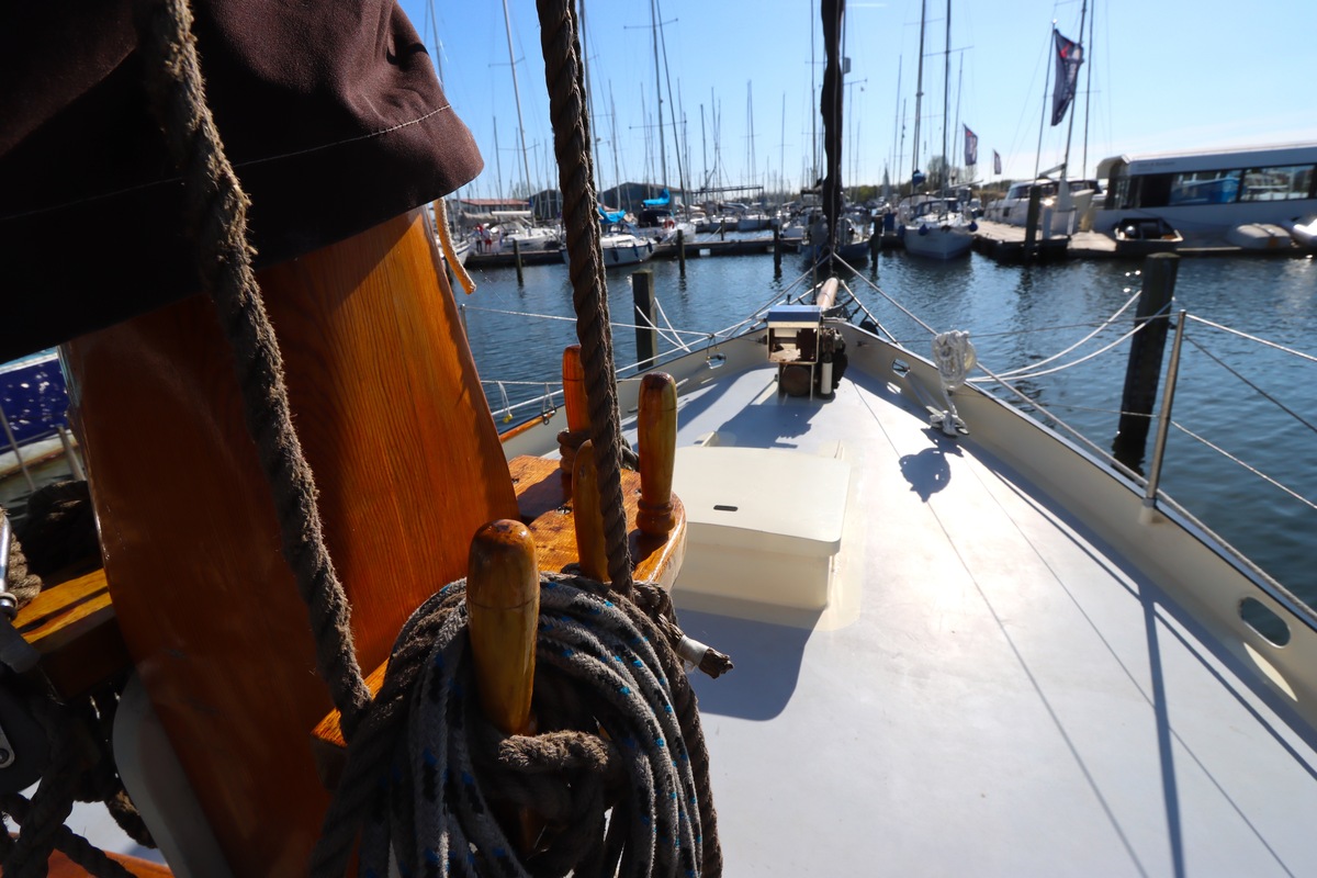 Maar het echte pronkstuk bevindt zich onderdeks. Het interieur is met ongekende precisie en liefde voor detail ingetimmerd. Geen concessies aan tijd of materiaal – en dat zie je in alles. Van de houtverbindingen tot de afwerking alles straalt vakmanschap uit. Het is een schip dat niet alleen gebouwd is om de wereldzeeën te trotseren, maar ook om je thuis te laten voelen zodra je aan boord stapt. Een echte blikvanger, van buiten én van binnen.