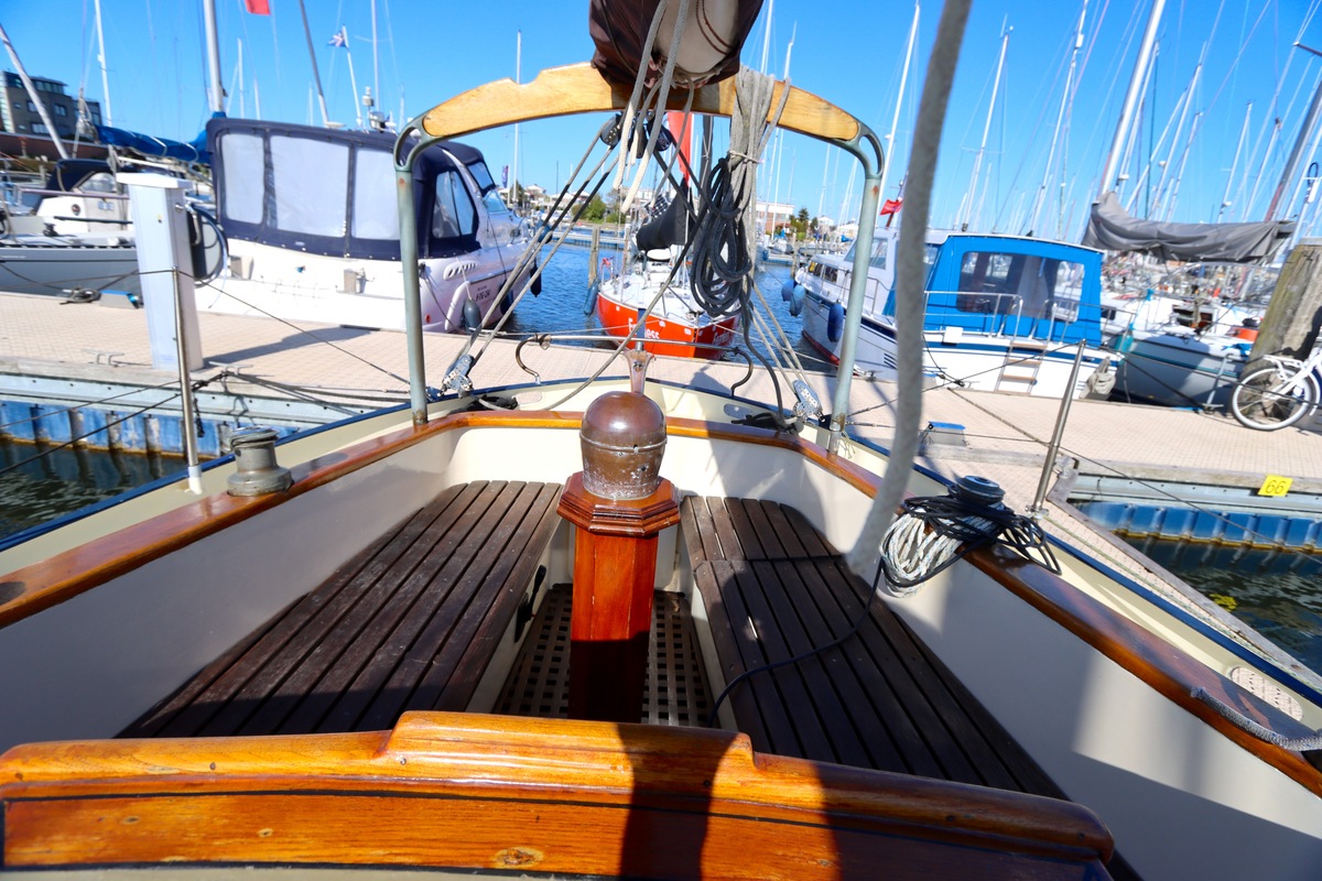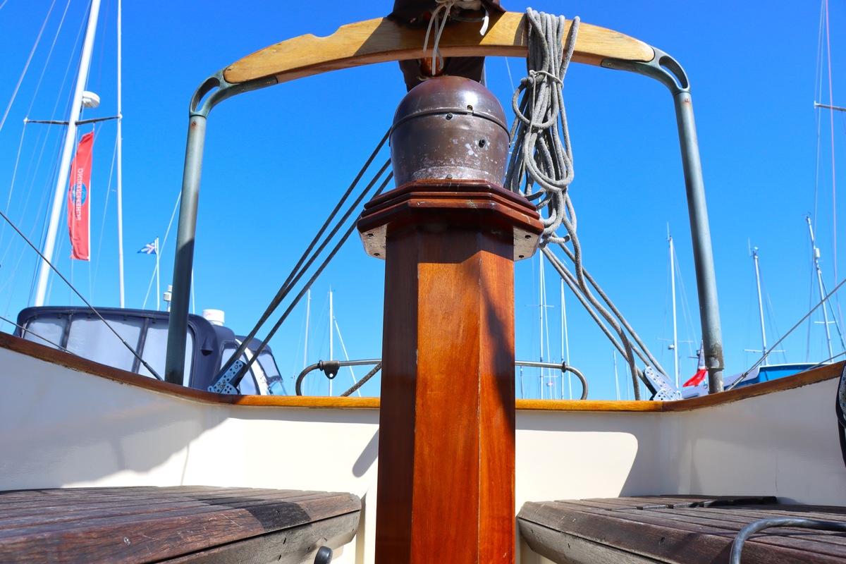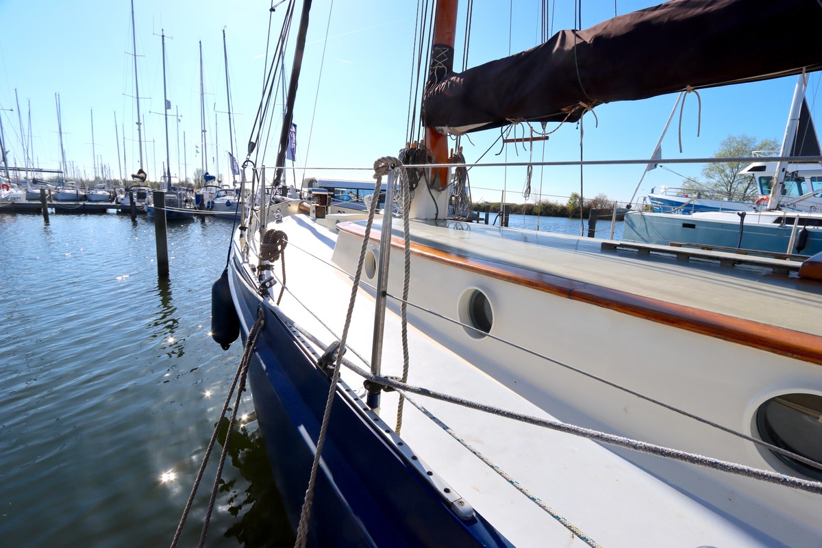 Deze specifieke Colin Archer ademt traditie en vakmanschap. De stevig gebouwde romp en de kenmerkende ronde kont geven haar die klassieke uitstraling waar liefhebbers voor vallen. De tuigage is traditioneel en degelijk, precies zoals het hoort bij een schip met zoveel historie.