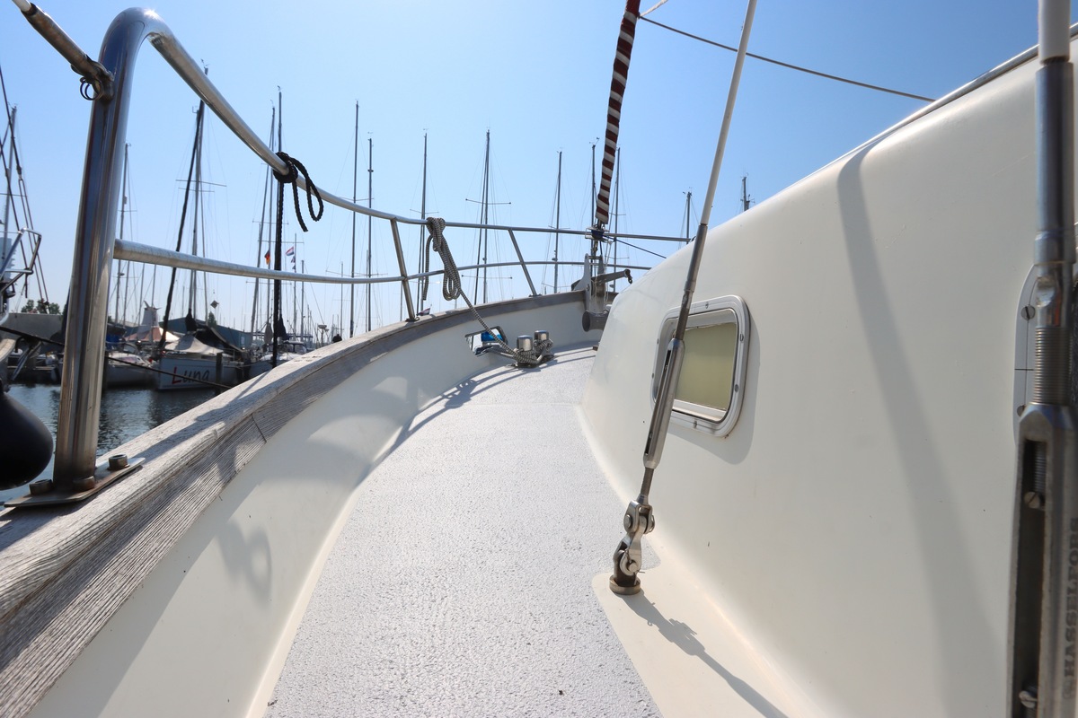 Stuurwiel Binnen en buiten2025 Onderwaterschip volledig kaal gehaald, voorzien van 6 lagen Gelshield en nieuwe antifouling aangebracht.