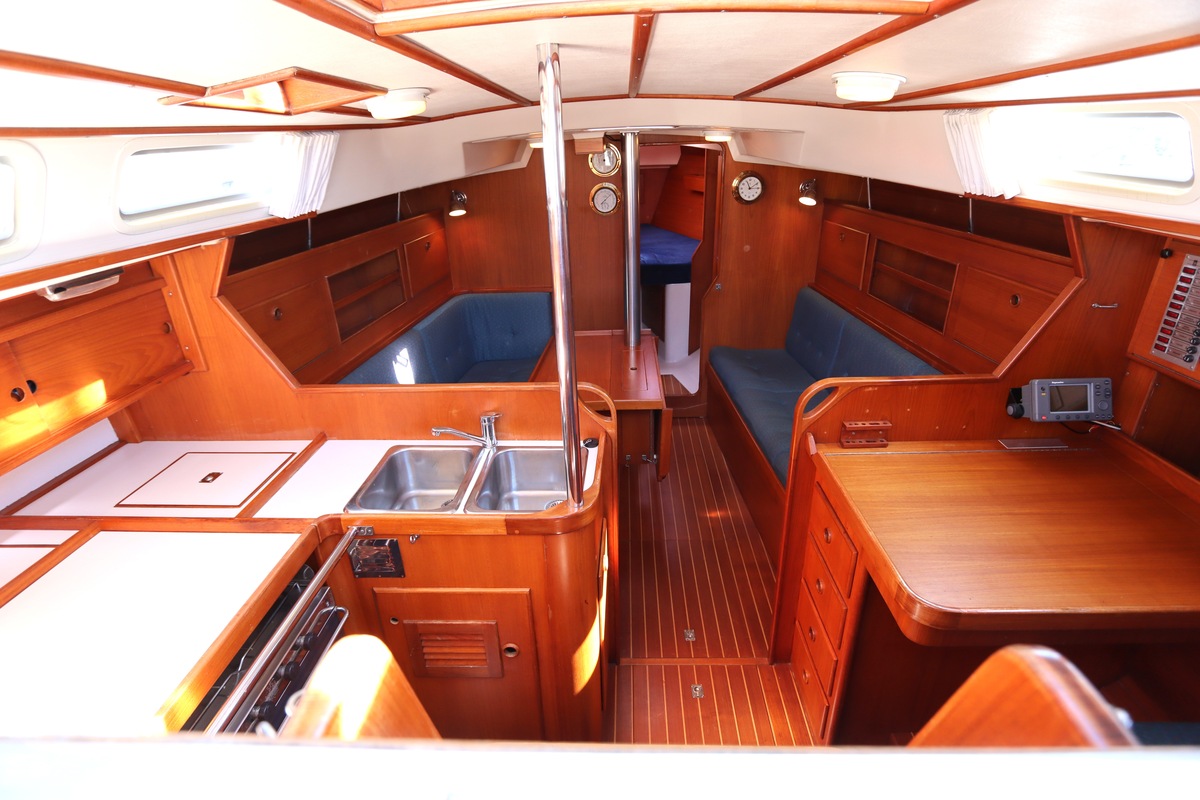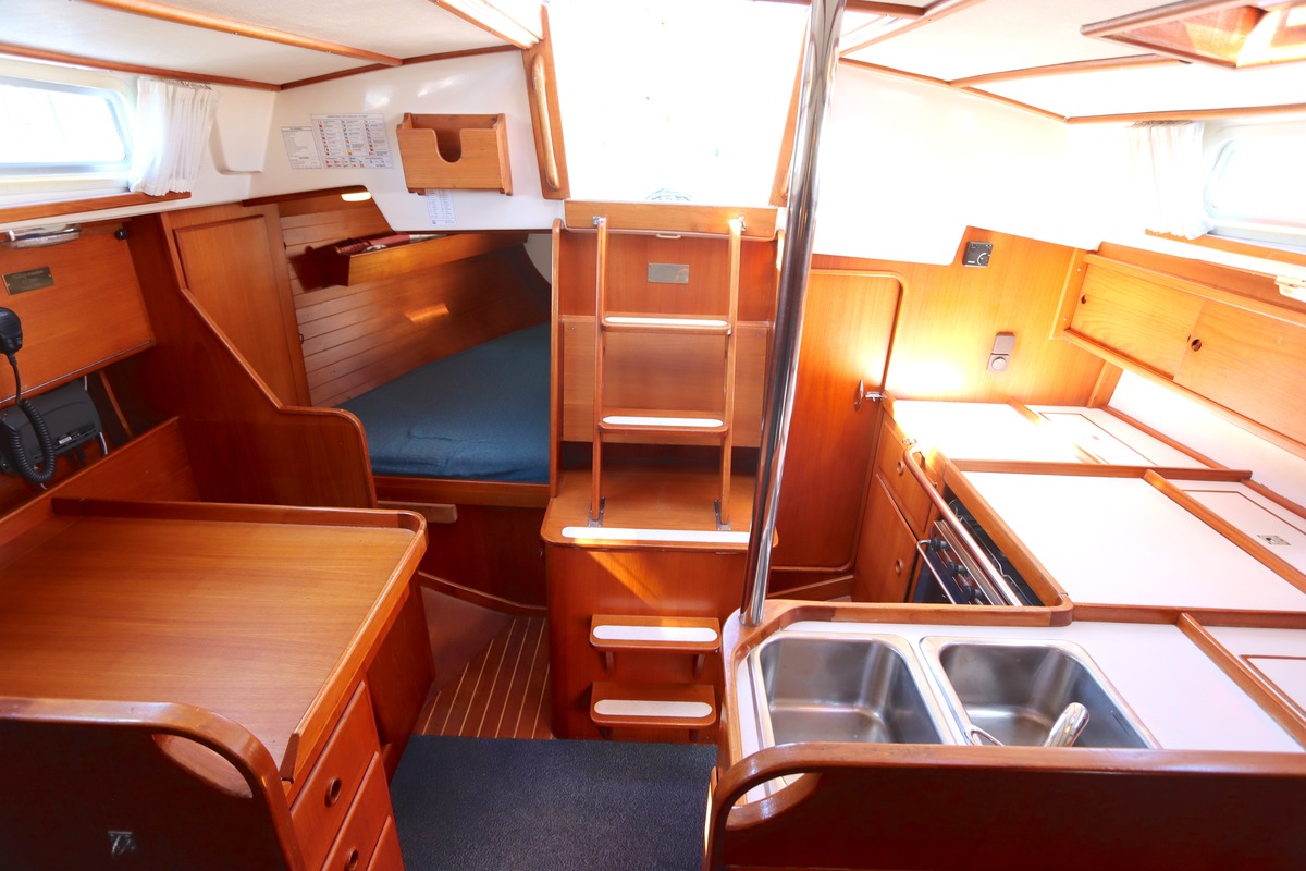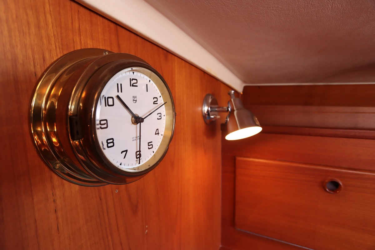 Met haar lengte van 10.44 meter en doordachte indeling biedt de boot veel ruimte en comfort, zowel boven- als benedendeks. Het warme teak-hout zorgt voor een knusse sfeer. De boot is uitgerust met een gezellige salon, praktische kombuis, natte cel en twee slaapcabines. Ideaal voor langere reizen of comfortabele weekendtochten.