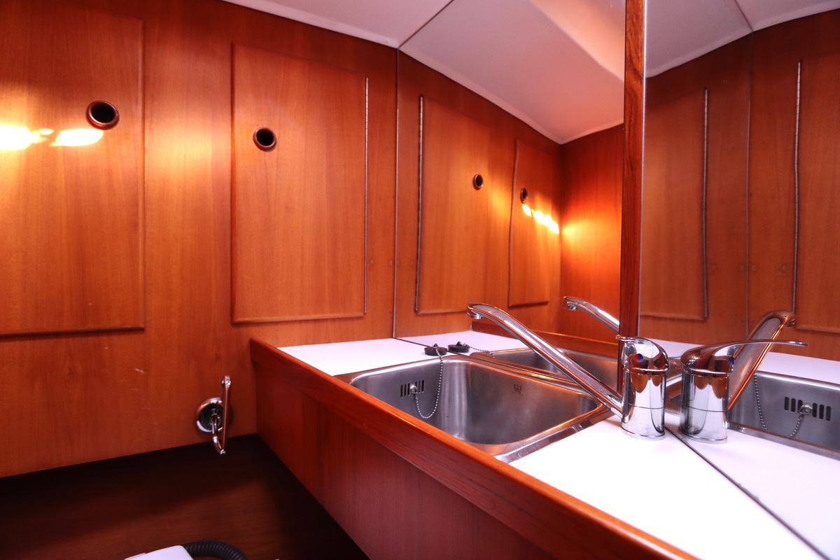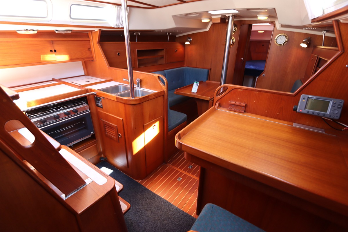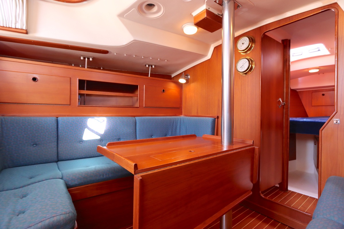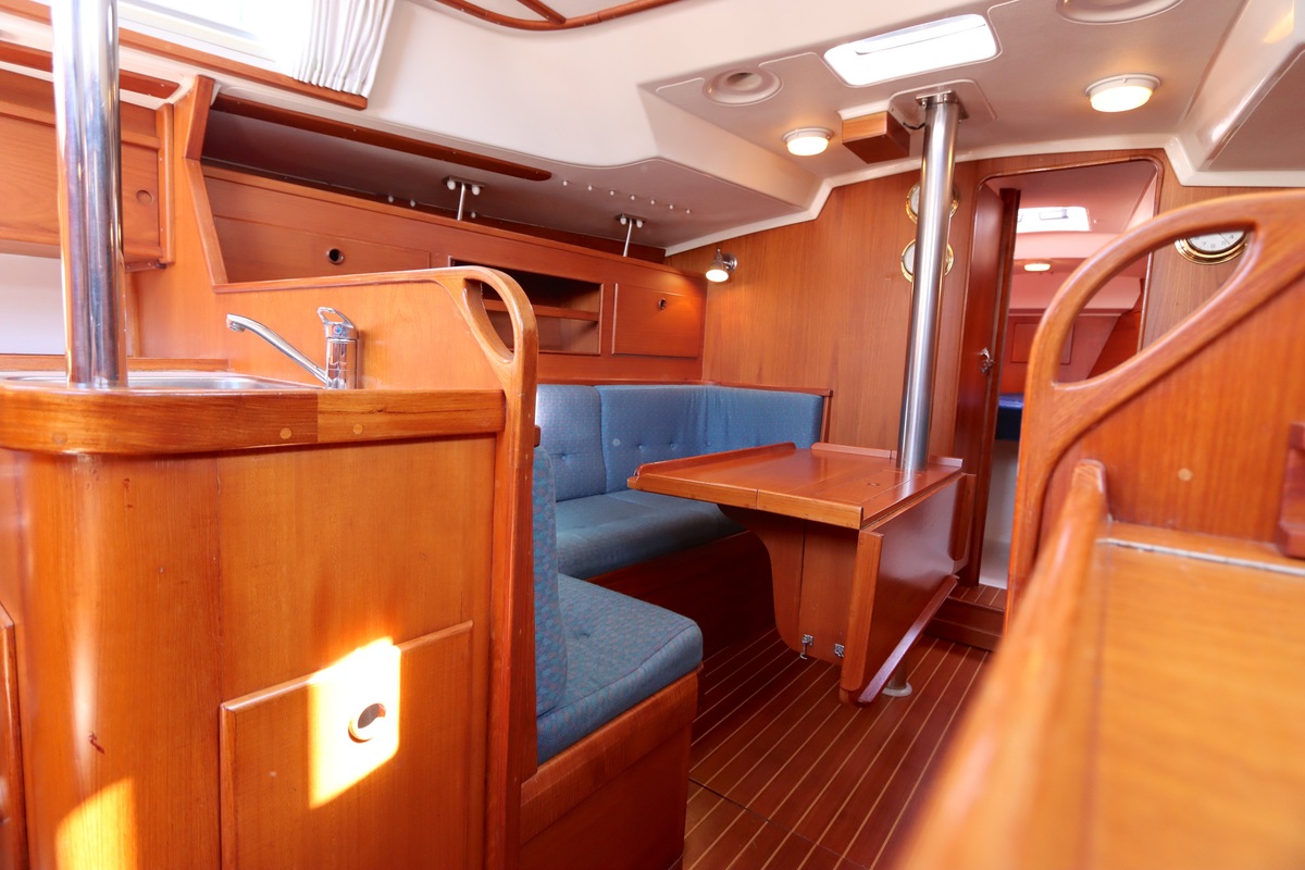 Met haar lengte van 10.44 meter en doordachte indeling biedt de boot veel ruimte en comfort, zowel boven- als benedendeks. Het warme teak-hout zorgt voor een knusse sfeer. De boot is uitgerust met een gezellige salon, praktische kombuis, natte cel en twee slaapcabines. Ideaal voor langere reizen of comfortabele weekendtochten.