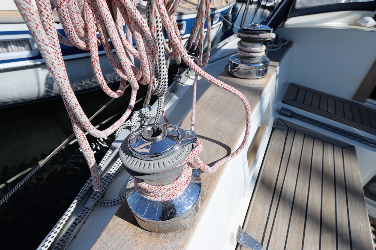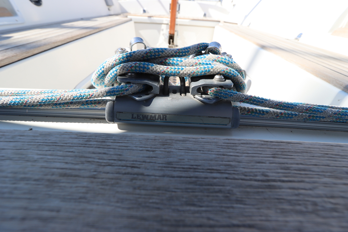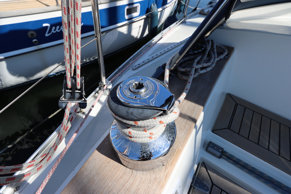 Verlengde genuarails met vanuit de kuip verstelbare lei-ogen.