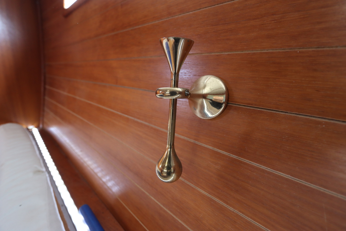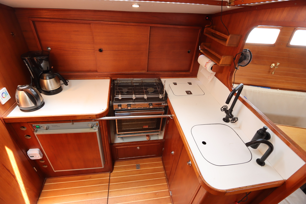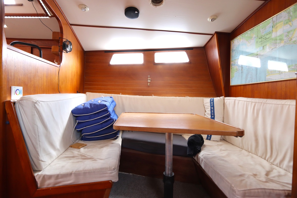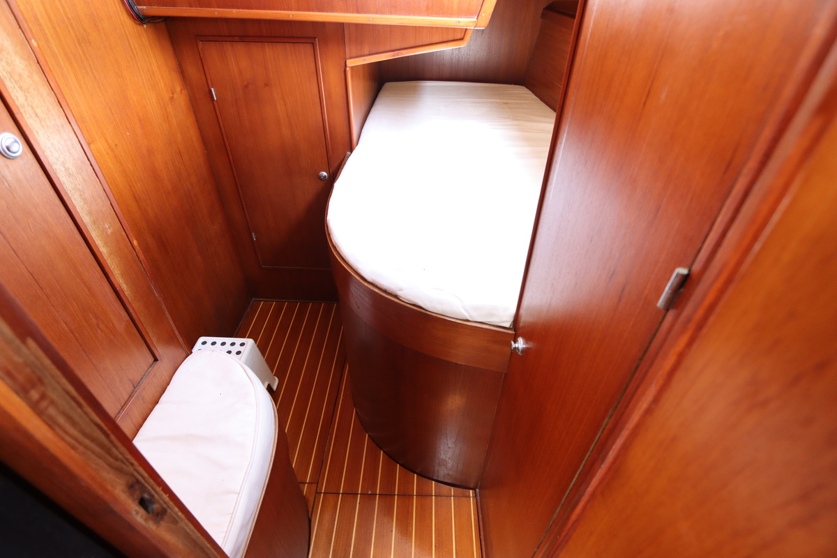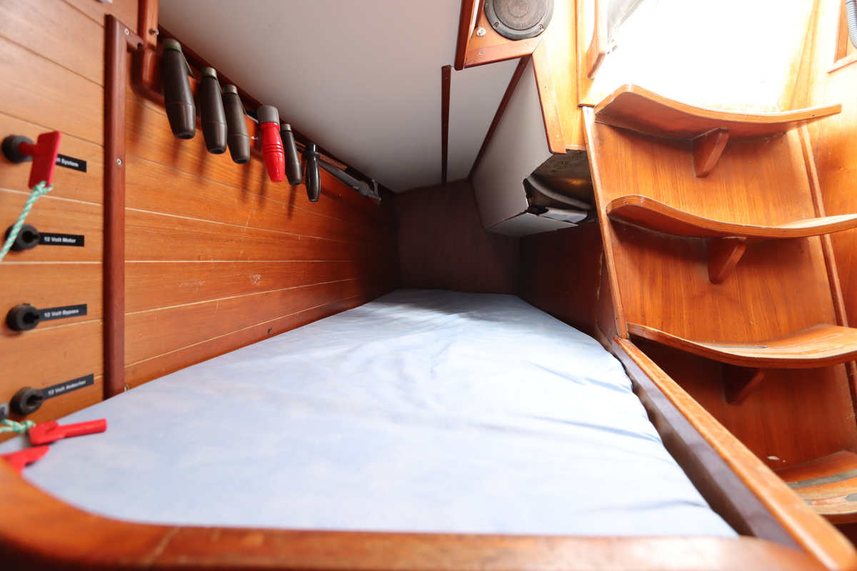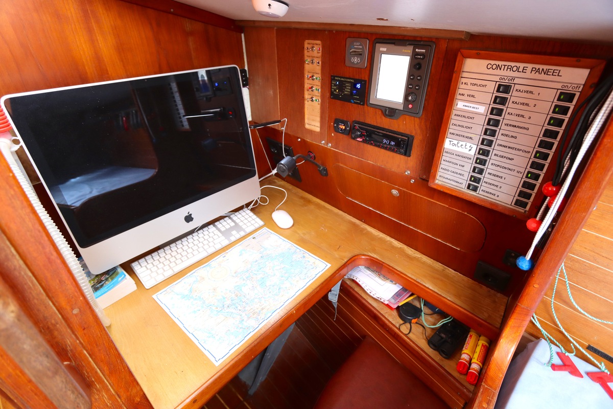 Het schip heeft een s-spant, koersvast en bijzonder goede eigenschappen voor lange tochten. Voldoende luchthappers aan dek voor goede ventilatie benedendeks wat speciaal in zuidelijke streken prettig is. Voorin is een derde kajuit met een dubbel bed. Het schip is verder geriefelijk ingericht met een ruime kombuis, een goed toilet en veel bergruimte. Van achter naar voren is er de kuip, dan - benedendeks de zeekajuit met hondekooi. Aan bakboordzijden achterhut met 2 slaapplaatsen en verder naar voren de hoofdkajuit met douche/toilet, kombuis en veel zitgelegenheid, en dan de voorste kajuit met 2 slaapplaatsen en ruime bergplaats. Het schip heeft grote tanks waarmee ook langere oversteken probleemloos kunnen worden gemaakt.