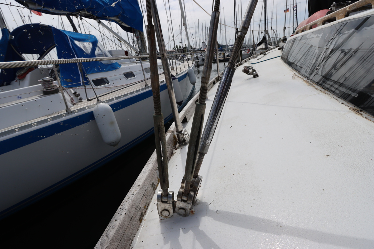 Plastimo2x Spieboom op dek en 1x fokkloet aan dek. Montage beugel nog afmaken en monteren op dek.