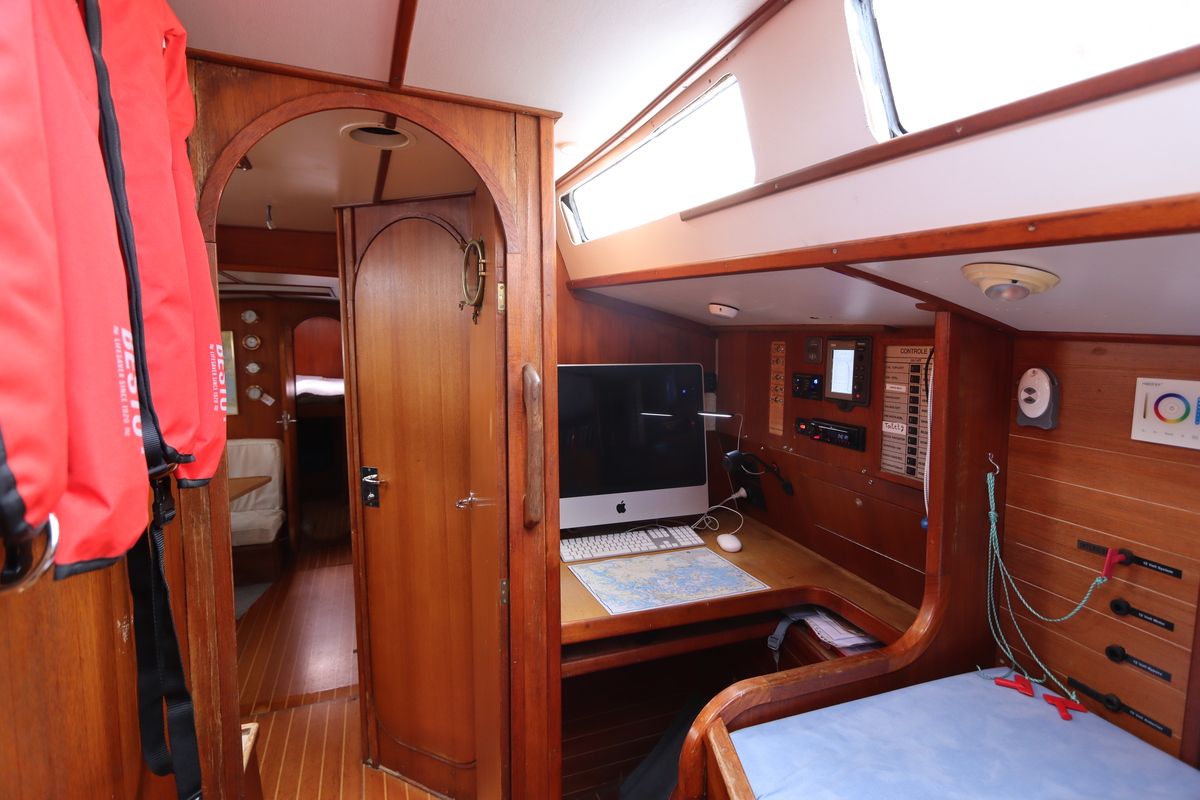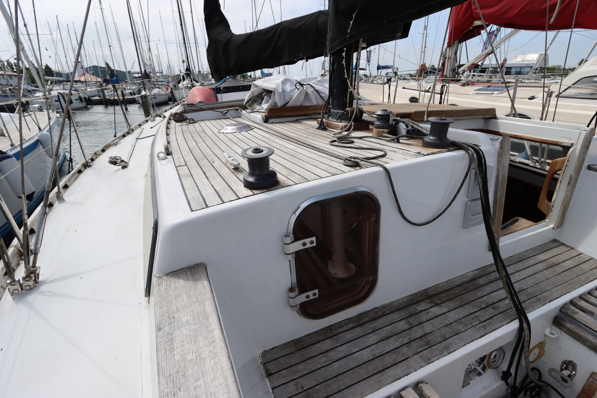 Dit schip is ontworpen met de bedoeling een lange zeilreis te gaan maken. Wat als eerste opvalt aan dit schip is het lage silhouet, de slanke vorm en het prachtige werkdek met een lage opbouw achter de eerste mast. De bediening van de lieren is onder handbereik. Ondanks het flinke gewicht van 13 ton presteert het jacht ook goed.
