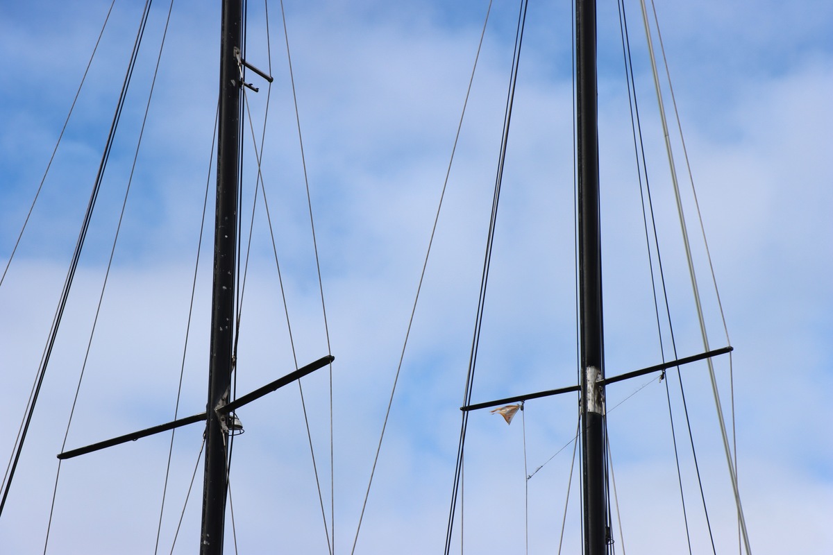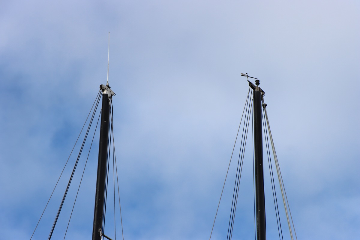 Ketch-tuigage, waarmee gemakkelijk voor ieder weer de juiste zeilvoering gekozen kan worden.