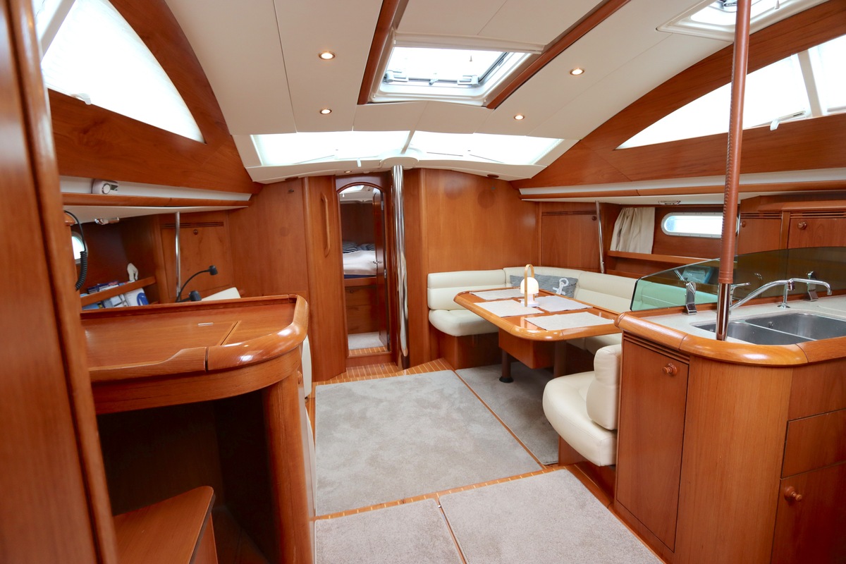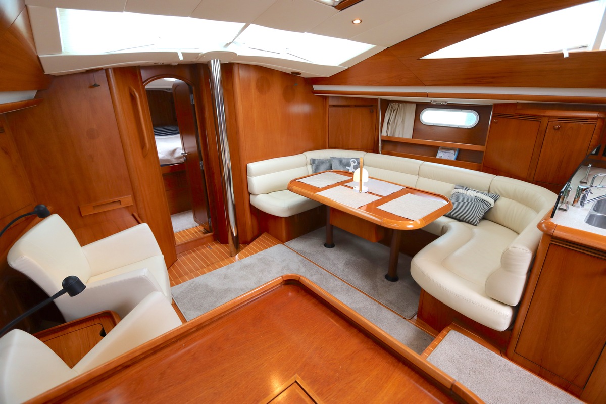 Deze Jeanneau Sun Odyssey 49 DS is een uitstekend onderhouden en volledig uitgeruste zeilboot die comfort en prestaties moeiteloos combineert. Het schip verkeert in nette staat en is klaar voor vertrek. Aan dek vind je onder andere een kotterstag met rolsysteem, wat het zeilen onder verschillende omstandigheden vergemakkelijkt en bijdraagt aan de veiligheid aan boord. De ruime en lichte decksalon biedt veel leefcomfort, zowel onderweg als in de haven. Dankzij de doordachte indeling, royale uitrusting en solide bouwkwaliteit is deze Jeanneau zeer geschikt voor langere zeilreizen en lang verblijf aan boord!