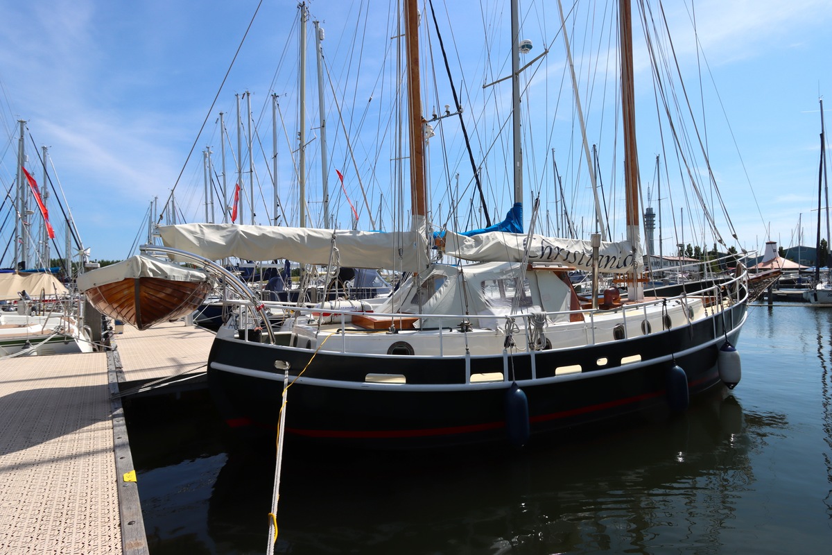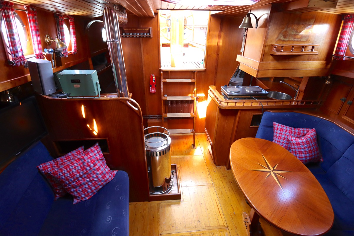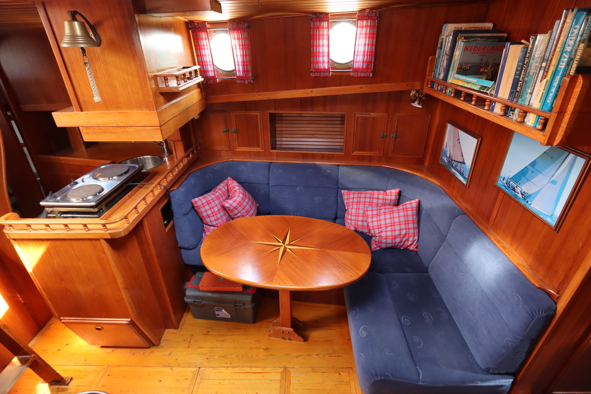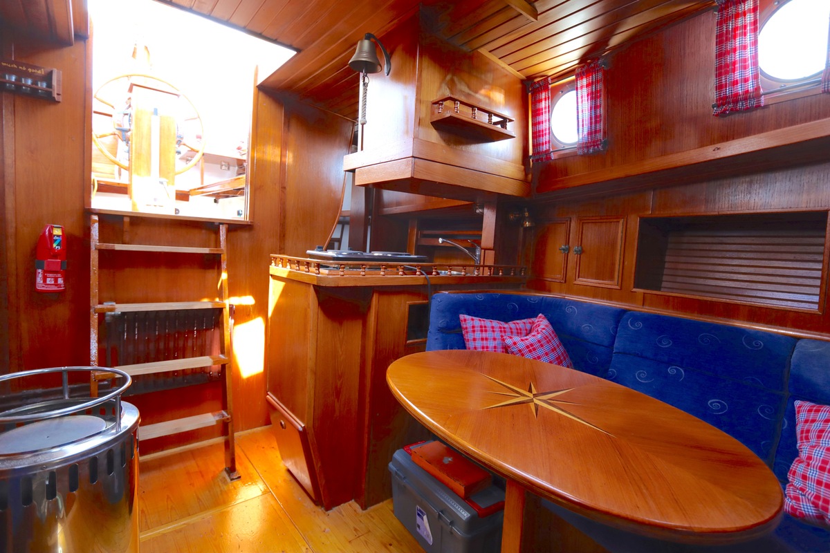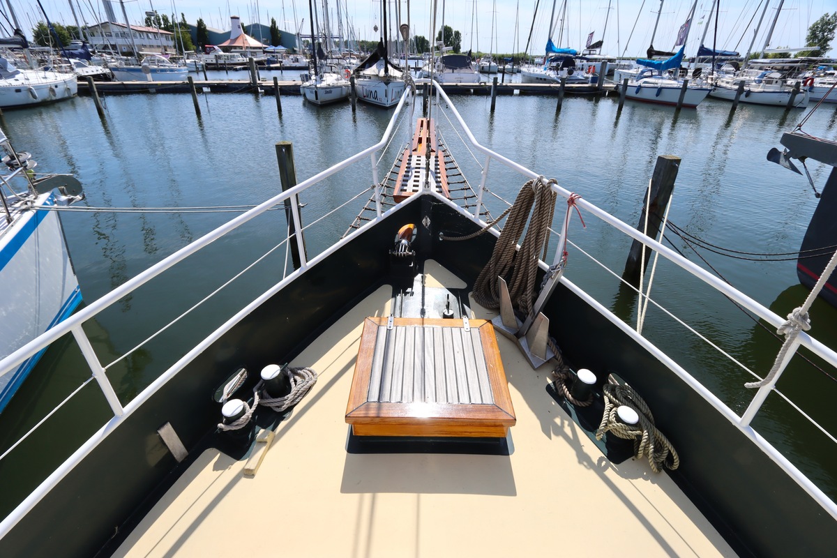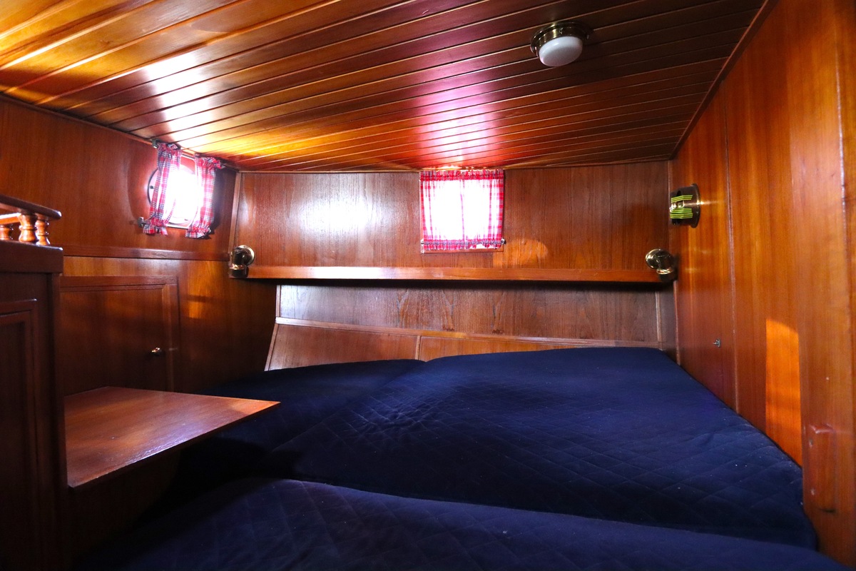 Ze is bijzonder goed onderhouden en voorzien van een sfeervolle, warme afwerking. De romplengte bedraagt 11,20 meter, maar inclusief boegspriet en de overnaadse mahonie bijboot in de davits is de lengte overall 14 meter. Het schip heeft een doordachte indeling met vier vaste slaapplaatsen, een stuurhut, salon, keuken en aparte doucheruimte. Gebouwd door Smits jachtbouw in Nieuwegein, met een solide S-spant stalen romp en vernieuwde besturing (2015), is dit schip een prachtige mix van nostalgie en betrouwbaarheid. Klaar voor nieuwe avonturen!