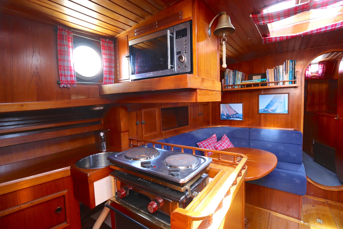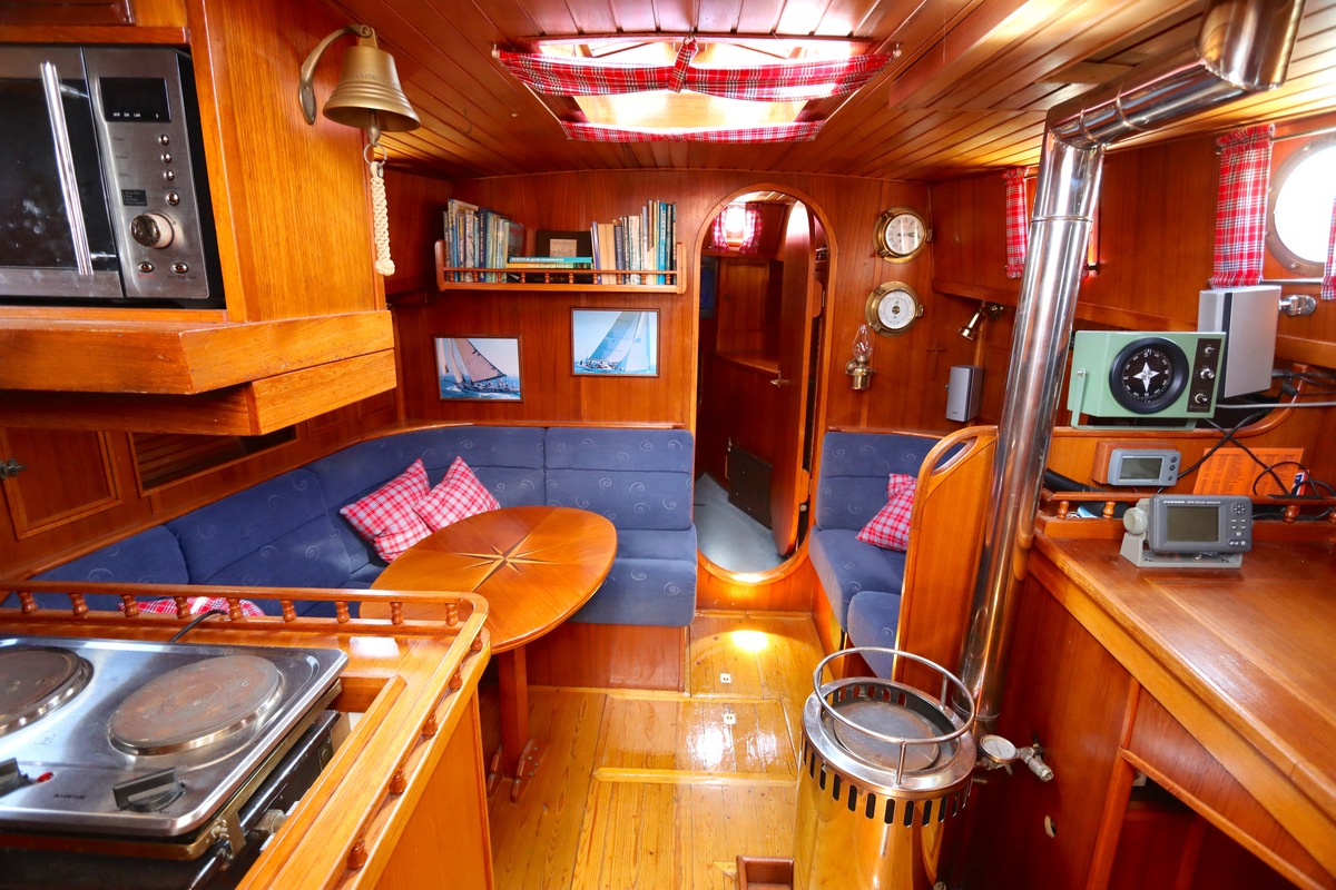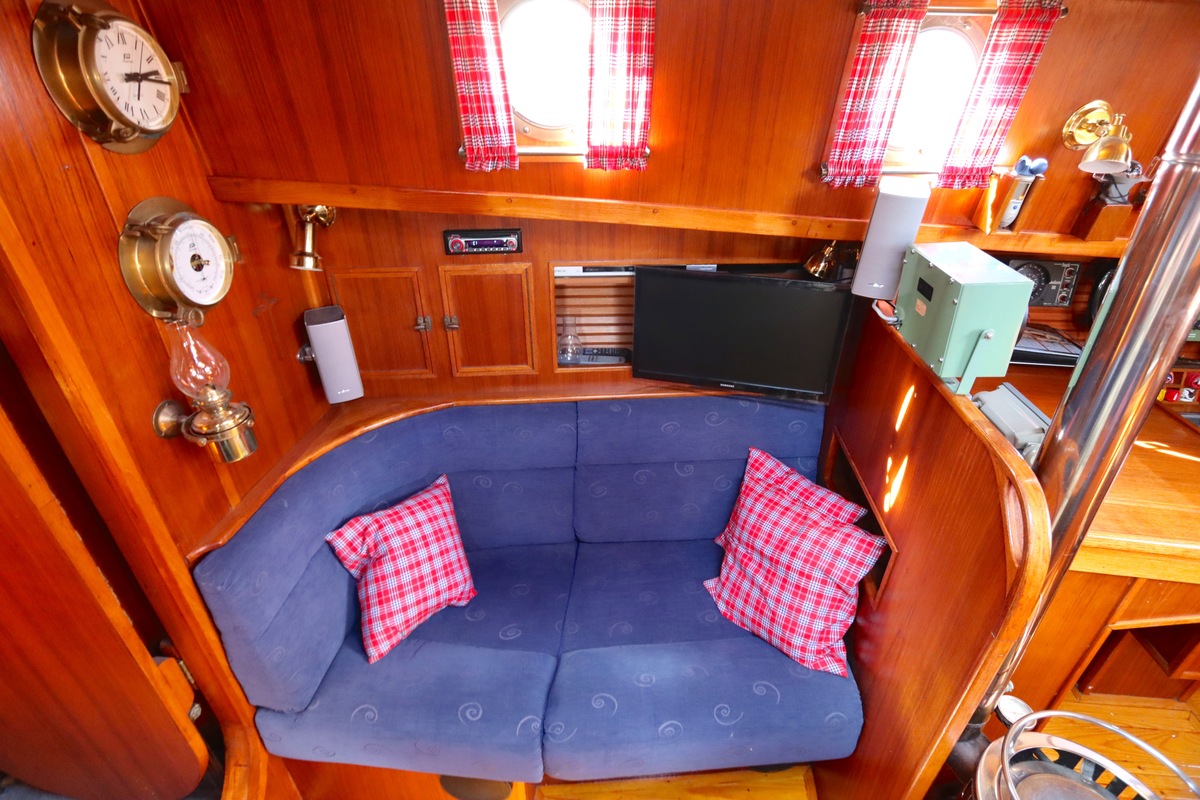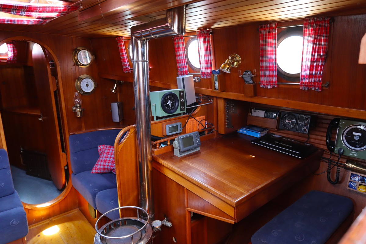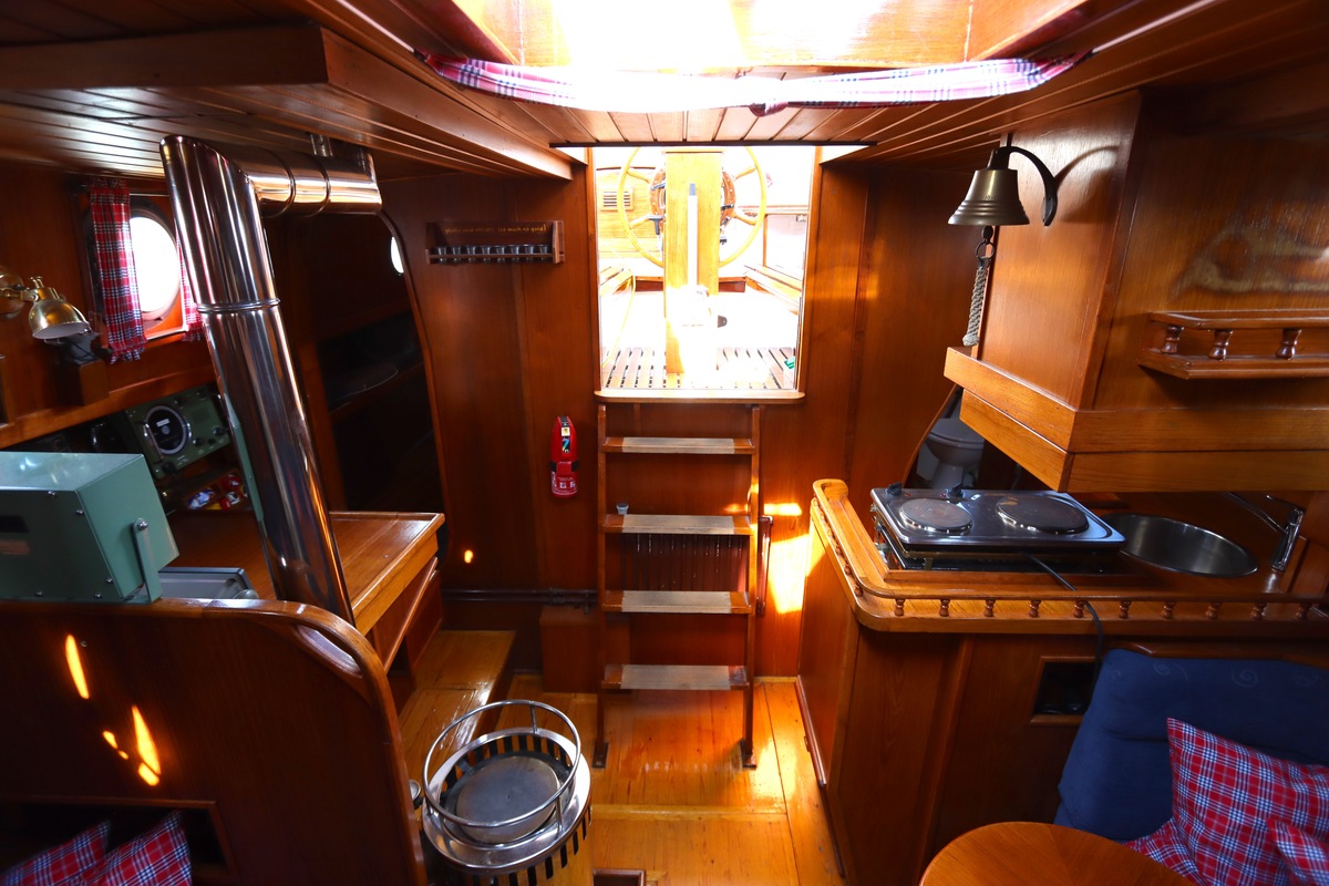 Ze is bijzonder goed onderhouden en voorzien van een sfeervolle, warme afwerking. De romplengte bedraagt 11,20 meter, maar inclusief boegspriet en de overnaadse mahonie bijboot in de davits is de lengte overall 14 meter. Het schip heeft een doordachte indeling met vier vaste slaapplaatsen, een stuurhut, salon, keuken en aparte doucheruimte. Gebouwd door Smits jachtbouw in Nieuwegein, met een solide S-spant stalen romp en vernieuwde besturing (2015), is dit schip een prachtige mix van nostalgie en betrouwbaarheid. Klaar voor nieuwe avonturen!