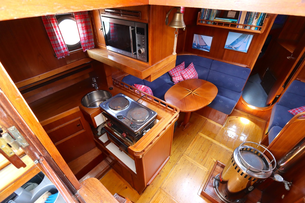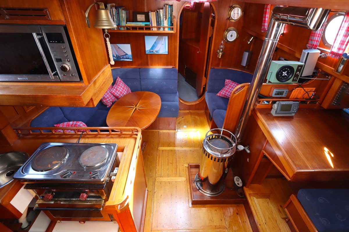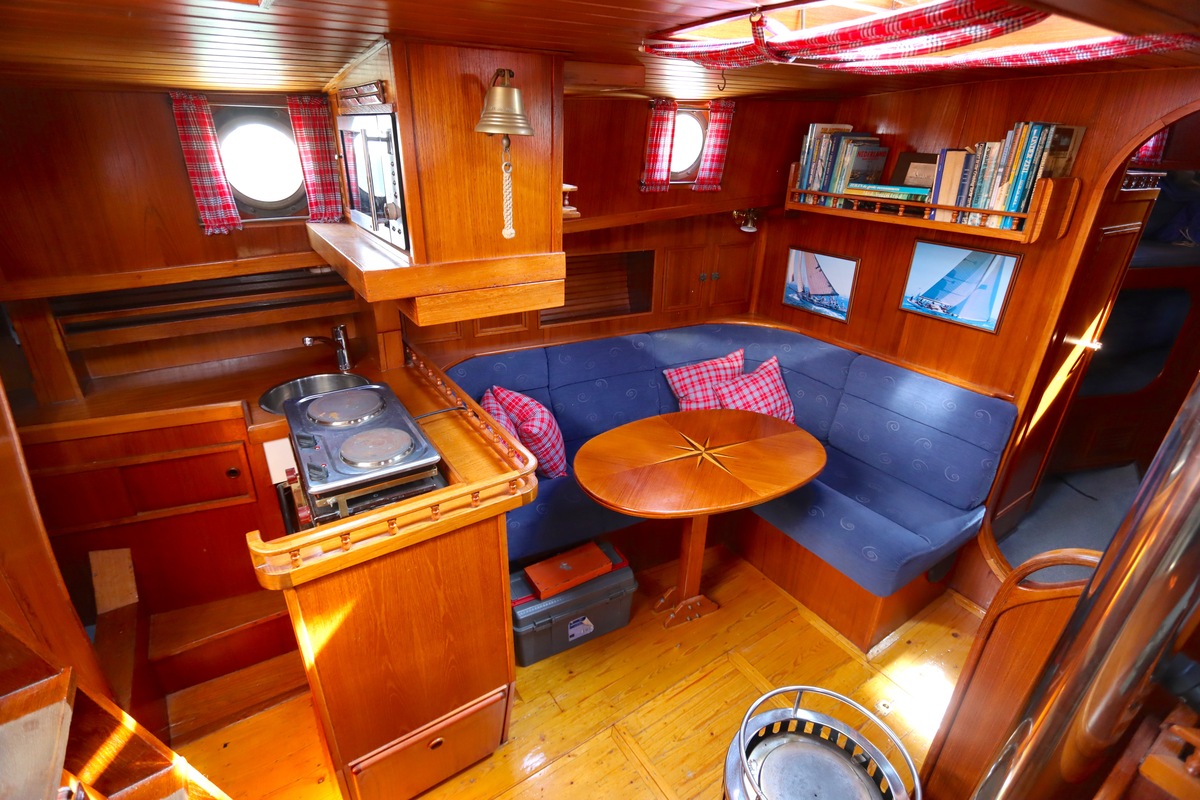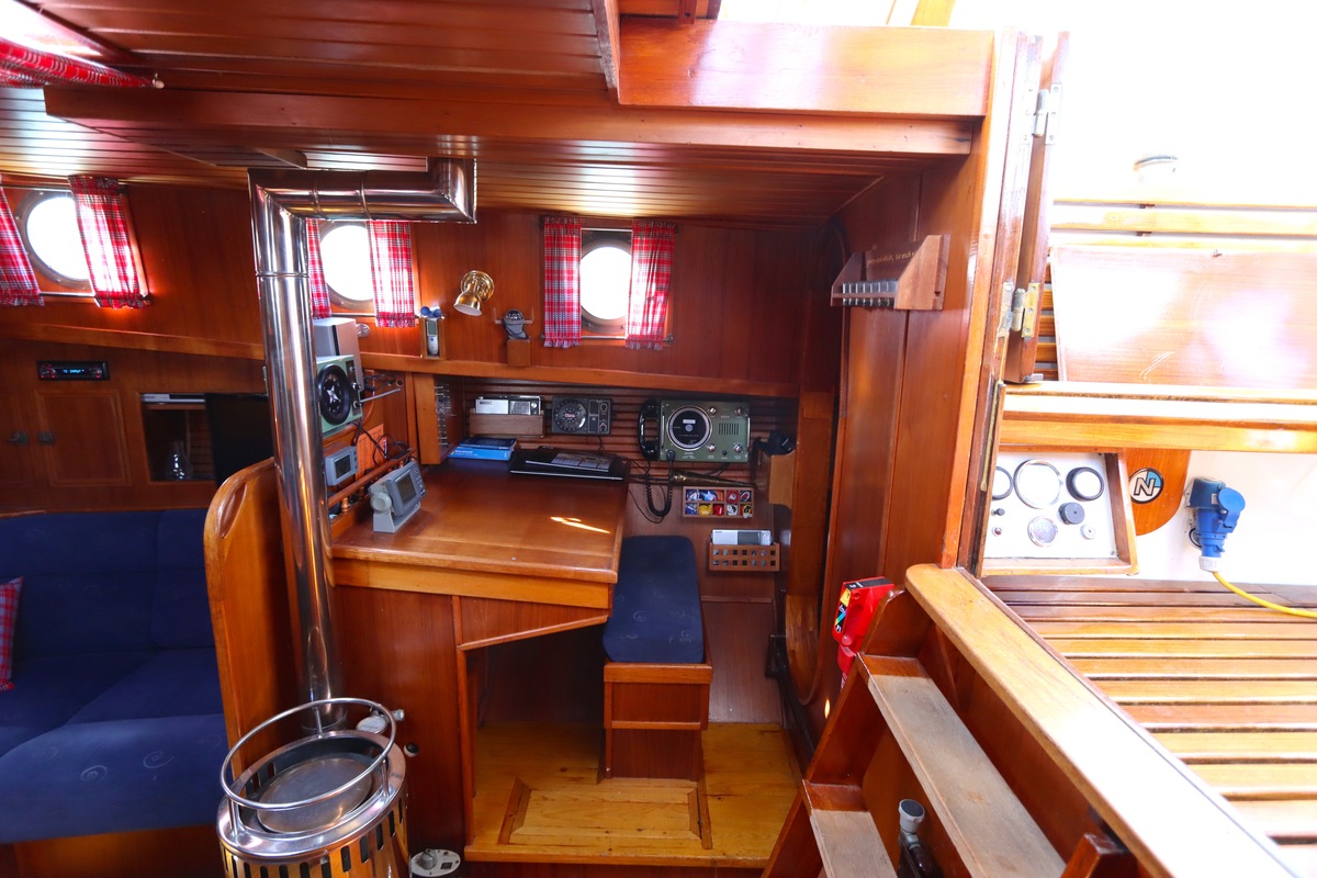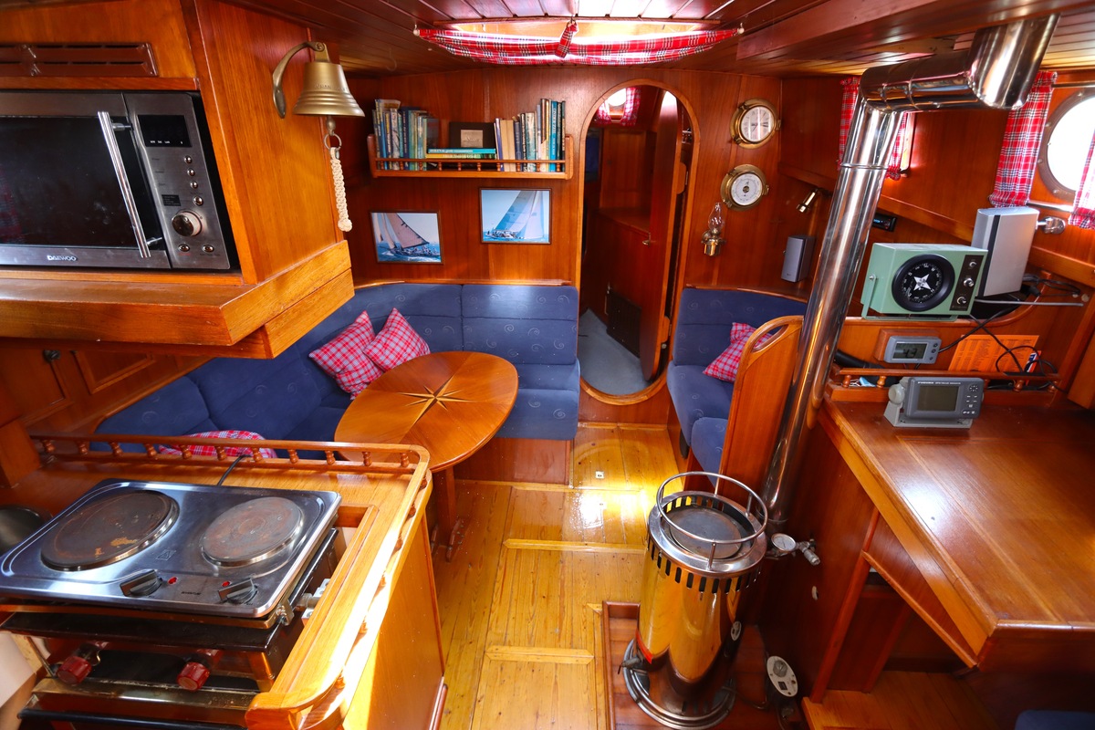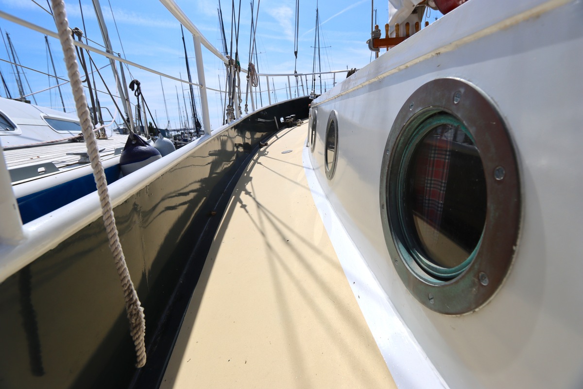 Ze is bijzonder goed onderhouden en voorzien van een sfeervolle, warme afwerking. De romplengte bedraagt 11,20 meter, maar inclusief boegspriet en de overnaadse mahonie bijboot in de davits is de lengte overall 14 meter. Het schip heeft een doordachte indeling met vier vaste slaapplaatsen, een stuurhut, salon, keuken en aparte doucheruimte. Gebouwd door Smits jachtbouw in Nieuwegein, met een solide S-spant stalen romp en vernieuwde besturing (2015), is dit schip een prachtige mix van nostalgie en betrouwbaarheid. Klaar voor nieuwe avonturen!
