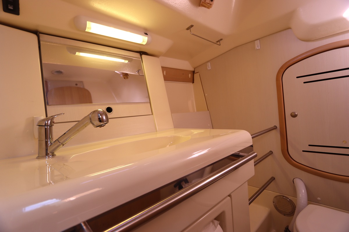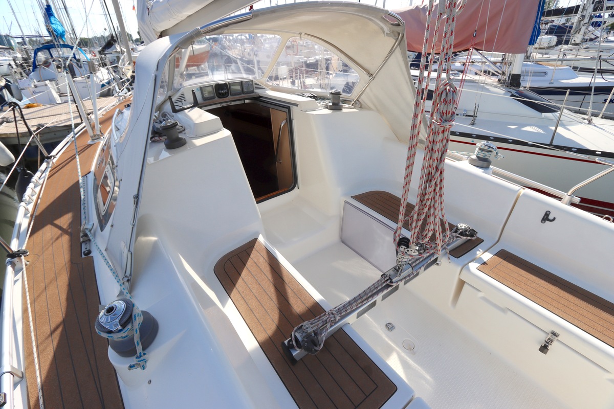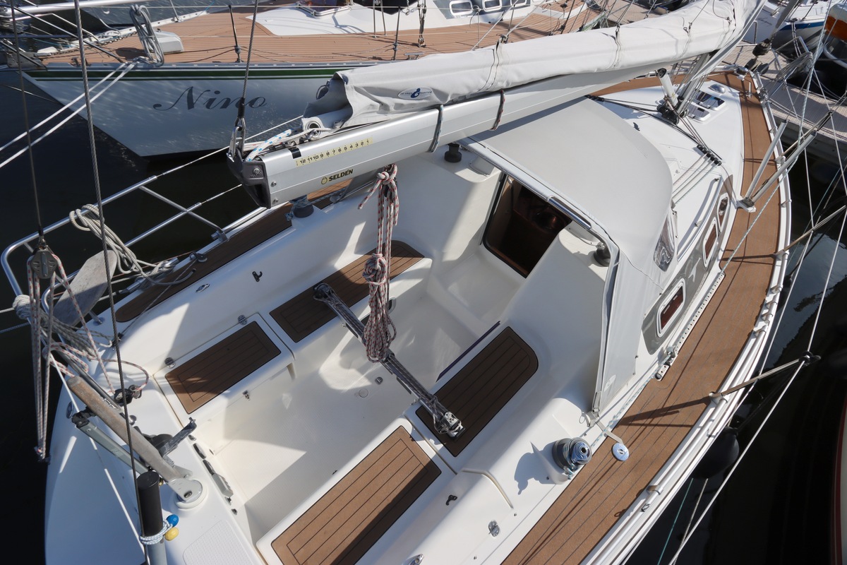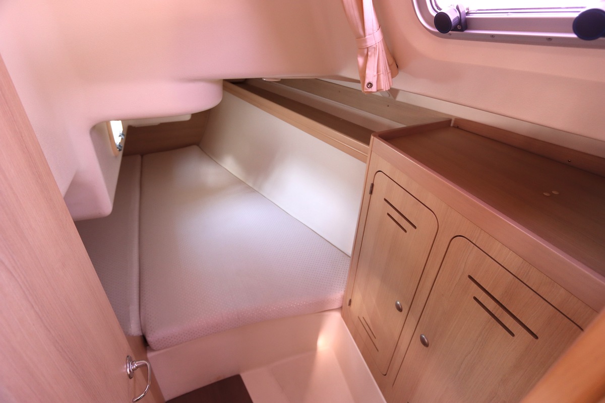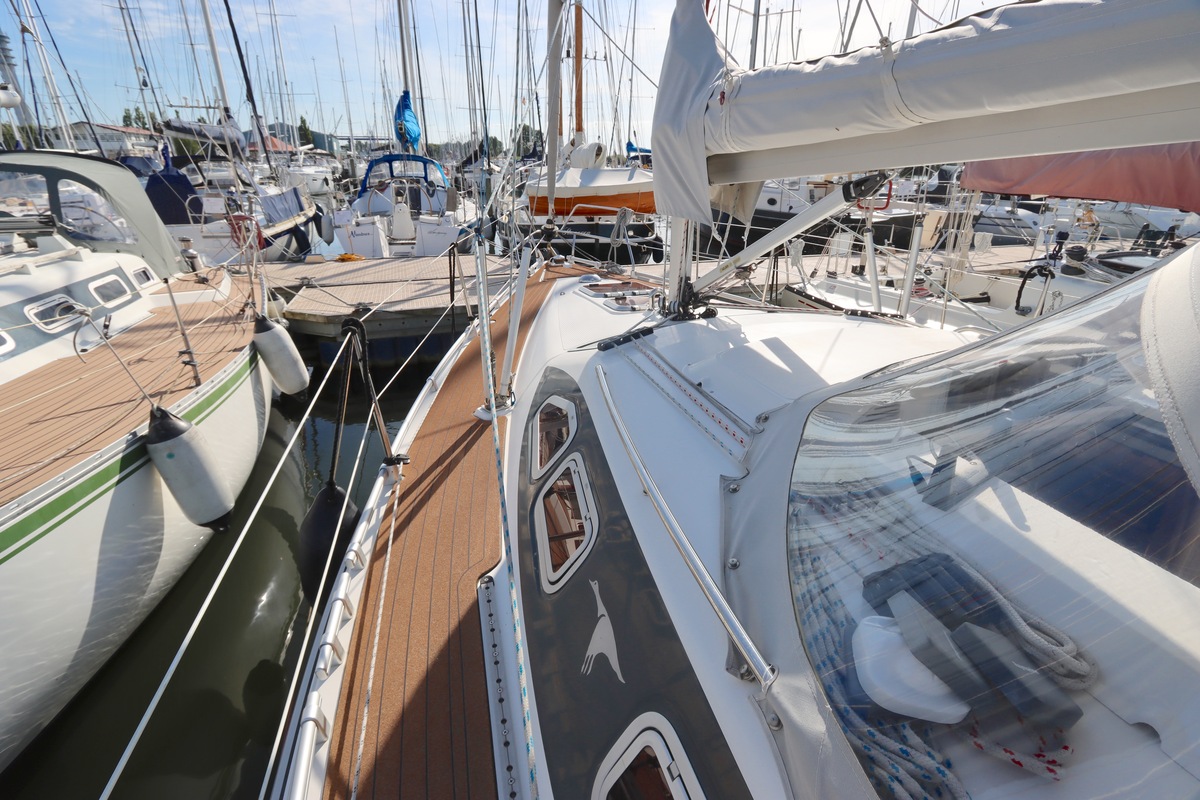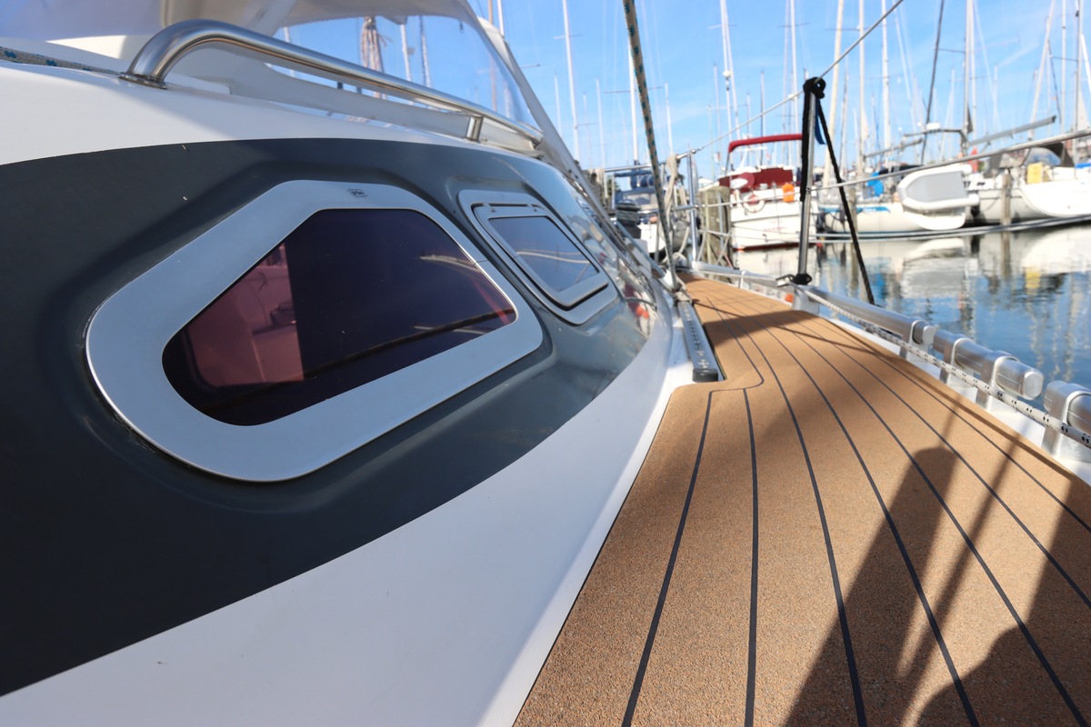 Het schip is onzinkbaar, snel en veilig – typisch Etap. Dankzij de ondiepe kiel (1,30 m) is deze zeilboot perfect voor binnenwater én kustvaart. De lichte salon is sfeervol afgewerkt met essen/notenhout en biedt een comfortabele zit, langskeuken en praktische navigatietafel.