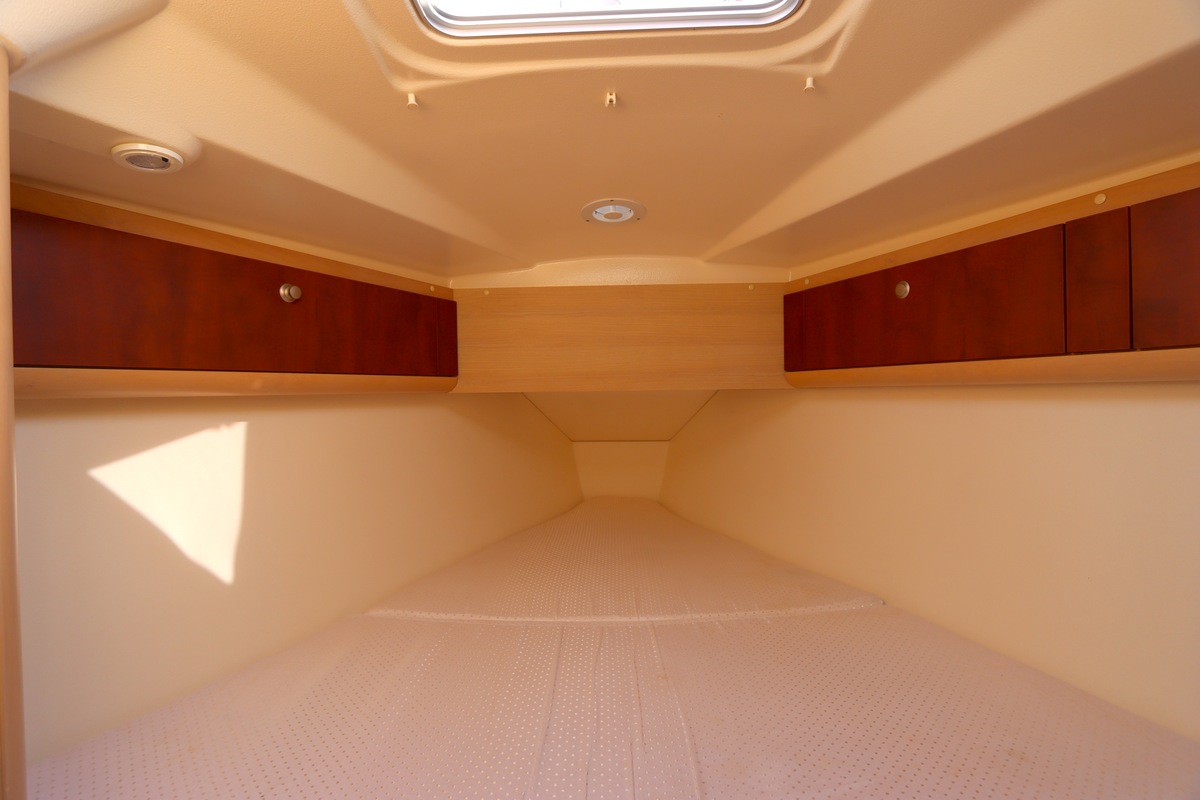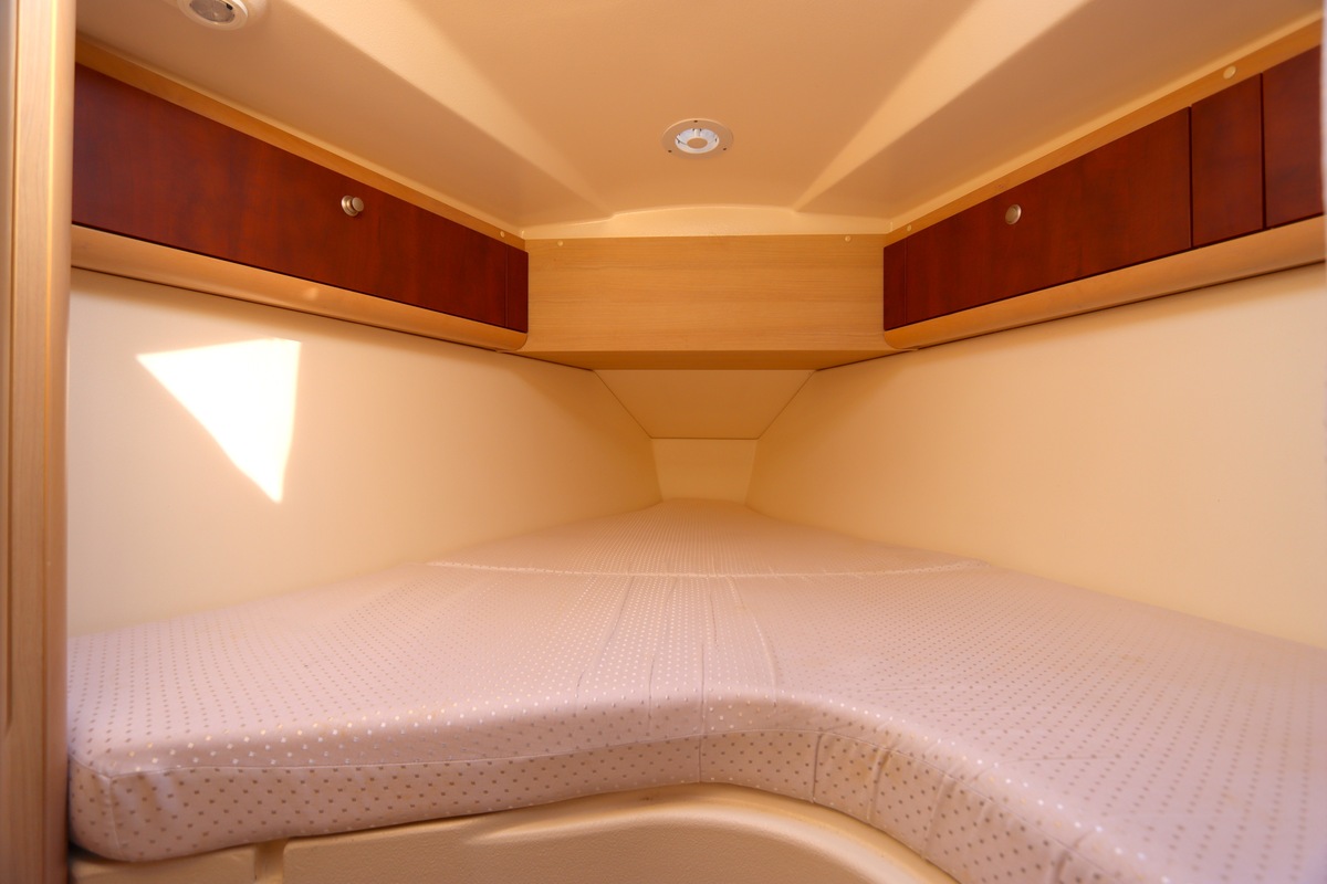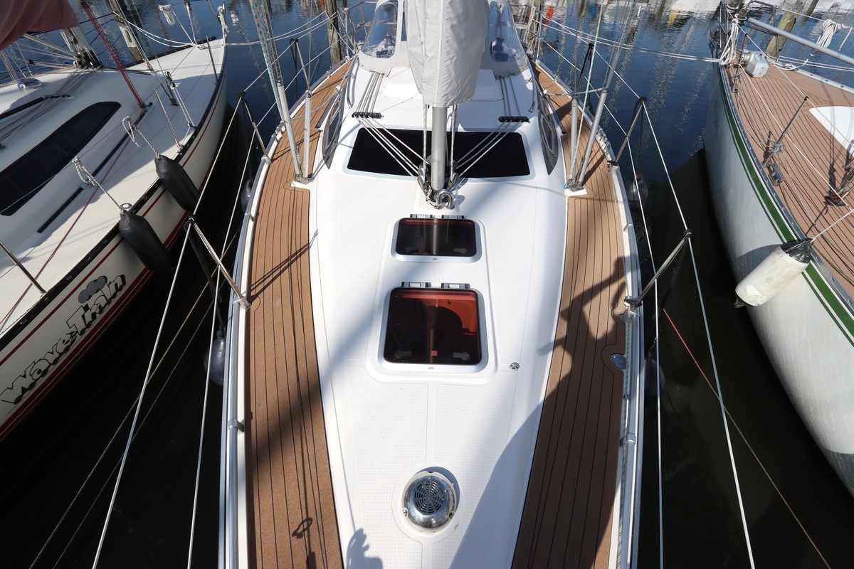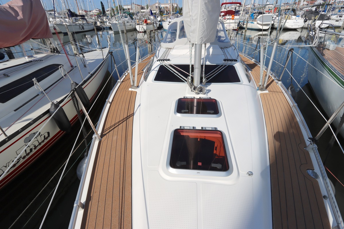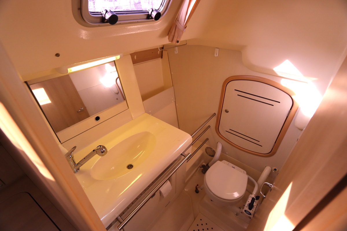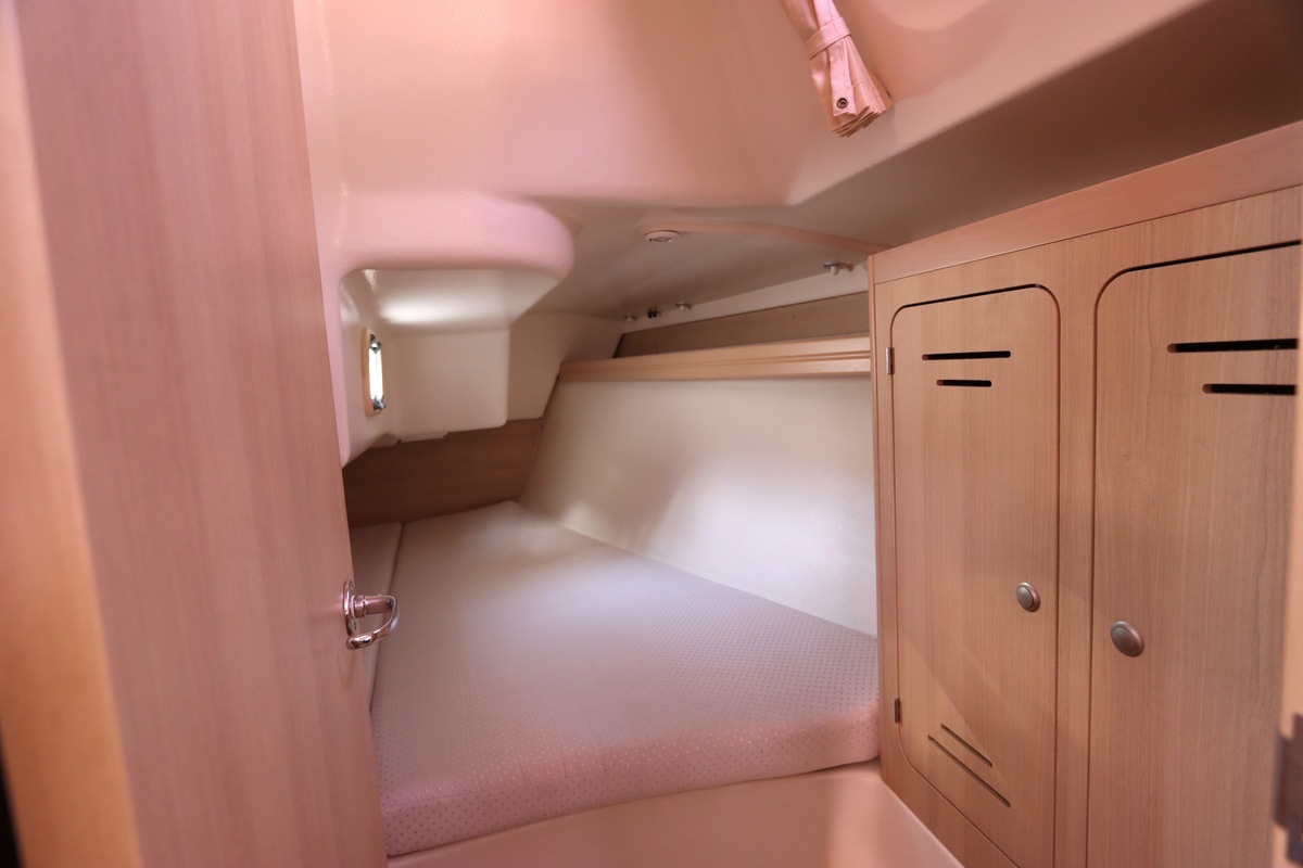 Het schip is onzinkbaar, snel en veilig – typisch Etap. Dankzij de ondiepe kiel (1,30 m) is deze zeilboot perfect voor binnenwater én kustvaart. De lichte salon is sfeervol afgewerkt met essen/notenhout en biedt een comfortabele zit, langskeuken en praktische navigatietafel.