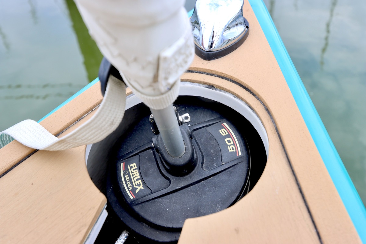 Zelfkerend op een furlex welke benedendeks zit. + UV PlyVaste giekneerhouder