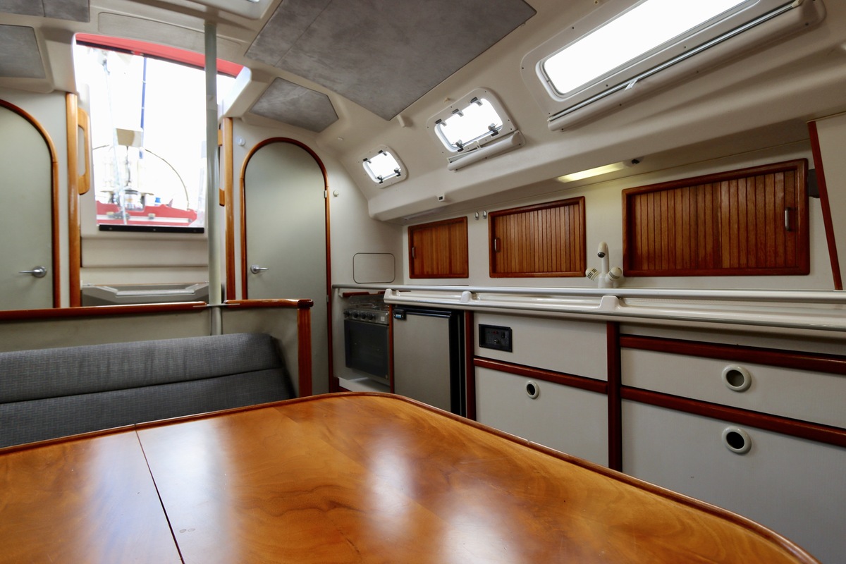 Het schip combineert sportieve prestaties met betrouwbaarheid en stabiliteit, ideaal voor zowel tochten op binnenwater als langere zeereizen. Het interieur is praktisch en ruim twee hutten, een gezellige salon, een goed uitgeruste kombuis en voldoende slaapplaatsen voor zes personen.