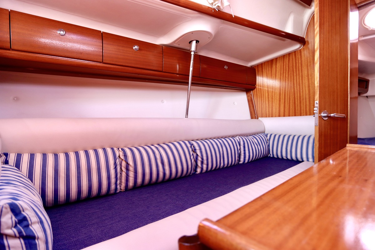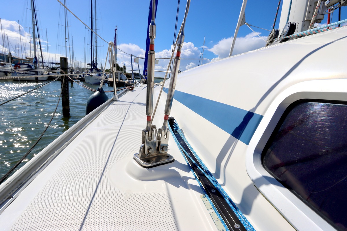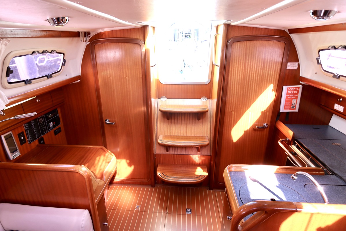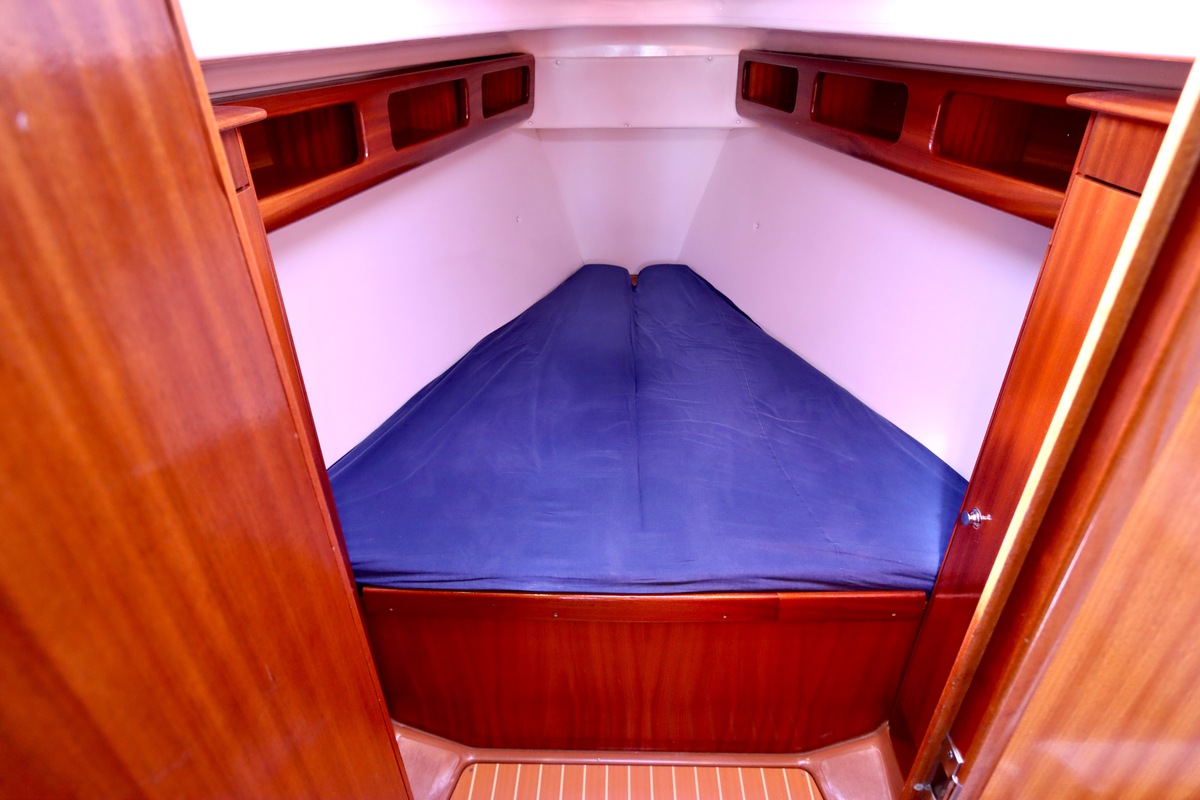 De vaste kiel en het fractionele tuig zorgen voor snelheid en stabiliteit, terwijl de goed uitgeruste kuip en het stuurwiel een sportieve beleving geven. Binnen tref je een warm klassiek interieur met twee hutten, salon, keuken en natte cel. Het houtwerk verkeert nog in zeer nette staat. Dankzij de Webasto-verwarming en een drinkwatersysteem met buitendouche is ook langer verblijf aan boord comfortabel.