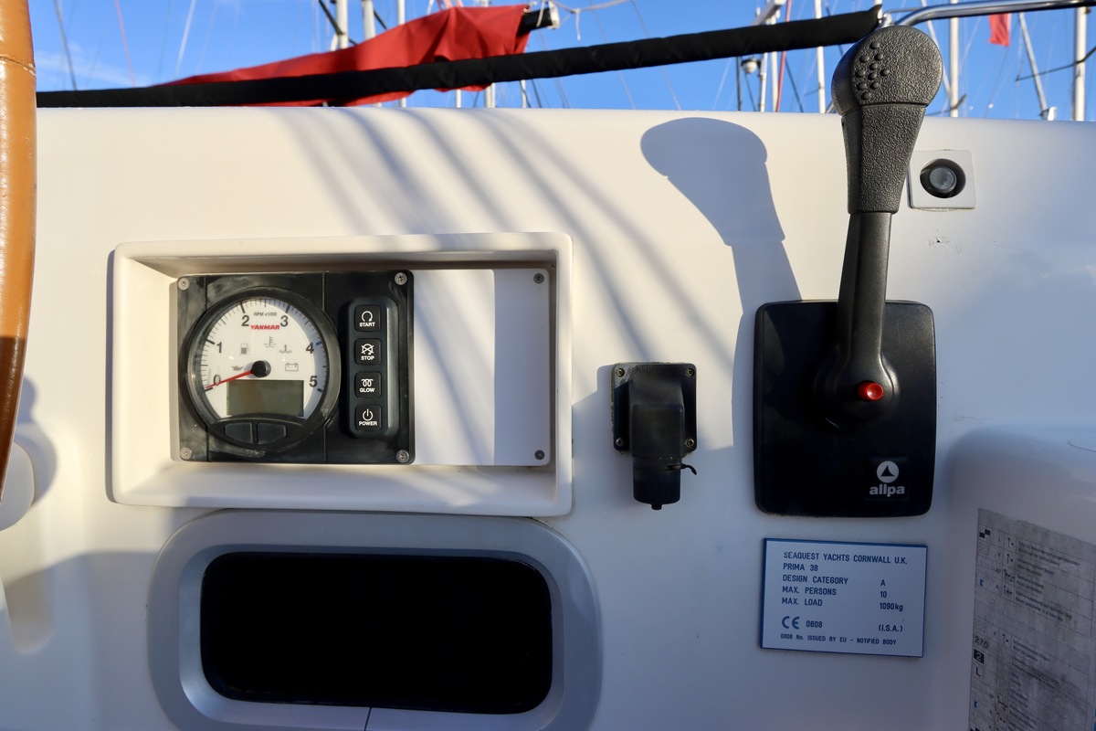 Stuurwiel De Prima 38 is zowel technisch als visueel uitstekend onderhouden. Ze beschikt over een nieuwe YANMAR-motor uit 2022, inclusief nieuw schakelpaneel, Bowdenkabels en kabelboom, en een nieuwe Saildrive met manchet. De machinekamer is in 2021/2022 opnieuw geschilderd, evenals de achterpiek. Tankslangen en koelwaterslangen zijn in 2022 vernieuwd. De GORI 3-blads schroef met overdrivefunctie is ook nieuw (2022) en het JEFA-ruderlager is vervangen in 2018.