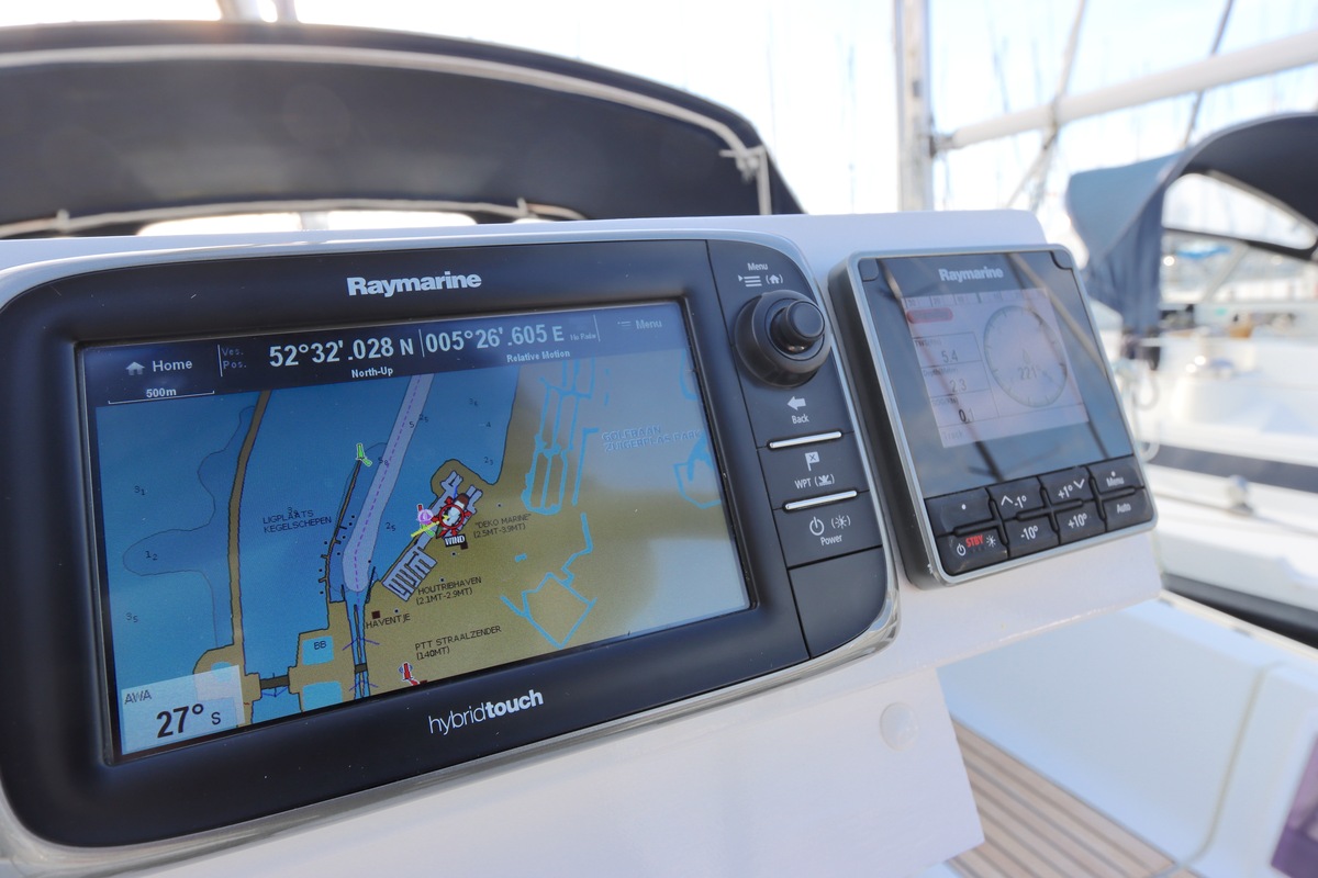 Raymarine e7(stuurstand); B&G zeus-2met wifi (kaarttafel)