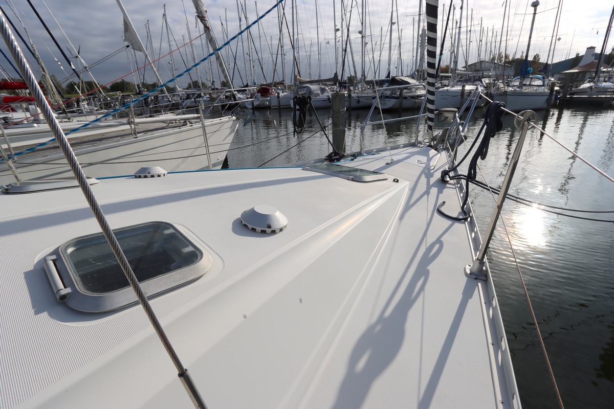 Kortom een solide, zeewaardig en gezellig schip. Perfect voor wie houdt van comfortabel zeilen zonder gedoe. De Jeanneau Sun Odyssey 37.1 ligt vaarklaar aan de verkoopsteiger in Lelystad