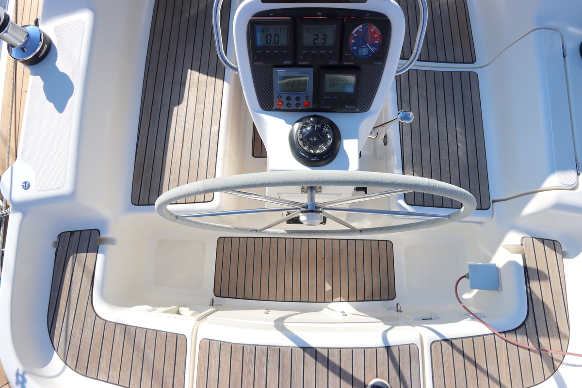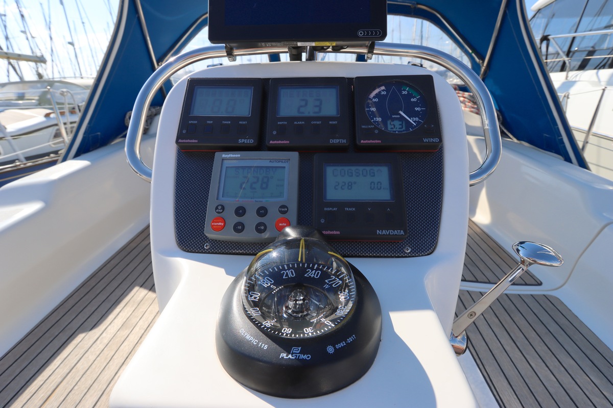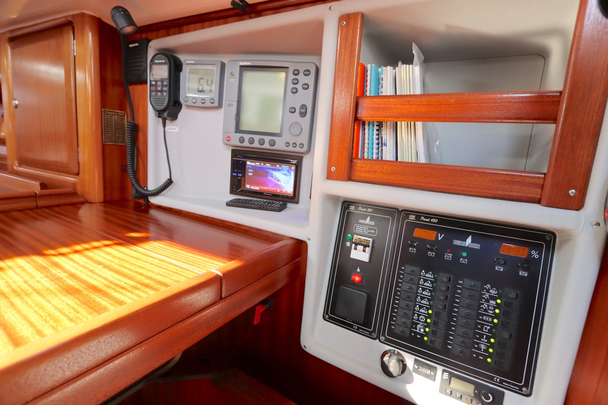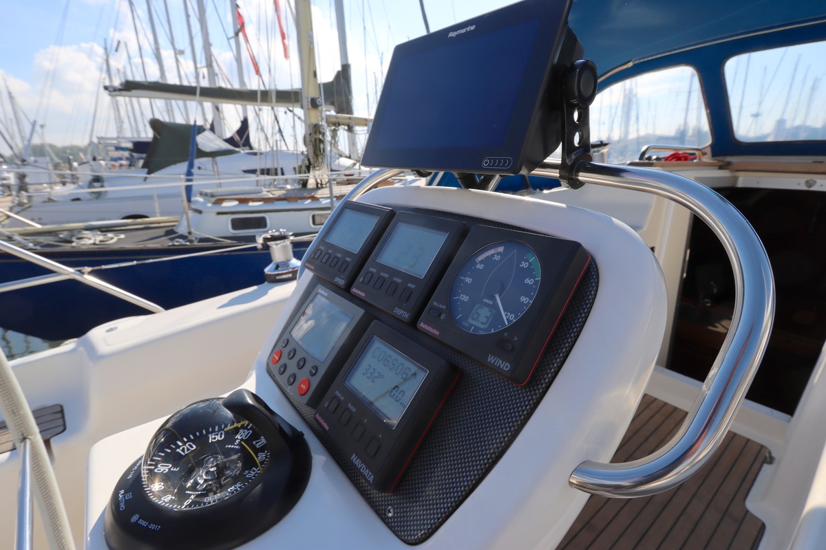 Qua uitrusting is het schip compleet een Raymarine kaartplotter (Axiom 9, 2018), autopilot, degelijke zeilen van Elvström, en recent vernieuwde accu’s (2023). Alles ligt klaar om zo mee weg te varen.
