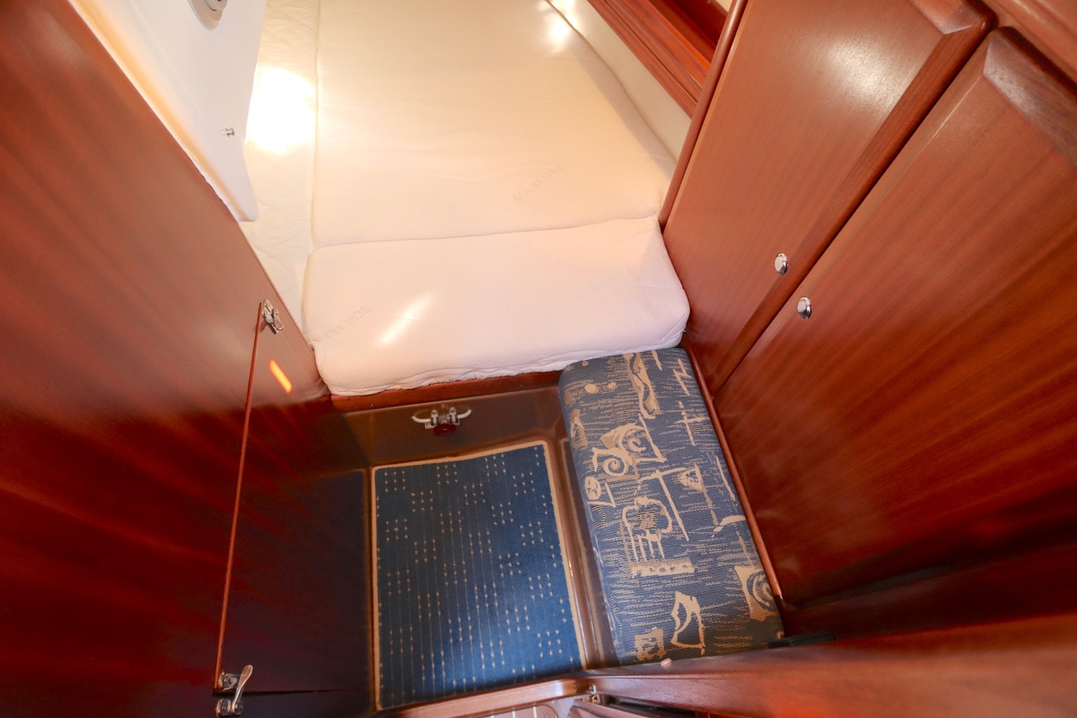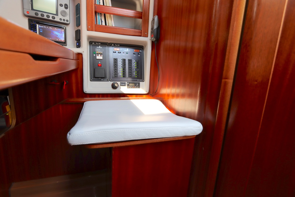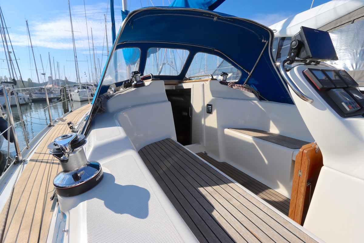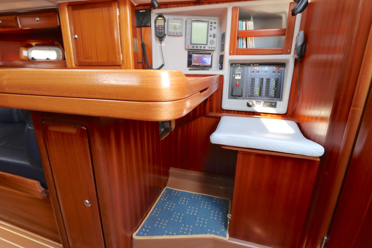 Qua uitrusting is het schip compleet een Raymarine kaartplotter (Axiom 9, 2018), autopilot, degelijke zeilen van Elvström, en recent vernieuwde accu’s (2023). Alles ligt klaar om zo mee weg te varen.