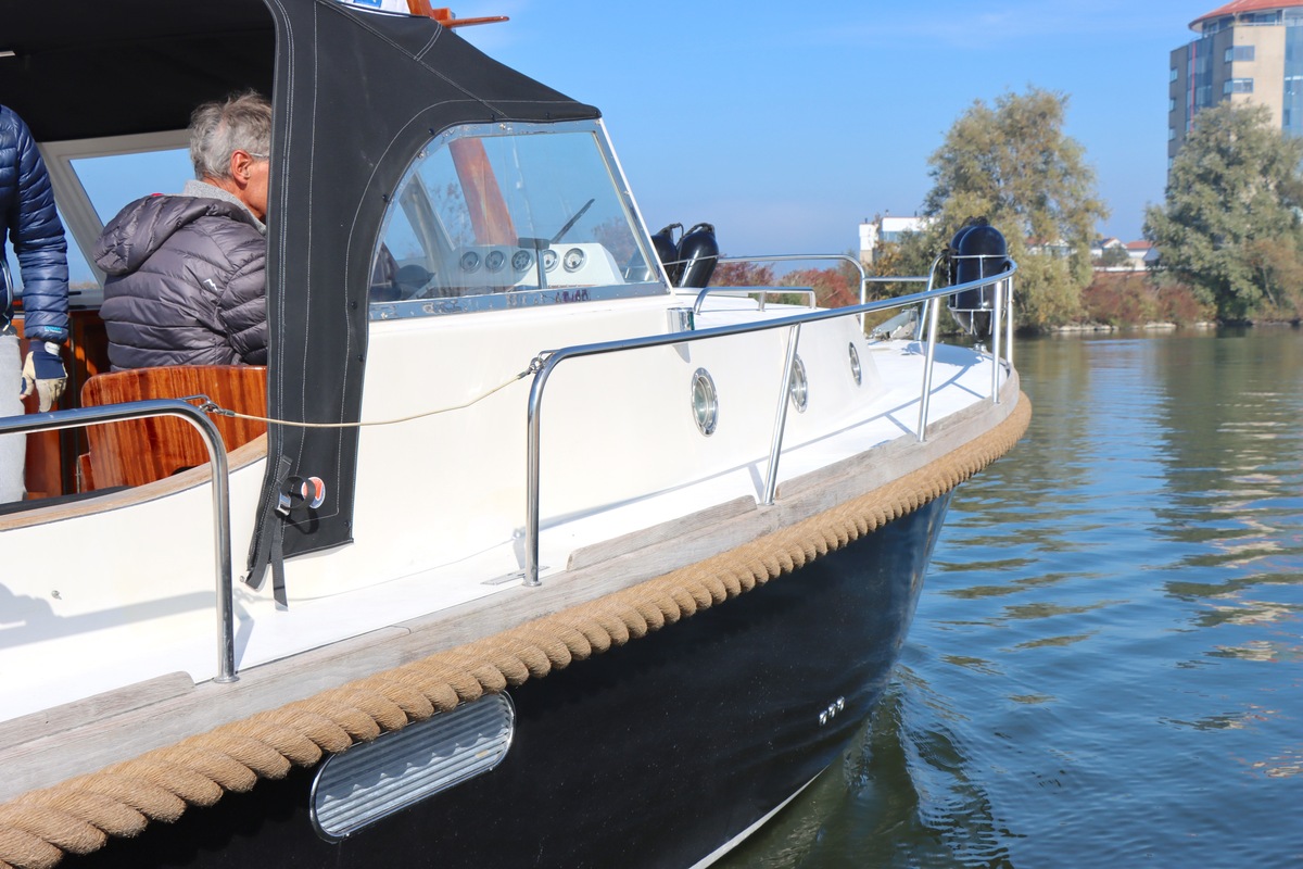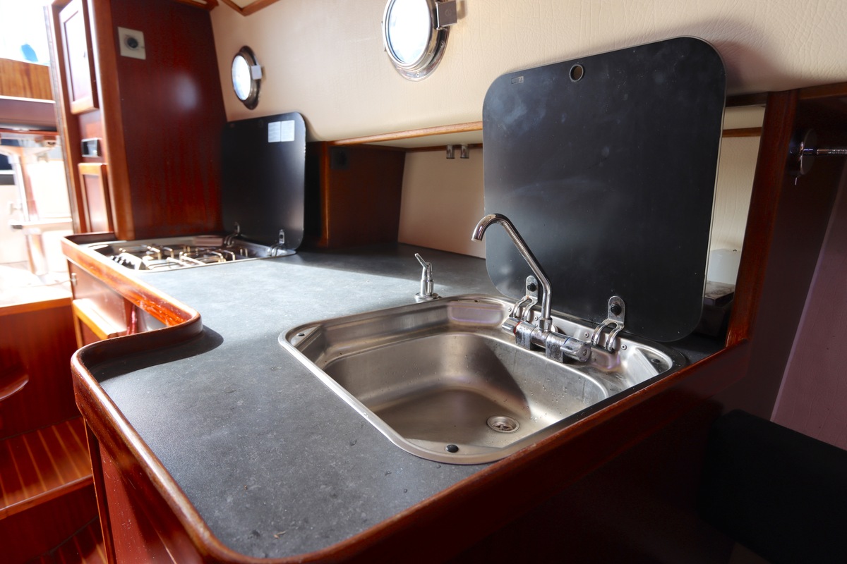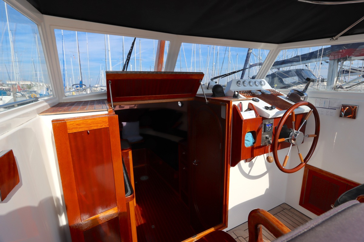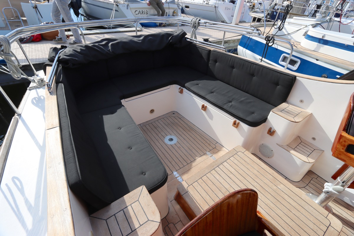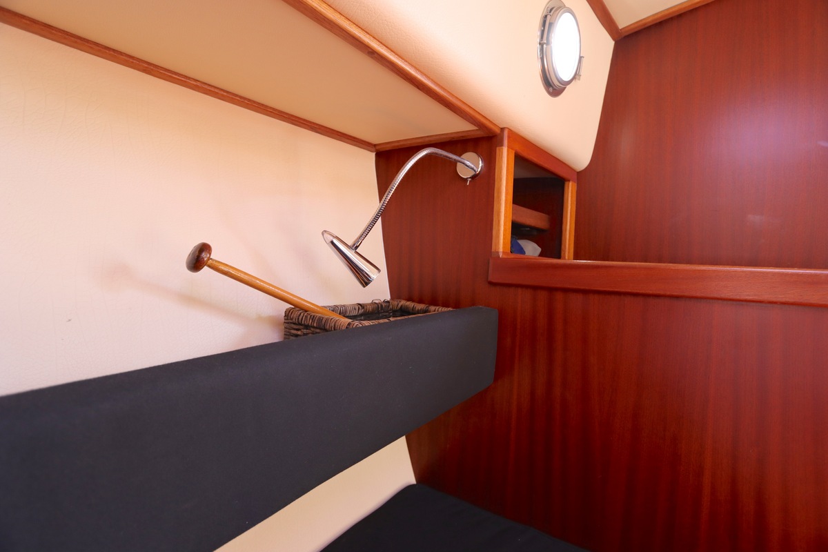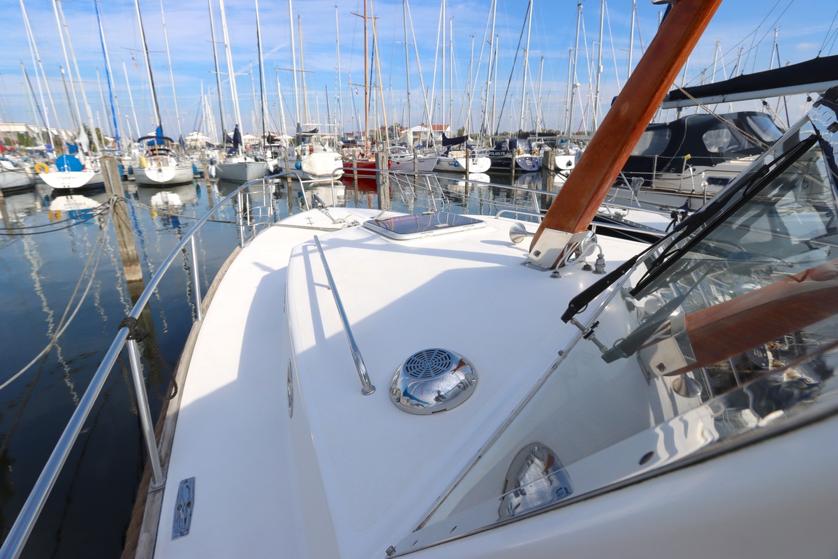 De ruime open kuip met teakvloer, U-bank en dubbele stuurstoel biedt comfort en gezelligheid. Binnen vind je een kajuit met kombuis, badkamer en slaapplaatsen voor twee personen. Voorzien van boeg- en hekschroef, verwarming, koelkast en moderne elektra.