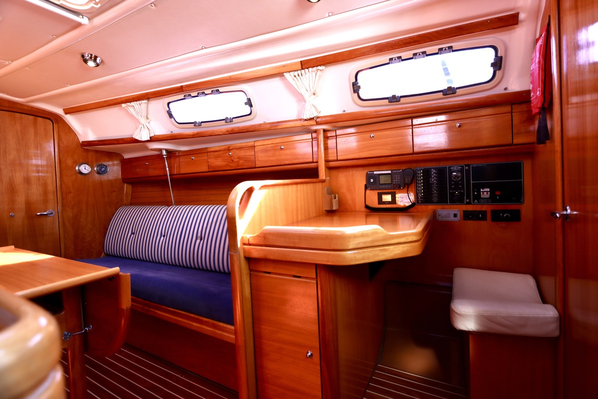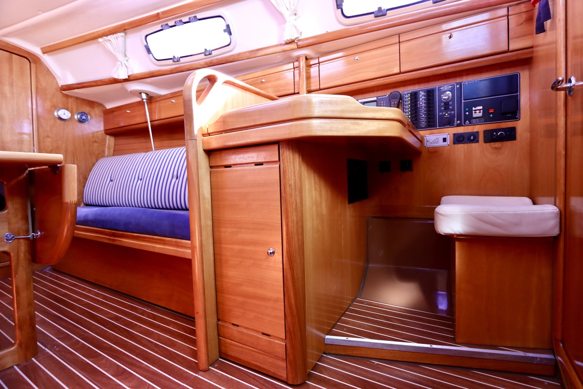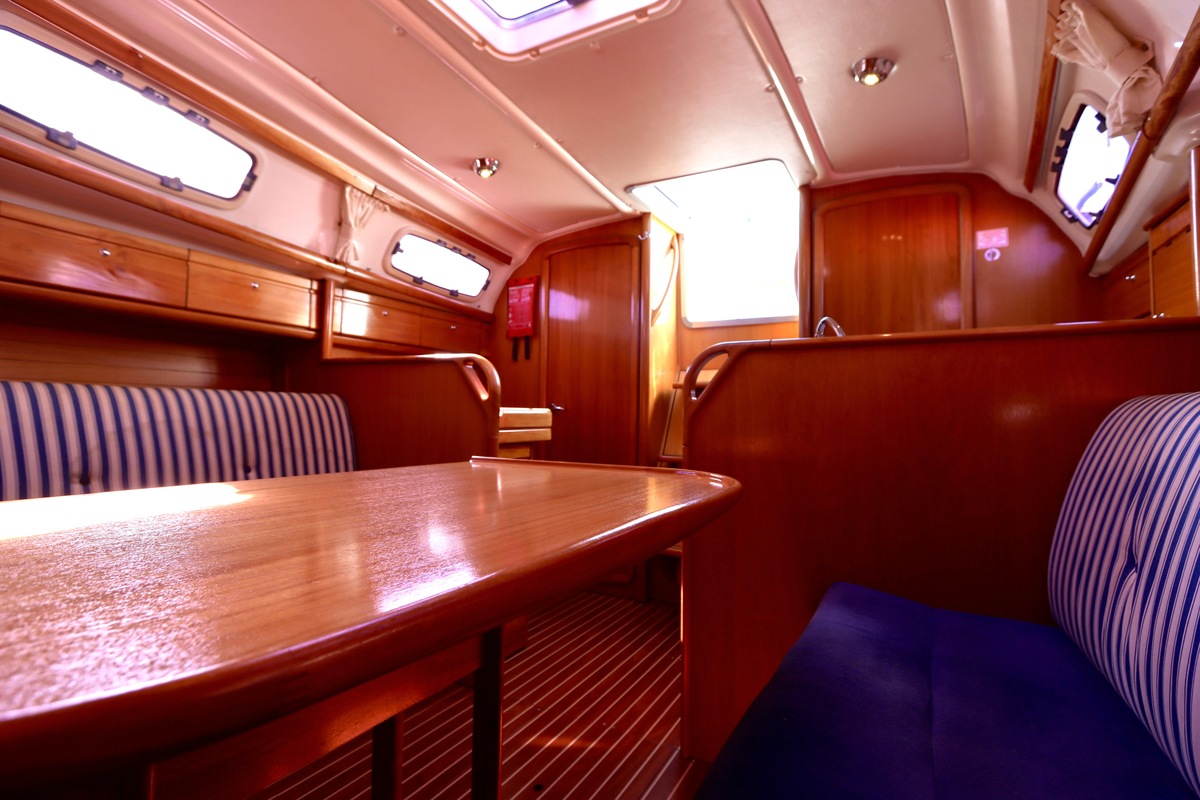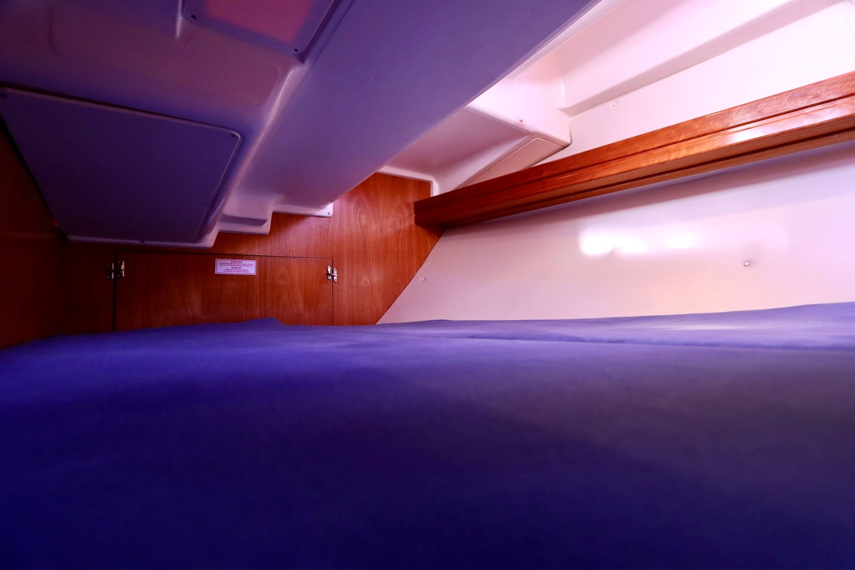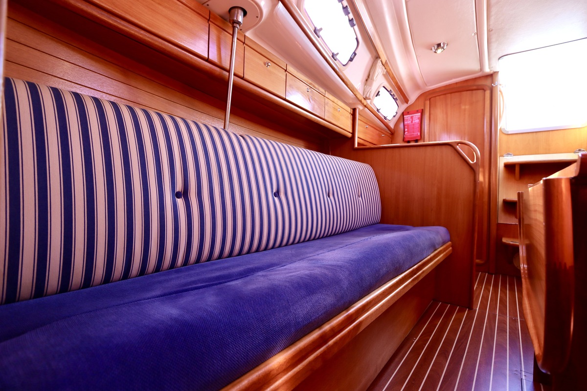 Binnen tref je een frisse en nette accommodatie met twee hutten, aangevuld met extra slaapruimte in de salon. De kombuis is compleet met een 2-pits kooktoestel met oven (gekeurd in 2024) en een koelkast. De verwarming uit 2018 zorgt voor comfort in alle seizoenen. Technisch is het schip goed bijgehouden. De Volvo Penta D1-20 motor heeft circa 850 uur en is betrouwbaar. Accu’s zijn vernieuwd in 2023, Saildrive manchet in 2020 en de schroefas en anoden in 2024. Ook is de verstaging in 2020 vervangen.