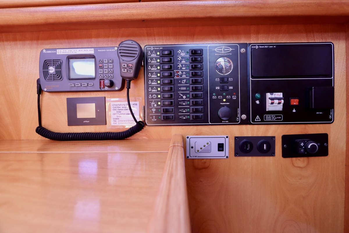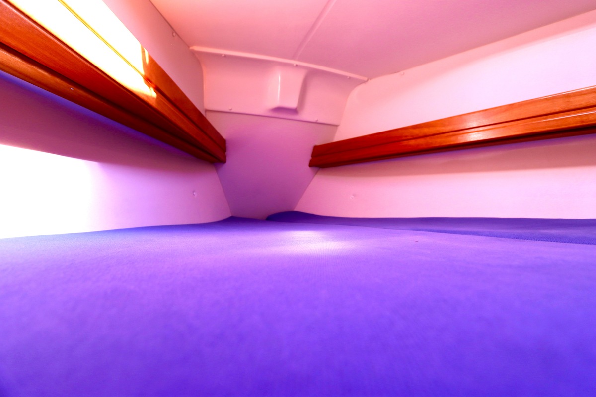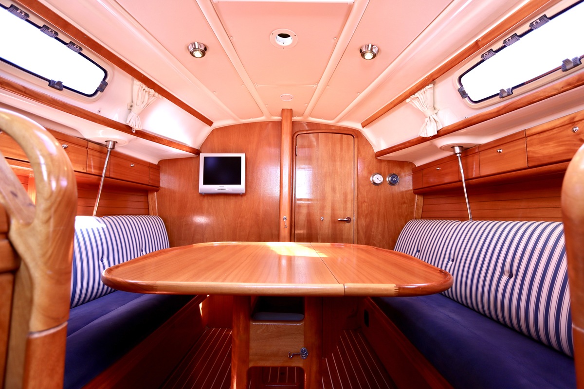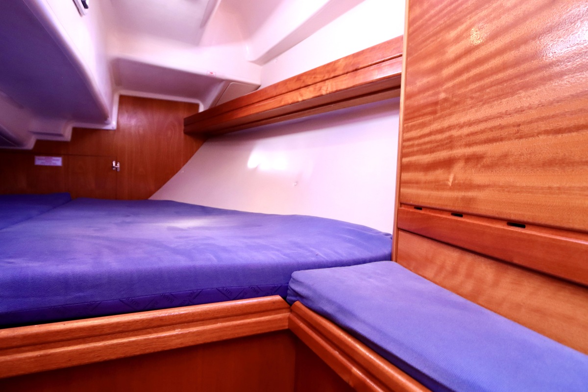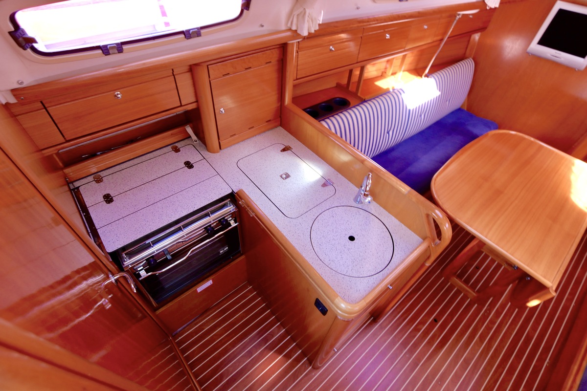 Binnen tref je een frisse en nette accommodatie met twee hutten, aangevuld met extra slaapruimte in de salon. De kombuis is compleet met een 2-pits kooktoestel met oven (gekeurd in 2024) en een koelkast. De verwarming uit 2018 zorgt voor comfort in alle seizoenen. Technisch is het schip goed bijgehouden. De Volvo Penta D1-20 motor heeft circa 850 uur en is betrouwbaar. Accu’s zijn vernieuwd in 2023, Saildrive manchet in 2020 en de schroefas en anoden in 2024. Ook is de verstaging in 2020 vervangen.