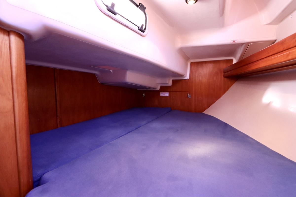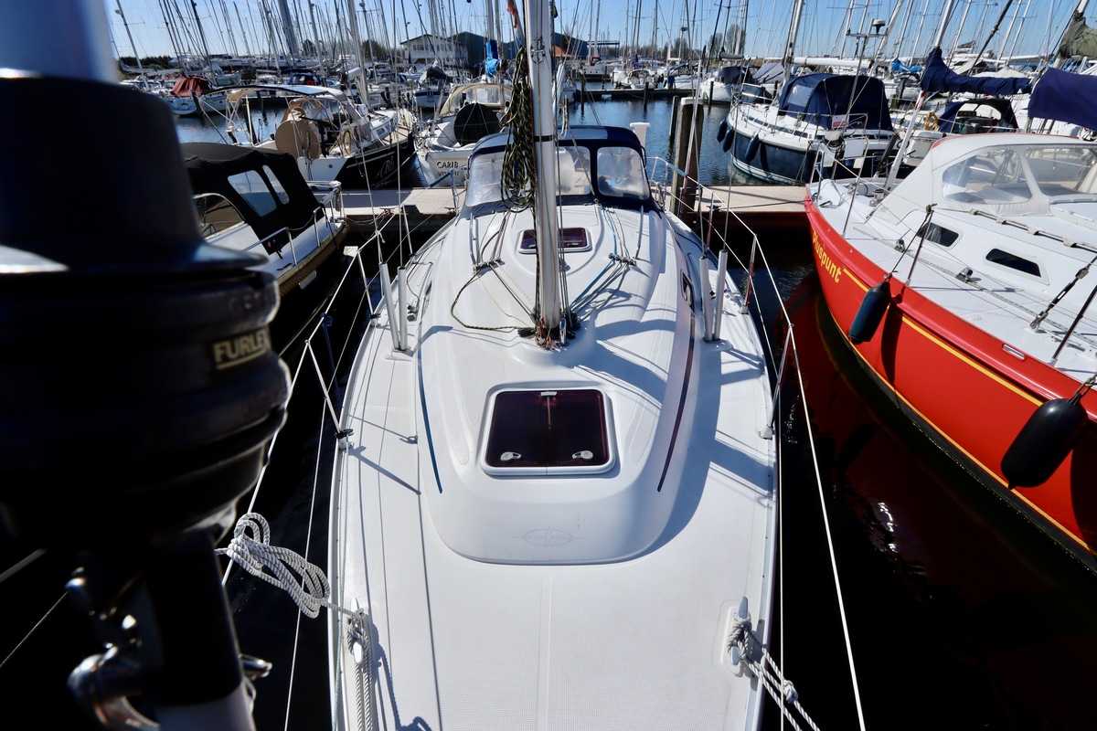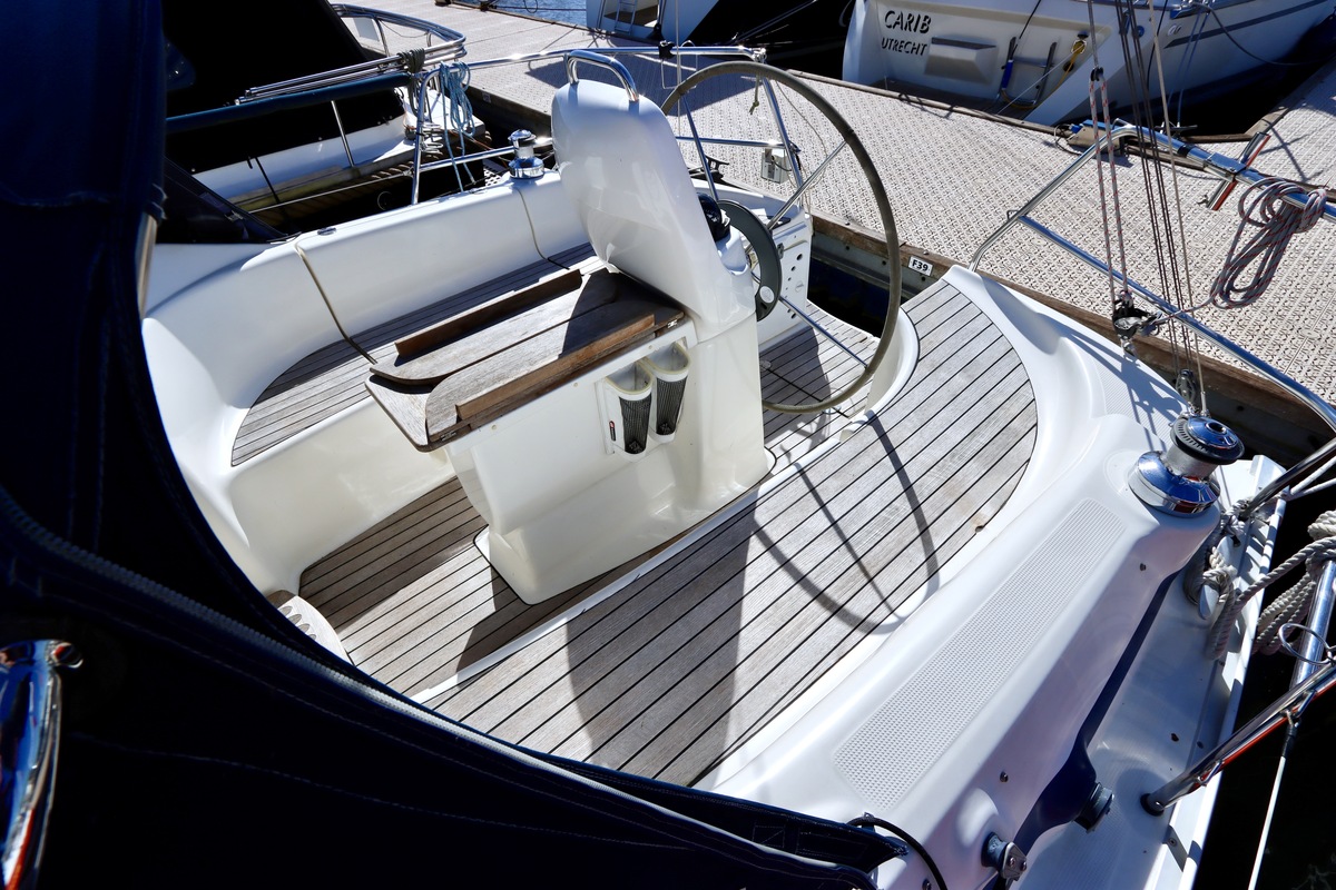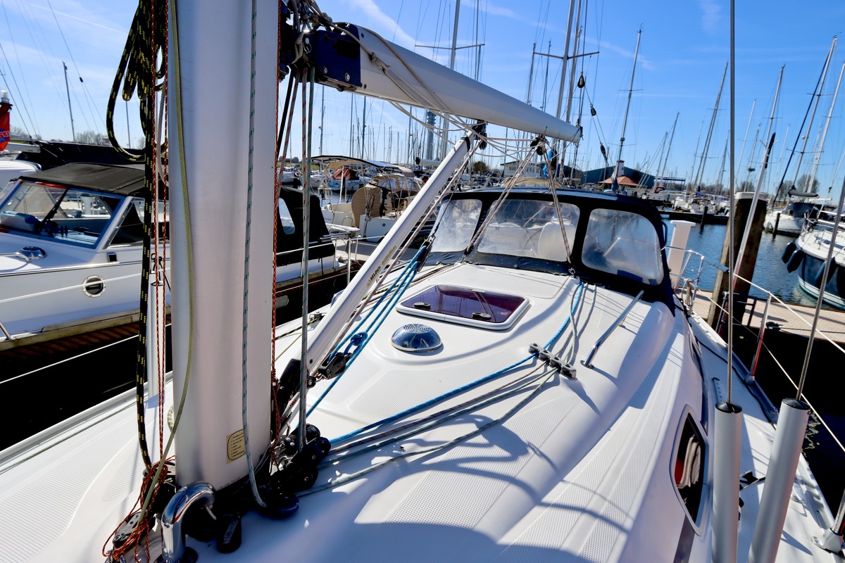 Deze Bavaria 30 Cruiser uit 2005 is een opvallend nette en goed onderhouden cruiser, klaar voor direct gebruik. Het schip ligt aan de verkoopsteiger in Lelystad en maakt bij aankomst direct een verzorgde indruk. De boot is de afgelopen jaren met zorg bijgehouden en waar nodig vernieuwd, wat duidelijk terug te zien is in de algehele staat. Aan dek is alles compleet en netjes afgewerkt. Met onder andere een kuiptafel, buiskap met RVS handgrepen en een praktische indeling waarbij alle lijnen vanuit de kuip te bedienen zijn. Ideaal voor ontspannen zeilen, ook met een kleine bemanning.