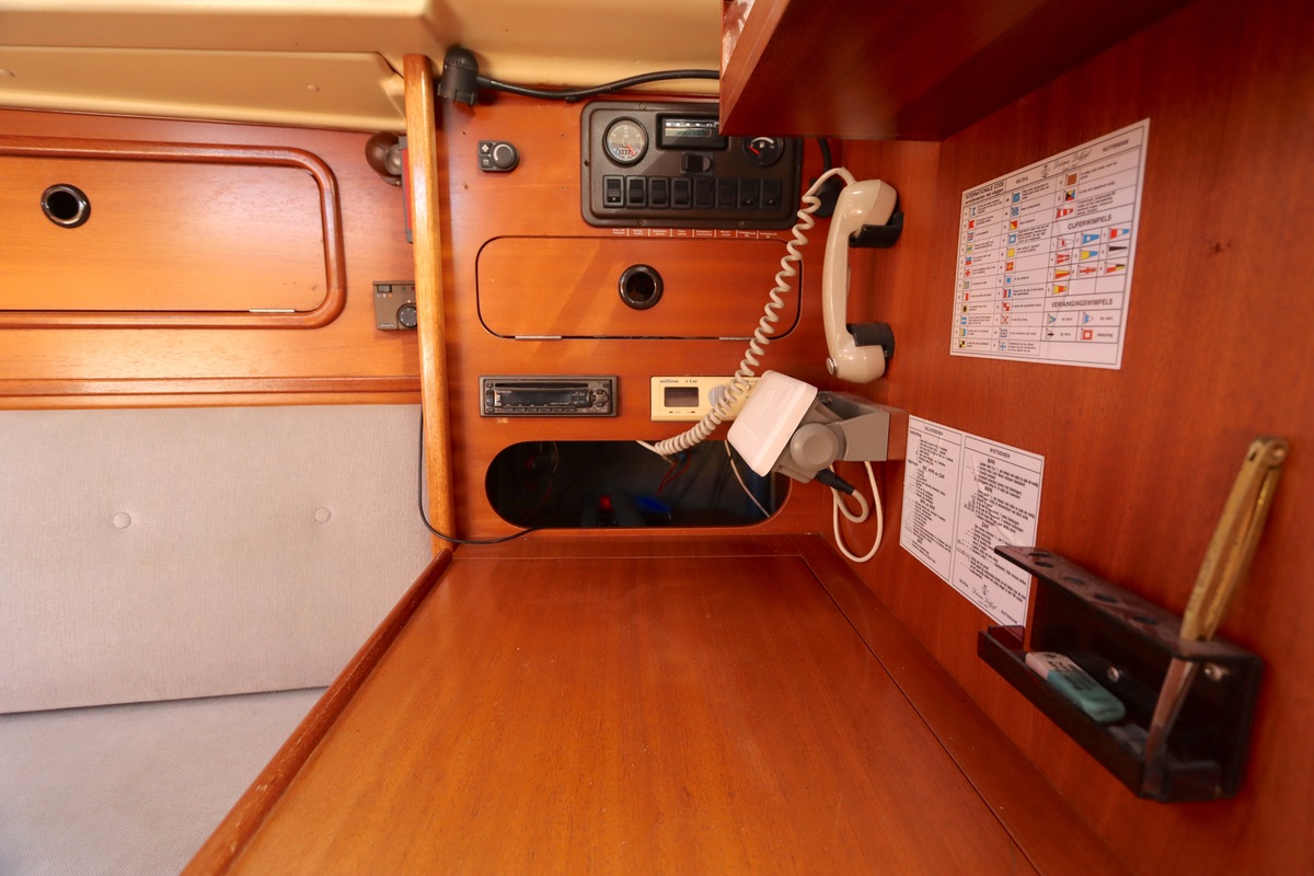 De navigatie is in 2018 geüpgraded met een complete Raymarine i70-set, waardoor je modern en betrouwbaar vaart. Binnen vind je een warm klassiek interieur met mahonie en een nette teak vloer. De Yanmar 2GM20 met 1820 draaiuren loopt mooi en betrouwbaar.