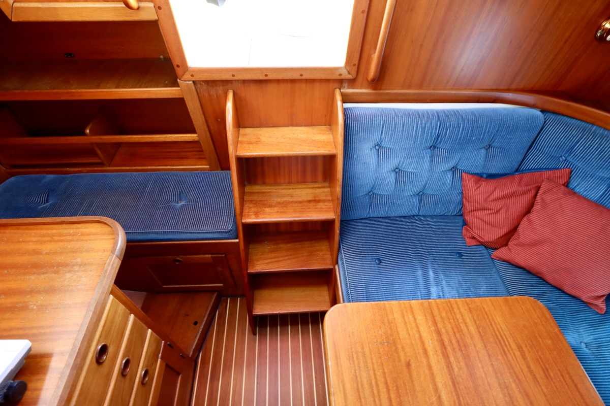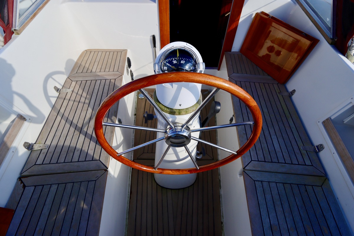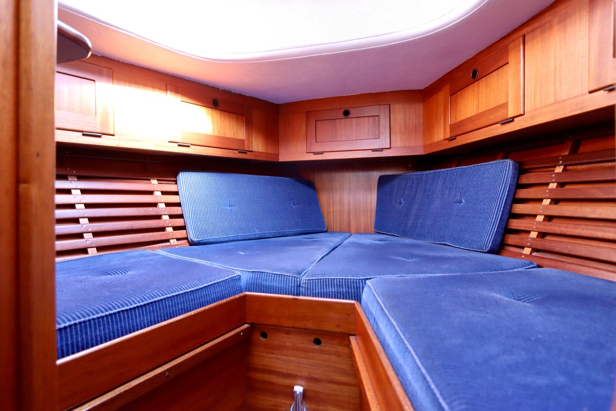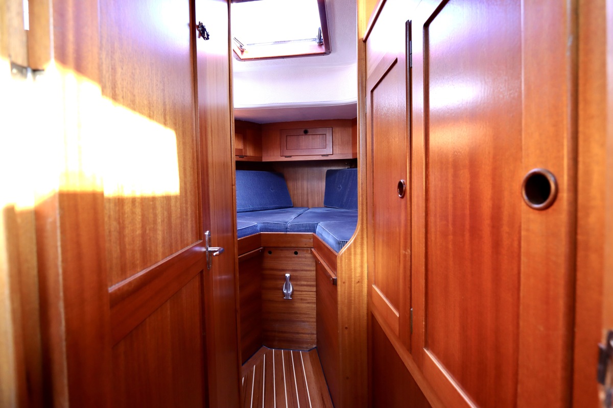 De Nomad SK 34 (Malö 40 ) staat bekend om haar stabiliteit, betrouwbaarheid en kwaliteit. De dikke GRP-romp, het teakdek en het massief houten interieur benadrukken vakmanschap en klasse. De “H”-uitvoering beschikt over een aparte achterkajuit met eigen ingang – ideaal voor gasten – en biedt ondanks haar compacte lengte van net onder de 10 meter verrassend veel ruimte en comfort.