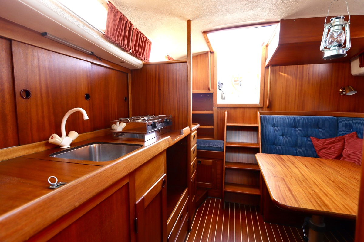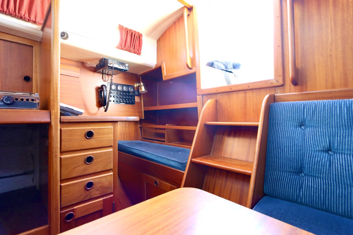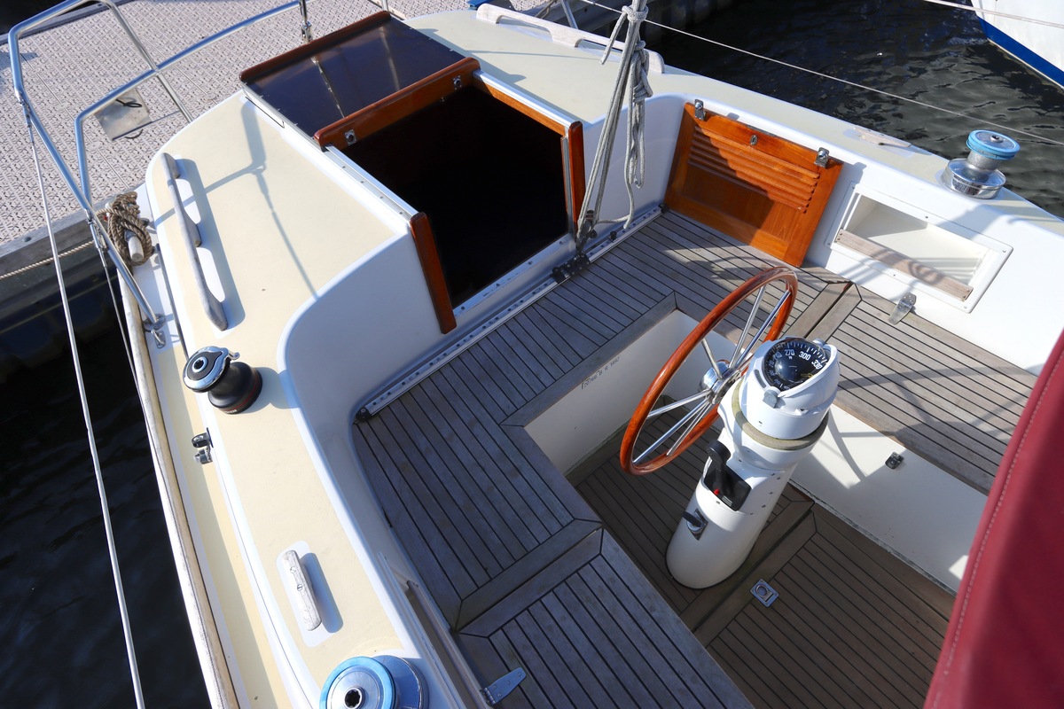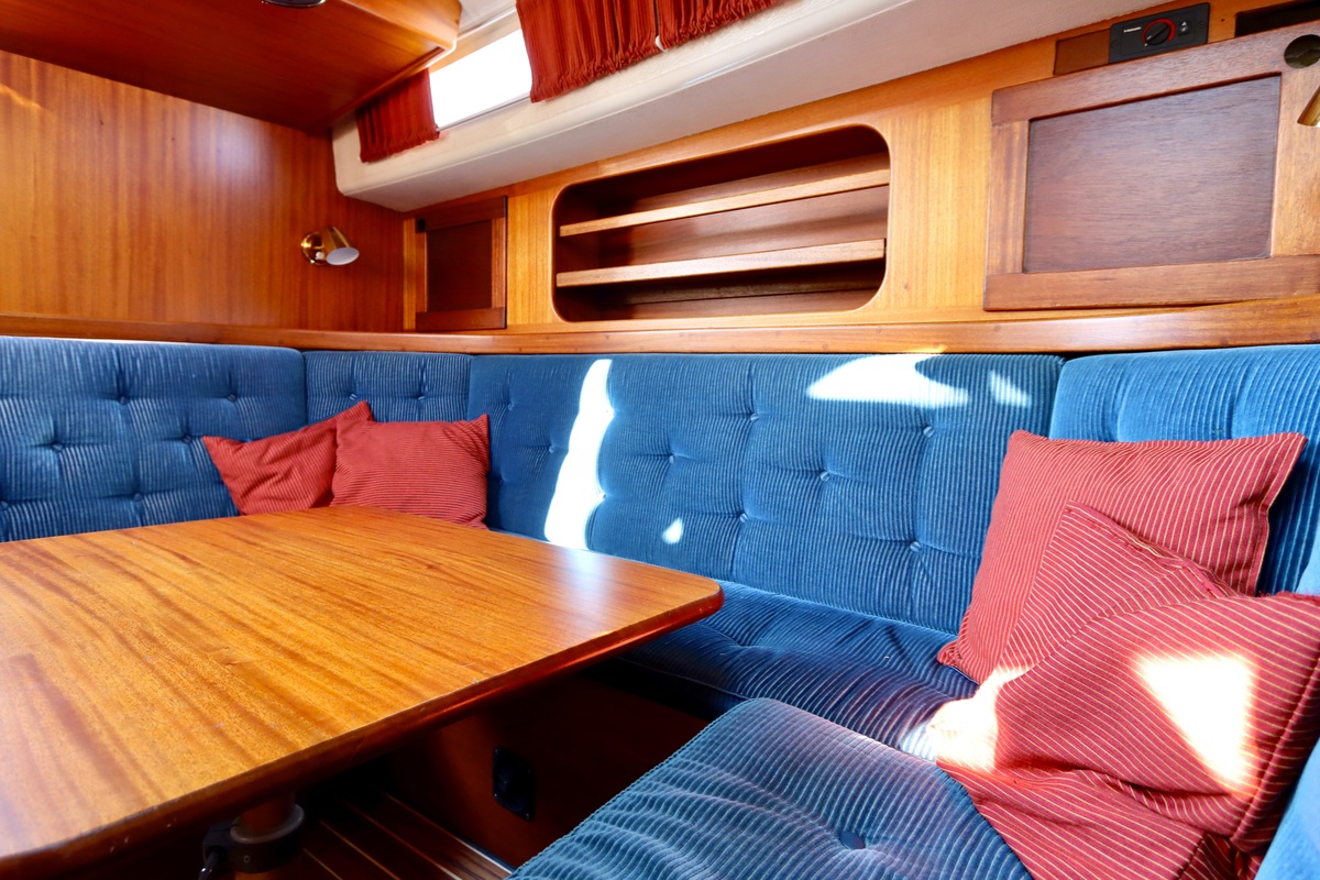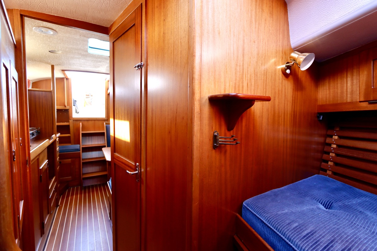 De Nomad SK 34 (Malö 40 ) staat bekend om haar stabiliteit, betrouwbaarheid en kwaliteit. De dikke GRP-romp, het teakdek en het massief houten interieur benadrukken vakmanschap en klasse. De “H”-uitvoering beschikt over een aparte achterkajuit met eigen ingang – ideaal voor gasten – en biedt ondanks haar compacte lengte van net onder de 10 meter verrassend veel ruimte en comfort.