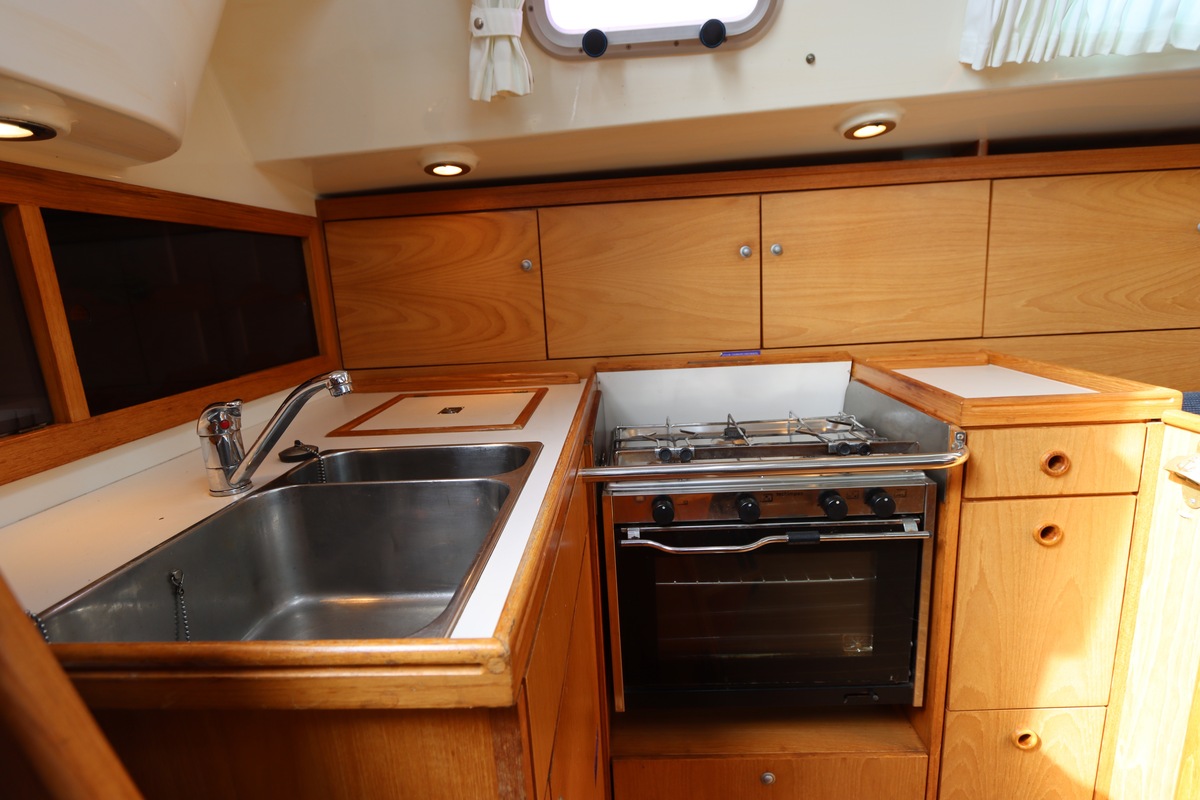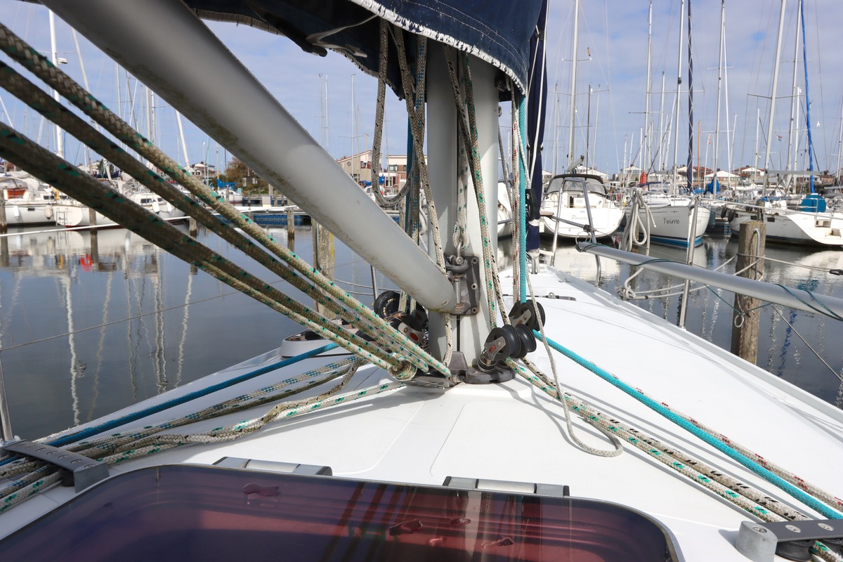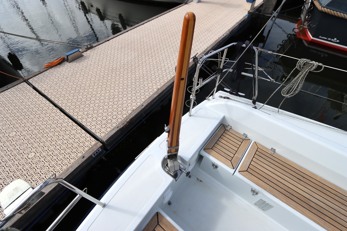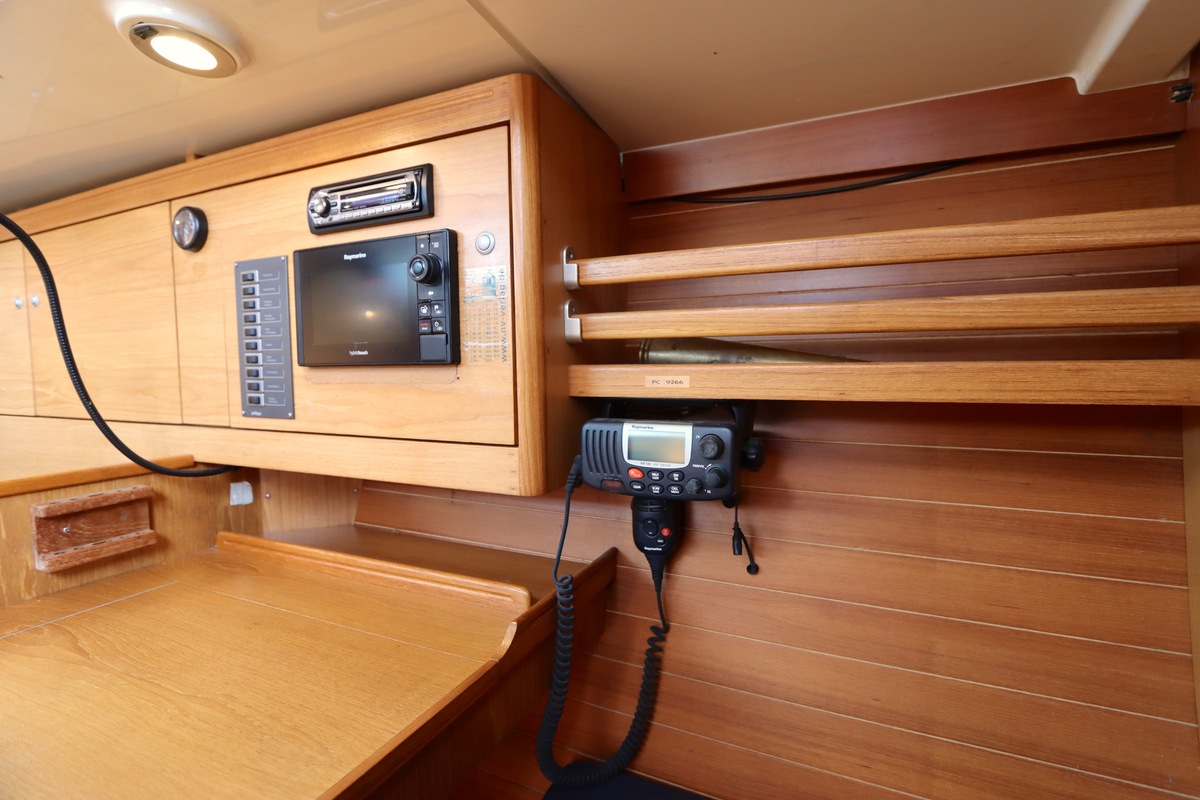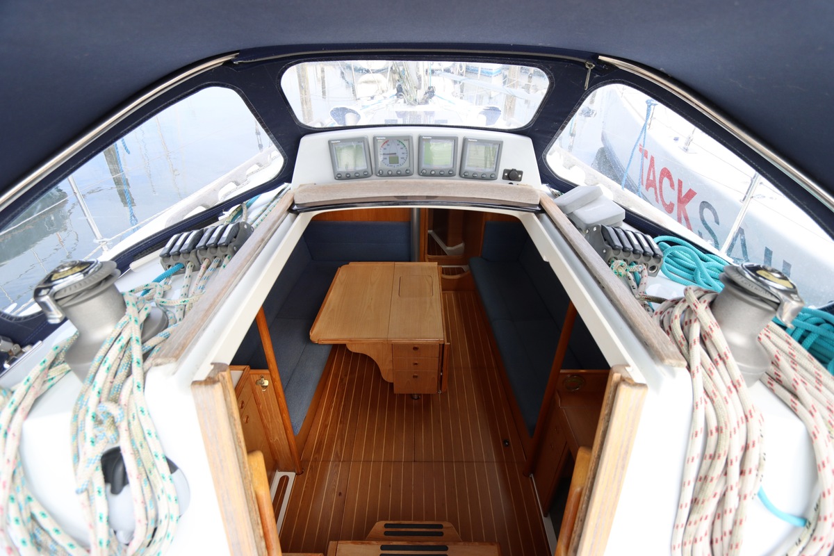 Aan dek is het leven prettig en overzichtelijk. De ruime kuip, brede gangboorden en het zwemplateau zorgen voor comfort en veiligheid. Alles voelt logisch en goed doordacht. Benedendeks tref je een licht en warm interieur van blond teak. De indeling is praktisch met twee hutten, lange bedden en een comfortabele salon. De kombuis is compleet uitgevoerd en alle technische ruimtes zijn goed bereikbaar, wat het onderhoud eenvoudig maakt. Met de betrouwbare Yanmar motor, goede zeilgarderobe en complete uitrusting is dit een schip waar je zo mee weg kunt.