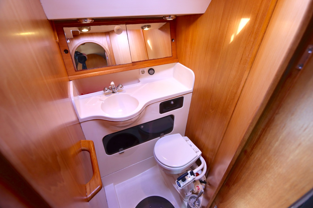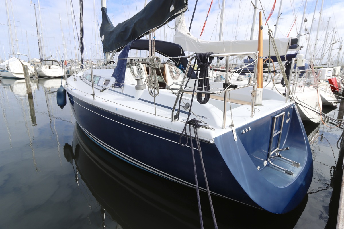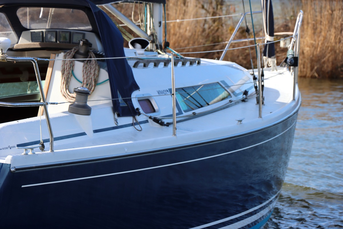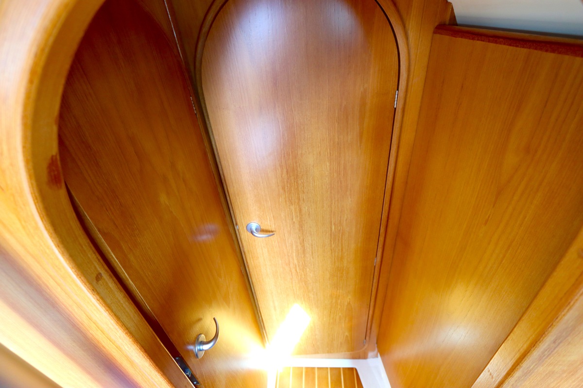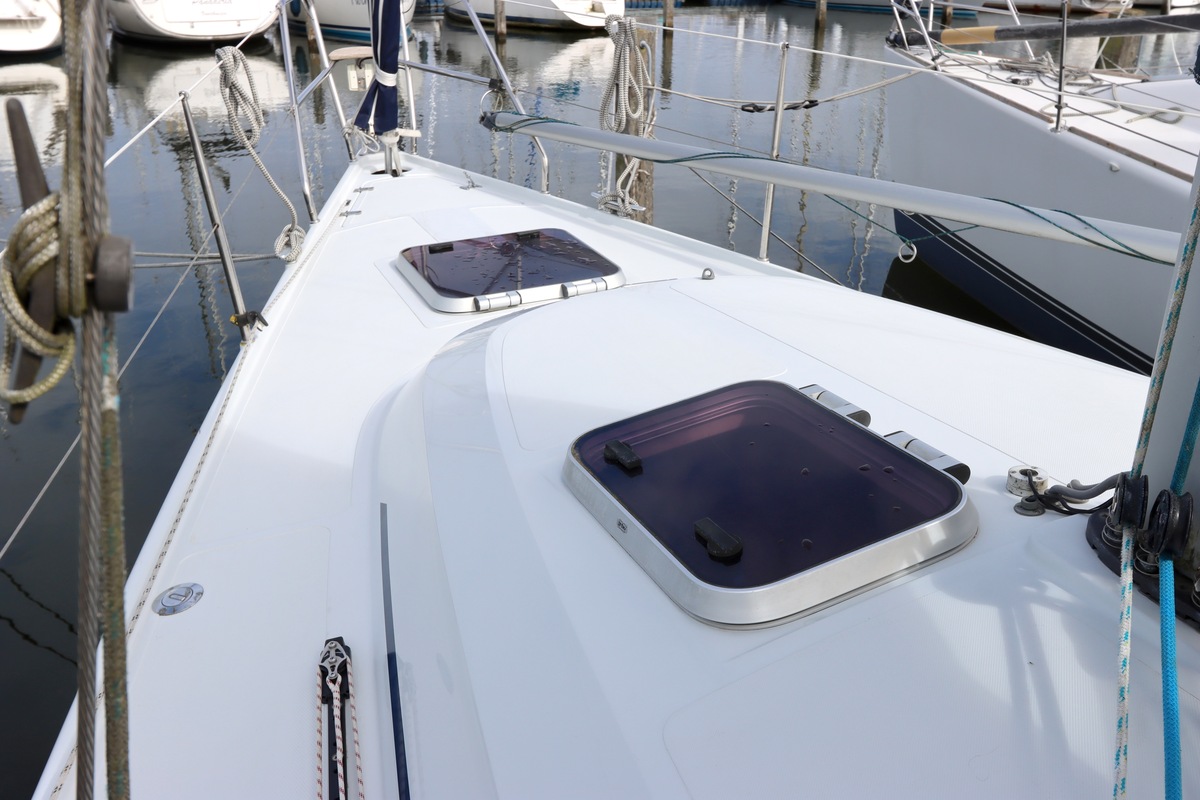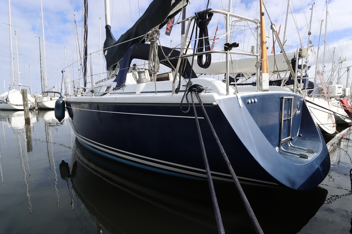 Aan dek is het leven prettig en overzichtelijk. De ruime kuip, brede gangboorden en het zwemplateau zorgen voor comfort en veiligheid. Alles voelt logisch en goed doordacht. Benedendeks tref je een licht en warm interieur van blond teak. De indeling is praktisch met twee hutten, lange bedden en een comfortabele salon. De kombuis is compleet uitgevoerd en alle technische ruimtes zijn goed bereikbaar, wat het onderhoud eenvoudig maakt. Met de betrouwbare Yanmar motor, goede zeilgarderobe en complete uitrusting is dit een schip waar je zo mee weg kunt.