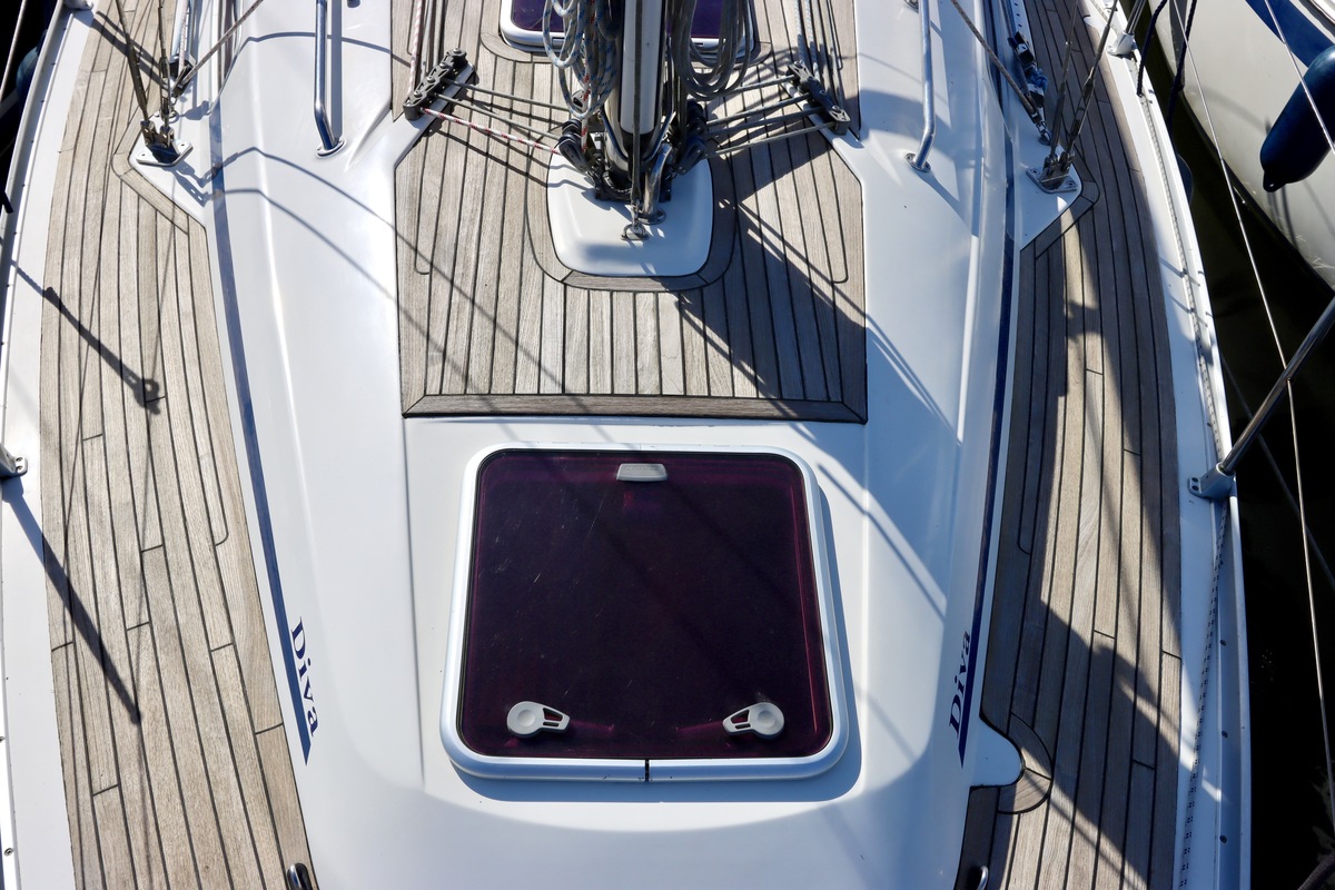 Teak dek van 2008 in redelijke staat.