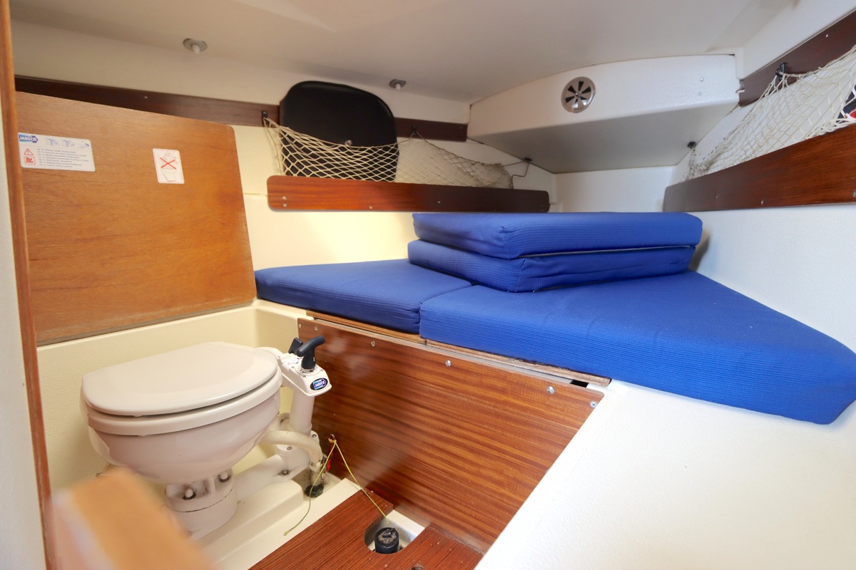 Kajuit met 2 slaapplaatsen en 2 in de punt.