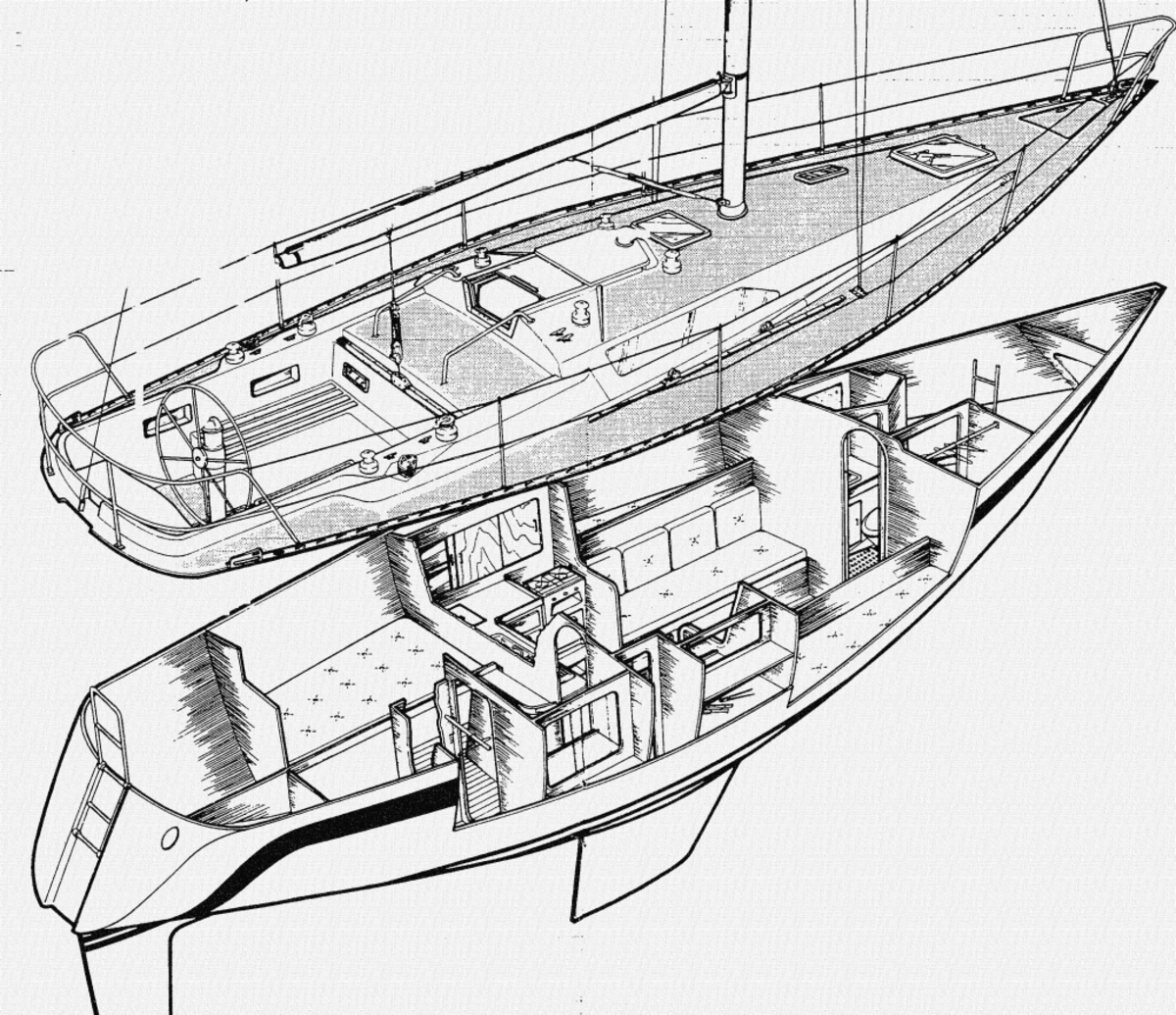 Voohut, achterhut en kajuit