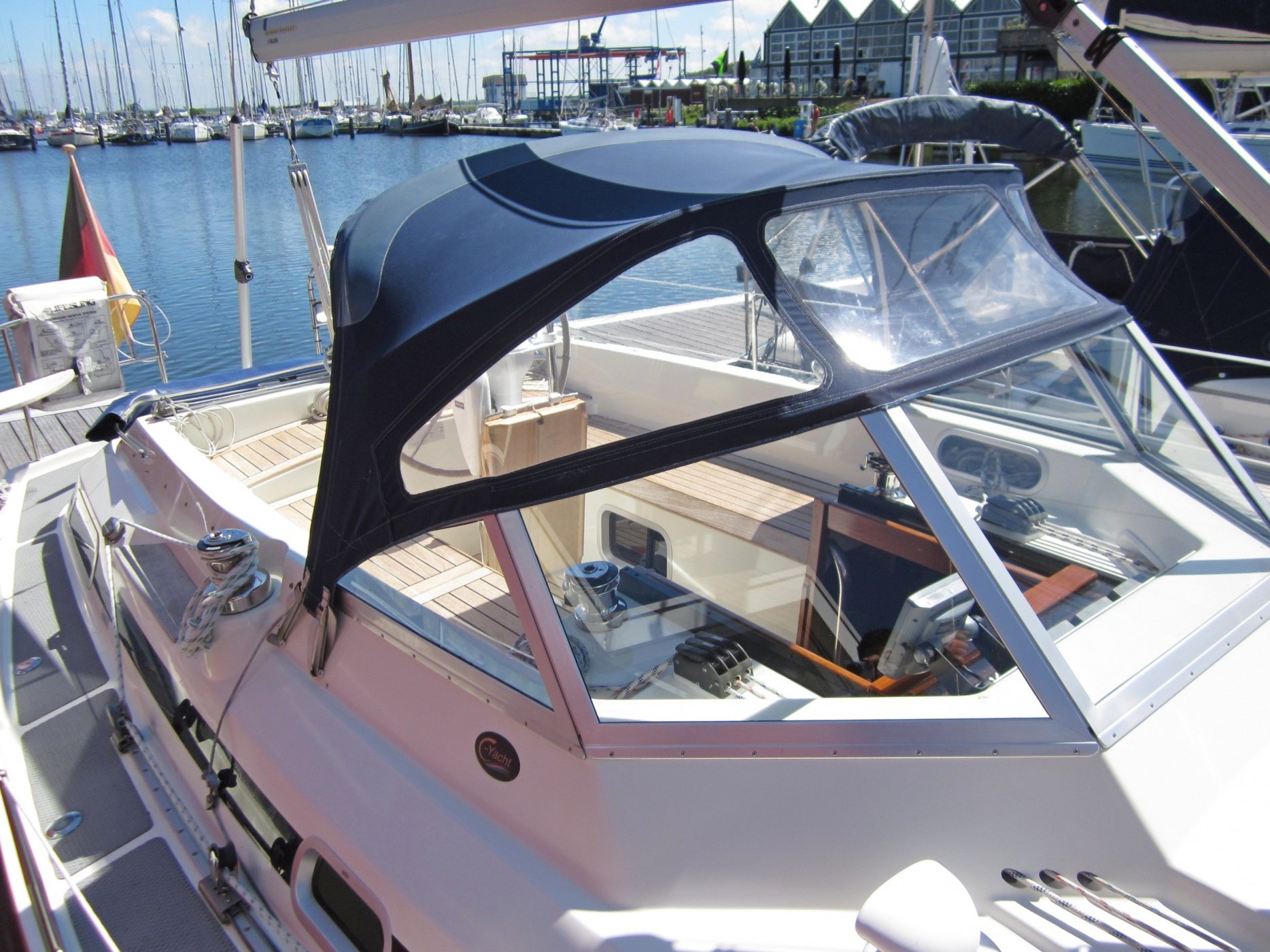 Met vast windscherm en RVS frame en kuipentent met RVS frame