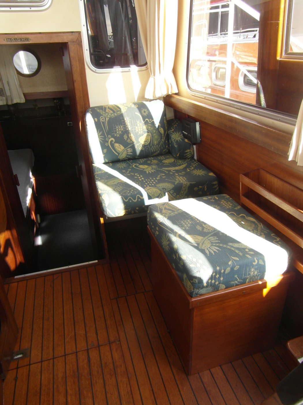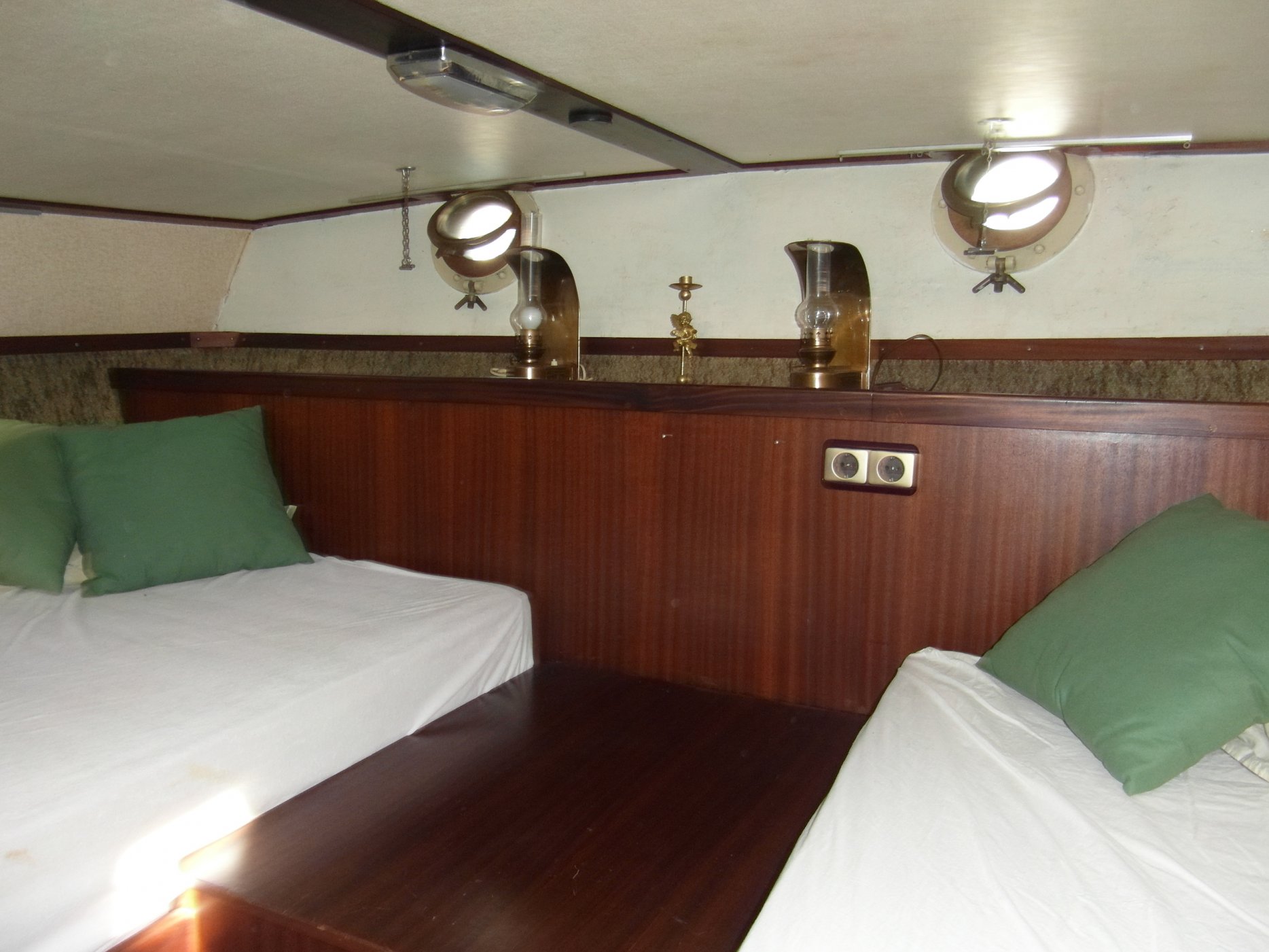 Voorkajuit / Toilet en douche / Kombuis / Salon / Achterkajuit