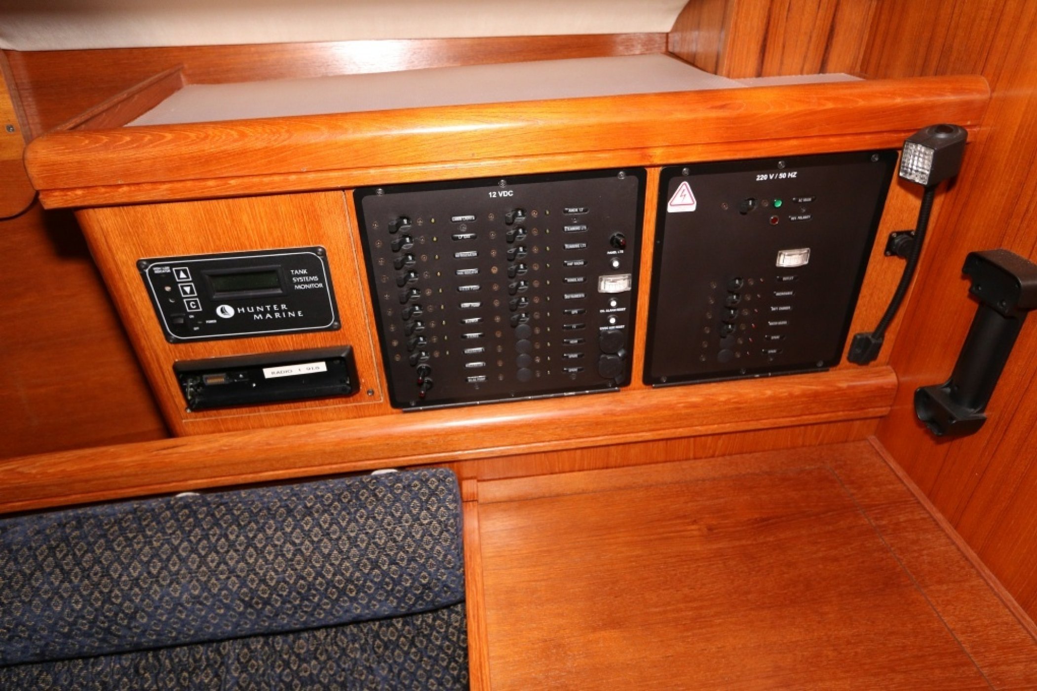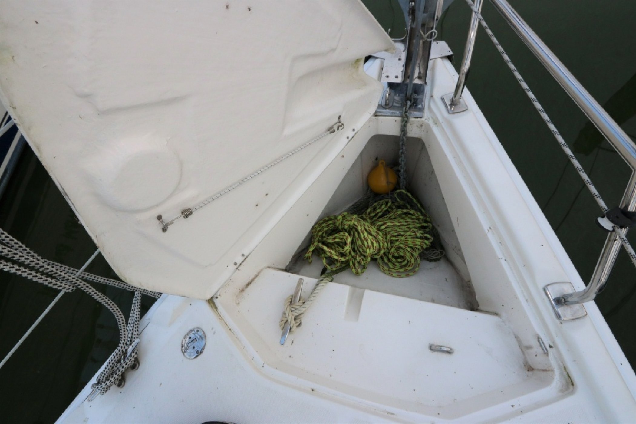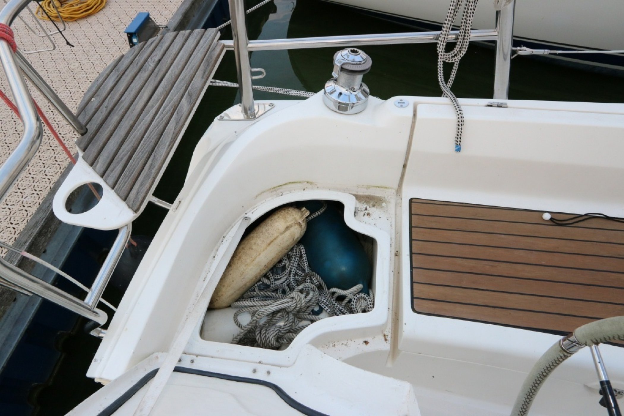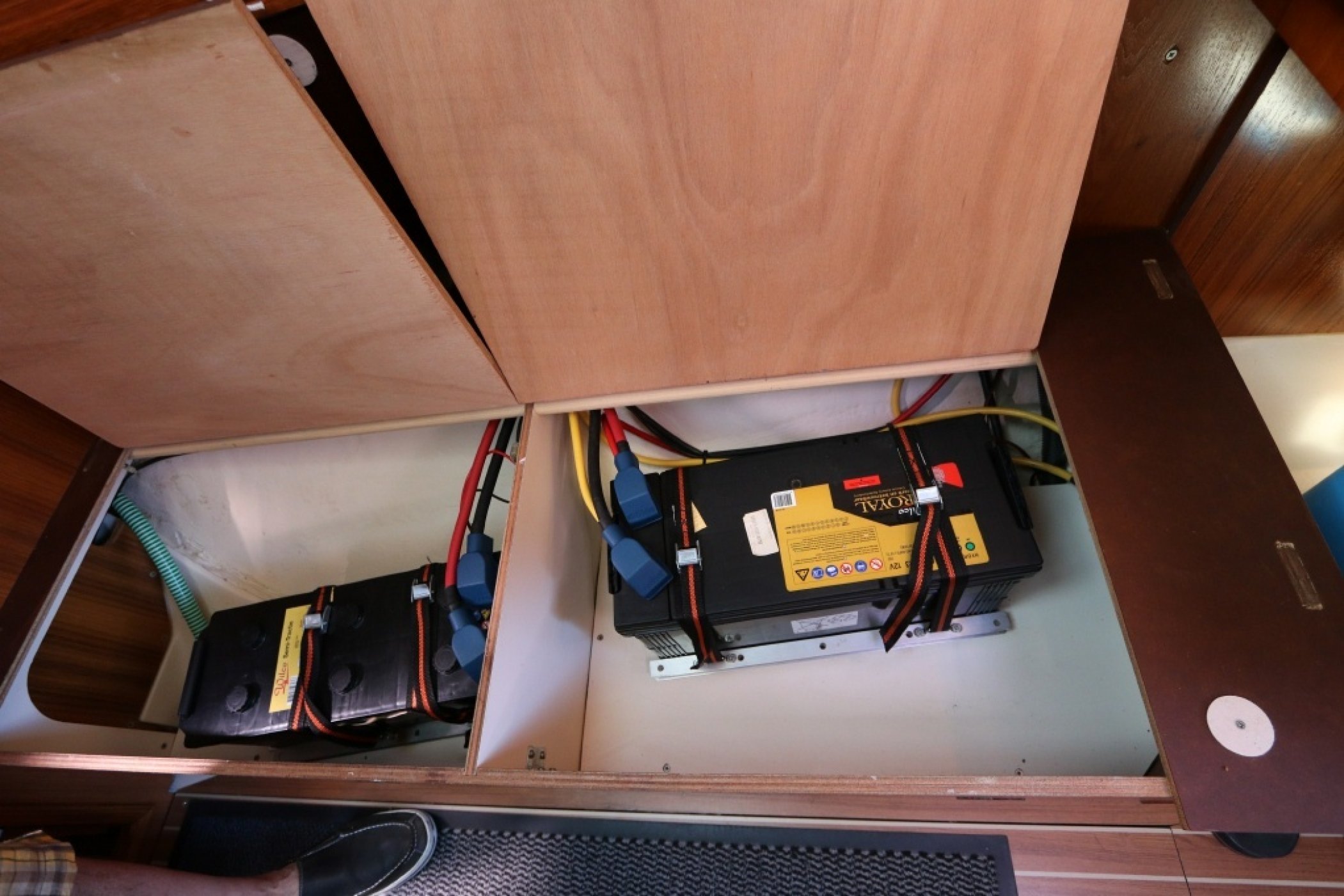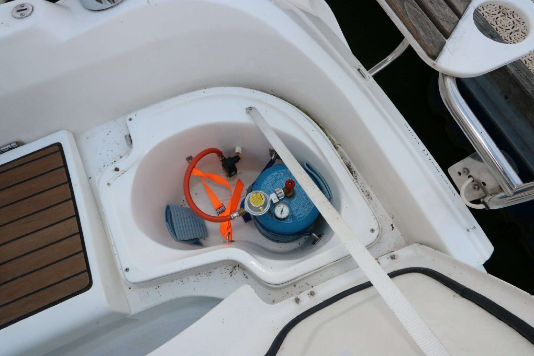 Brandblusser bij kombuis, 2x in de bakskist en 1 automatische in de motorruimte.