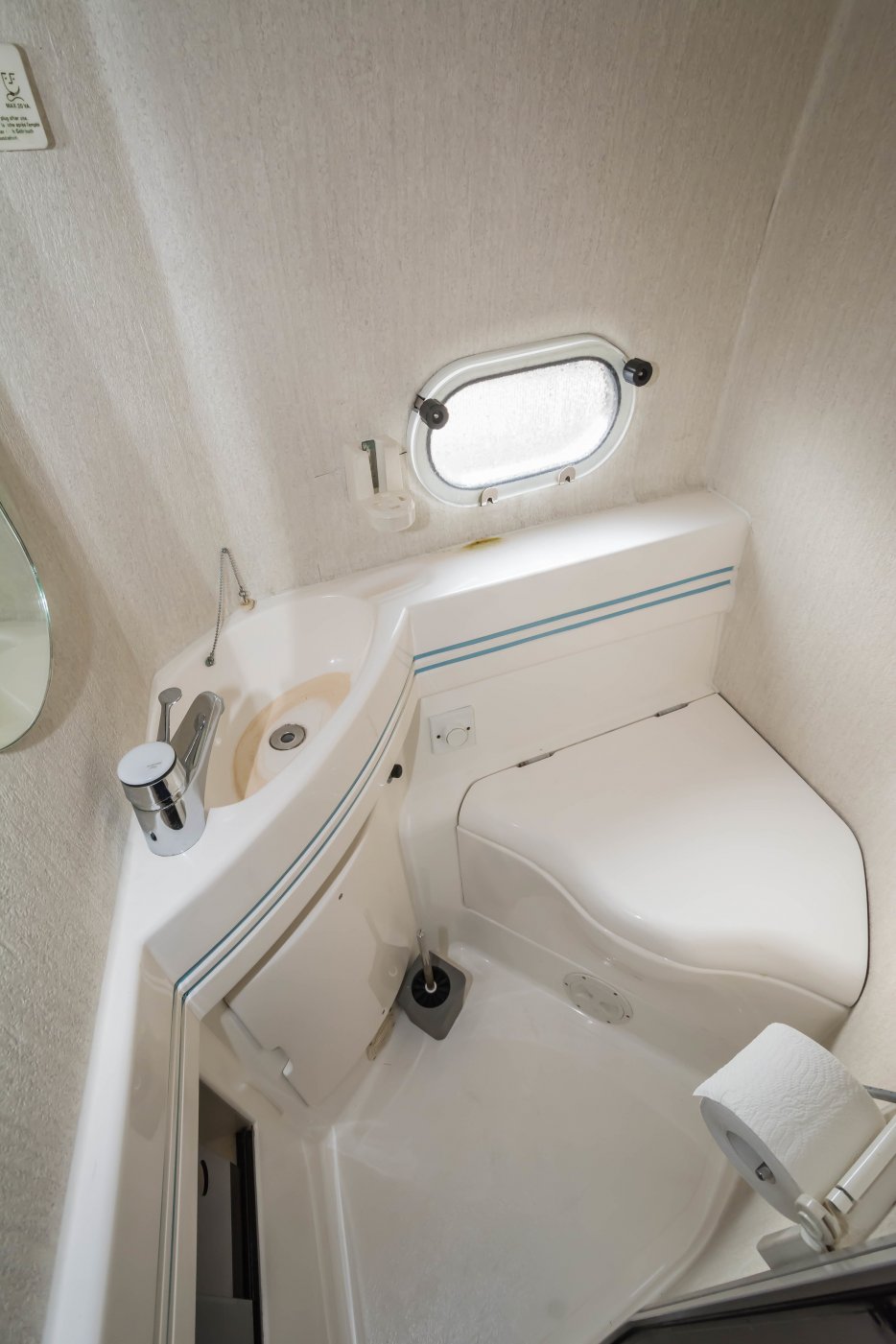 Voorkajuit / Gasten hut / Toilet met douche / Pantry / Salon / Achterkajuit / Douche / Toilet