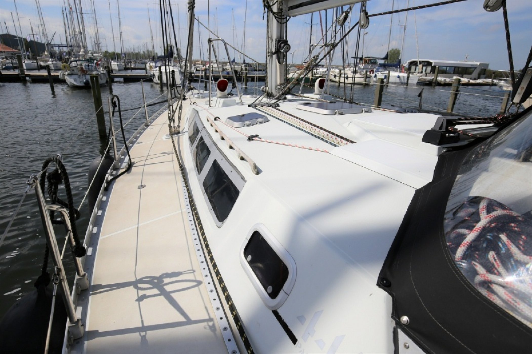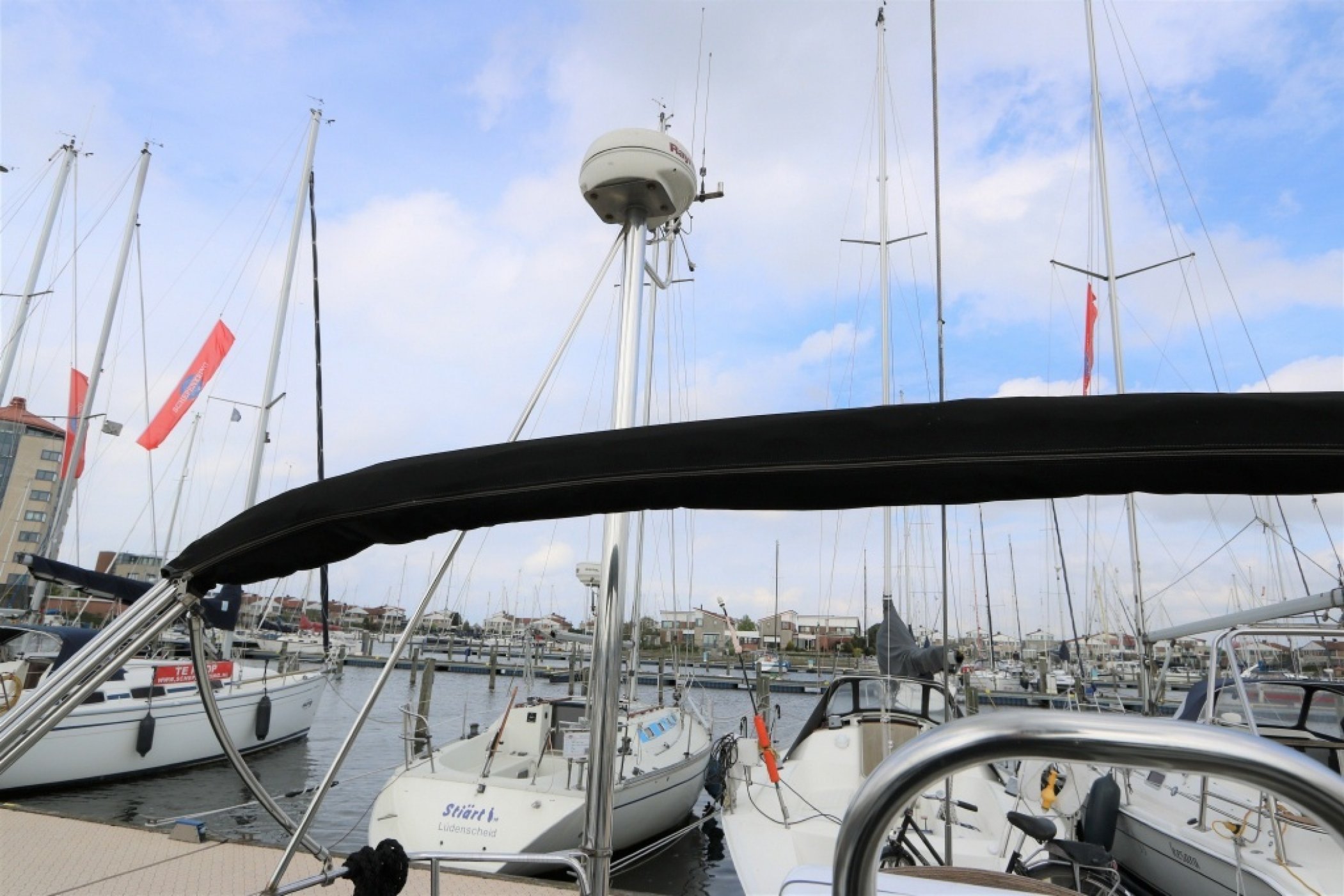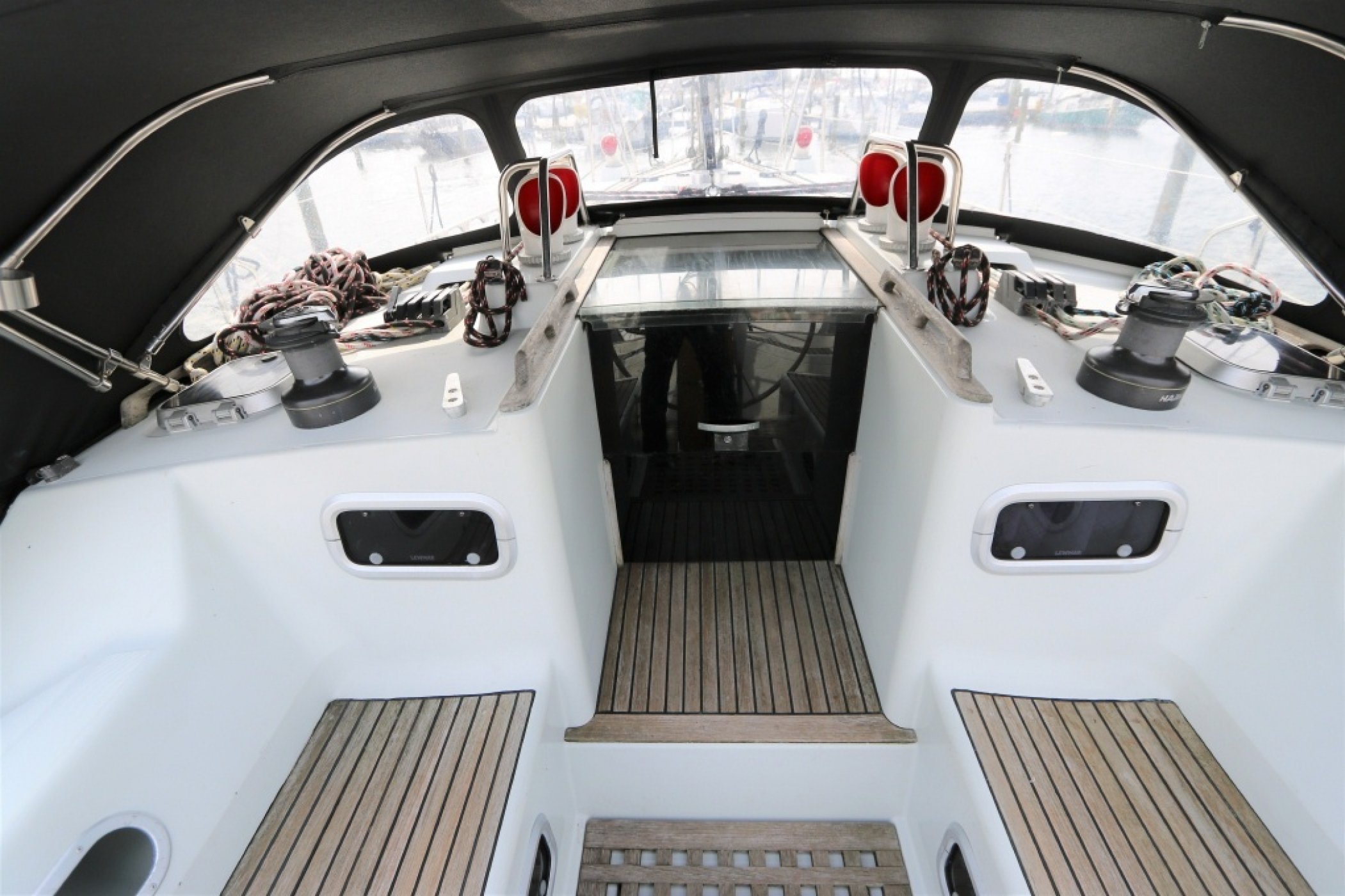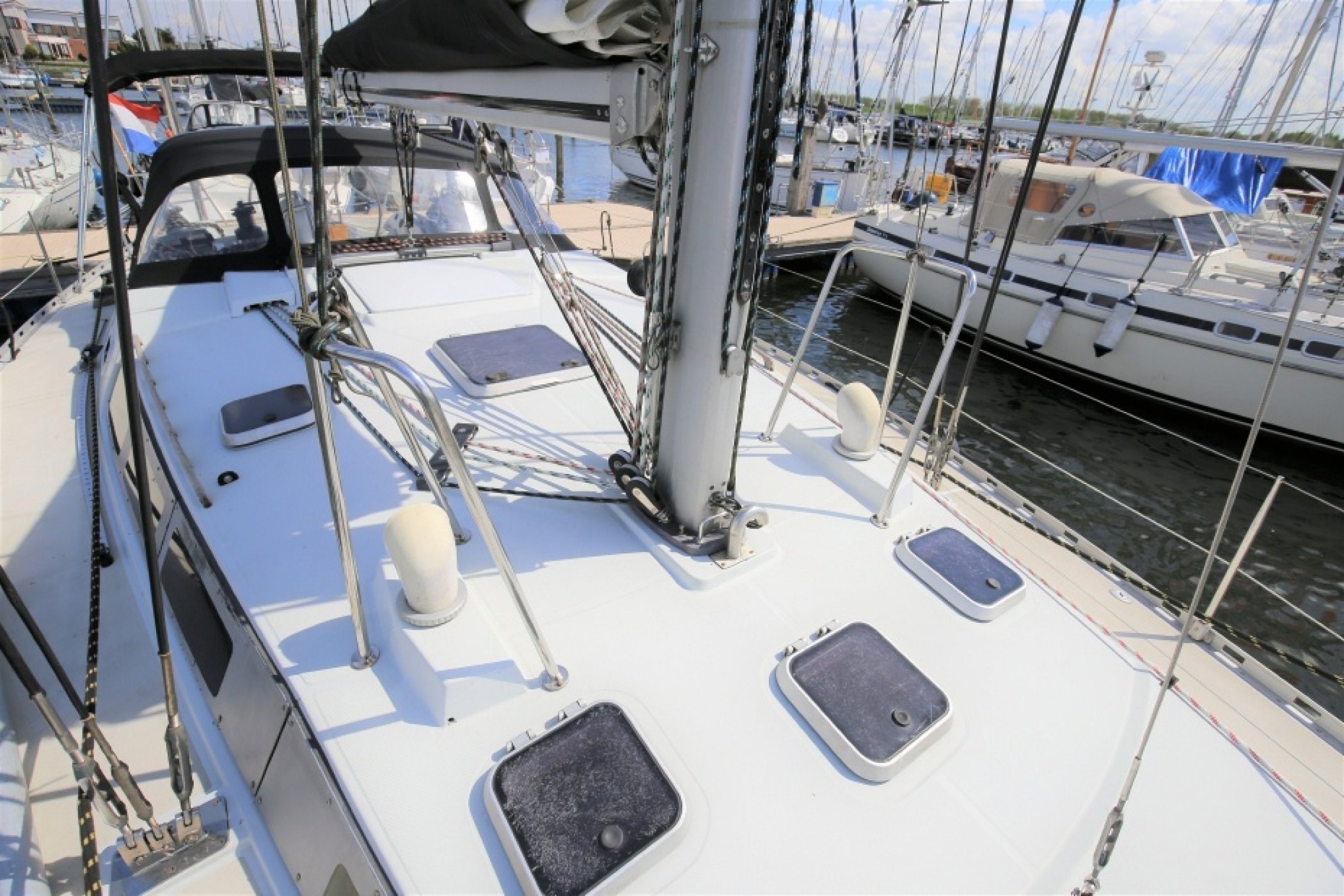 2 x Selftailing schootlieren, 2 Selftailing vallieren en 1 reeflier op de mast (allen Harken).