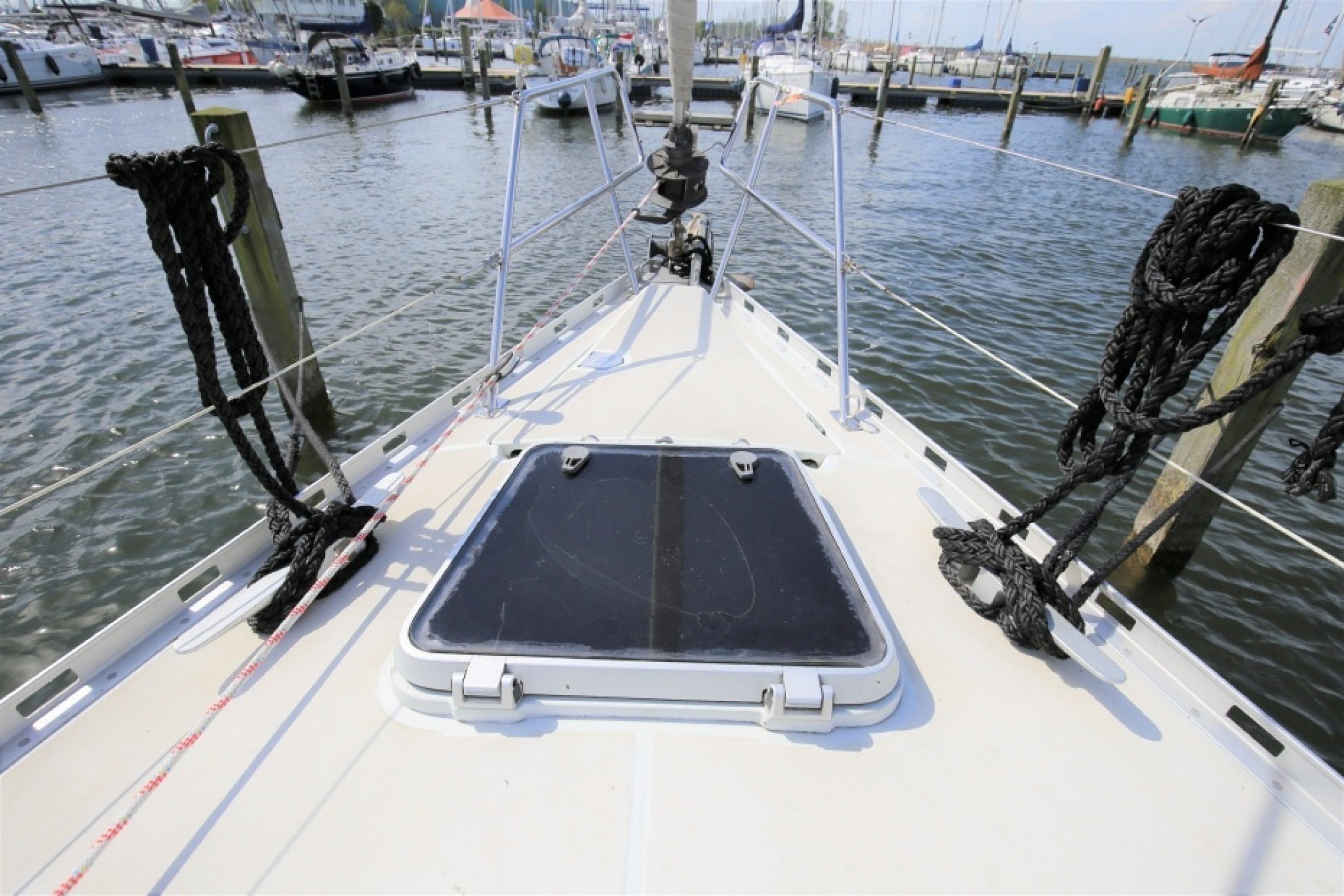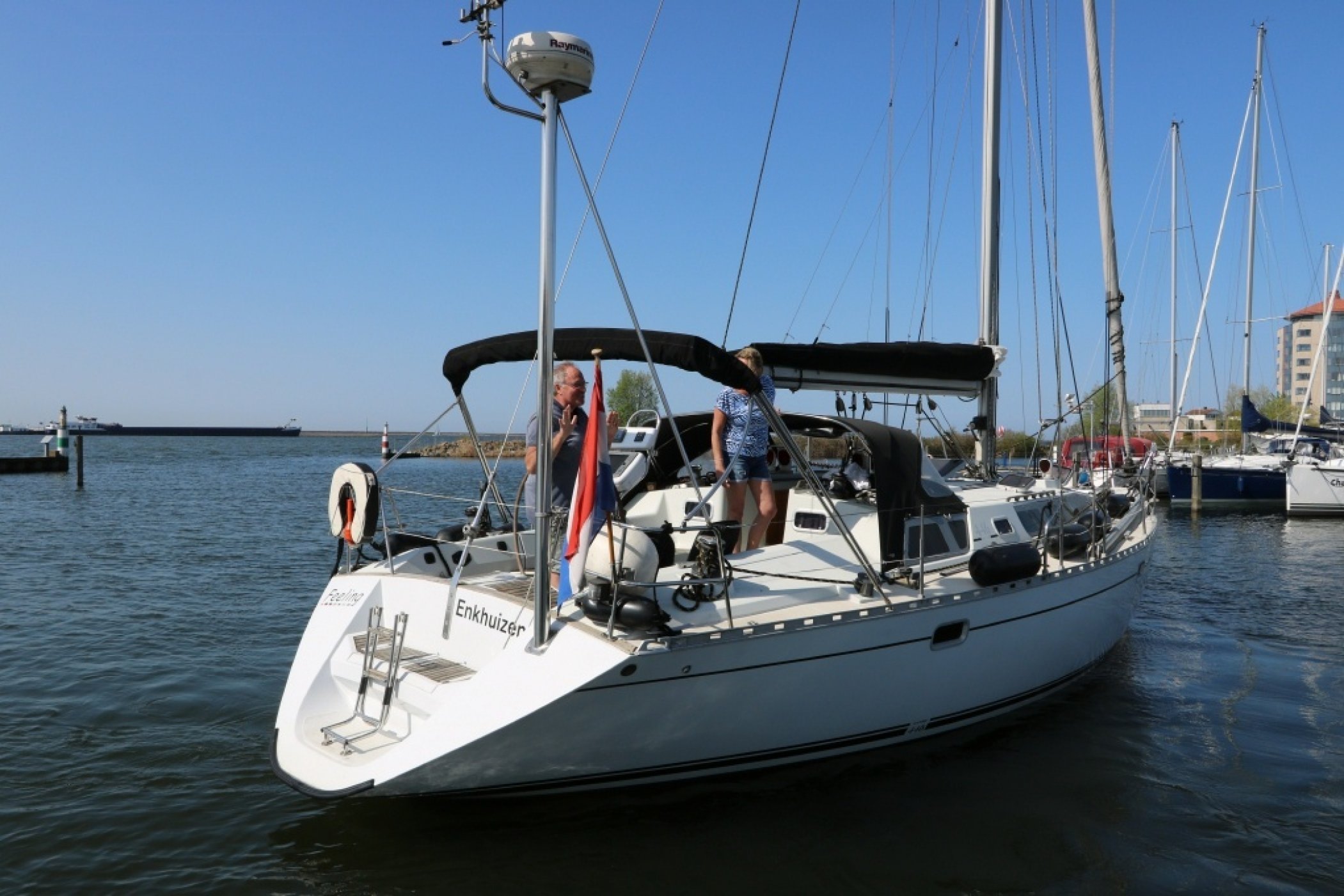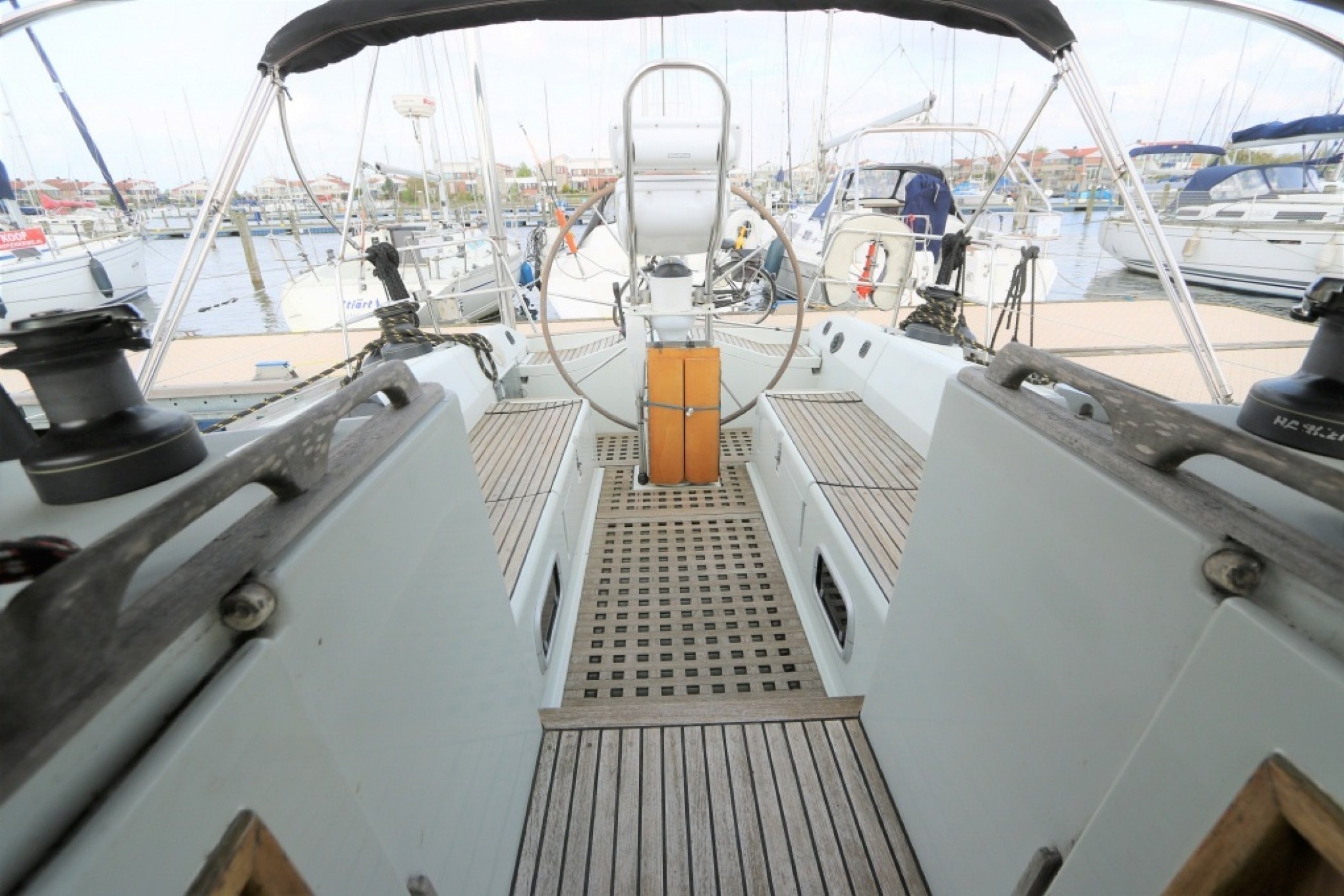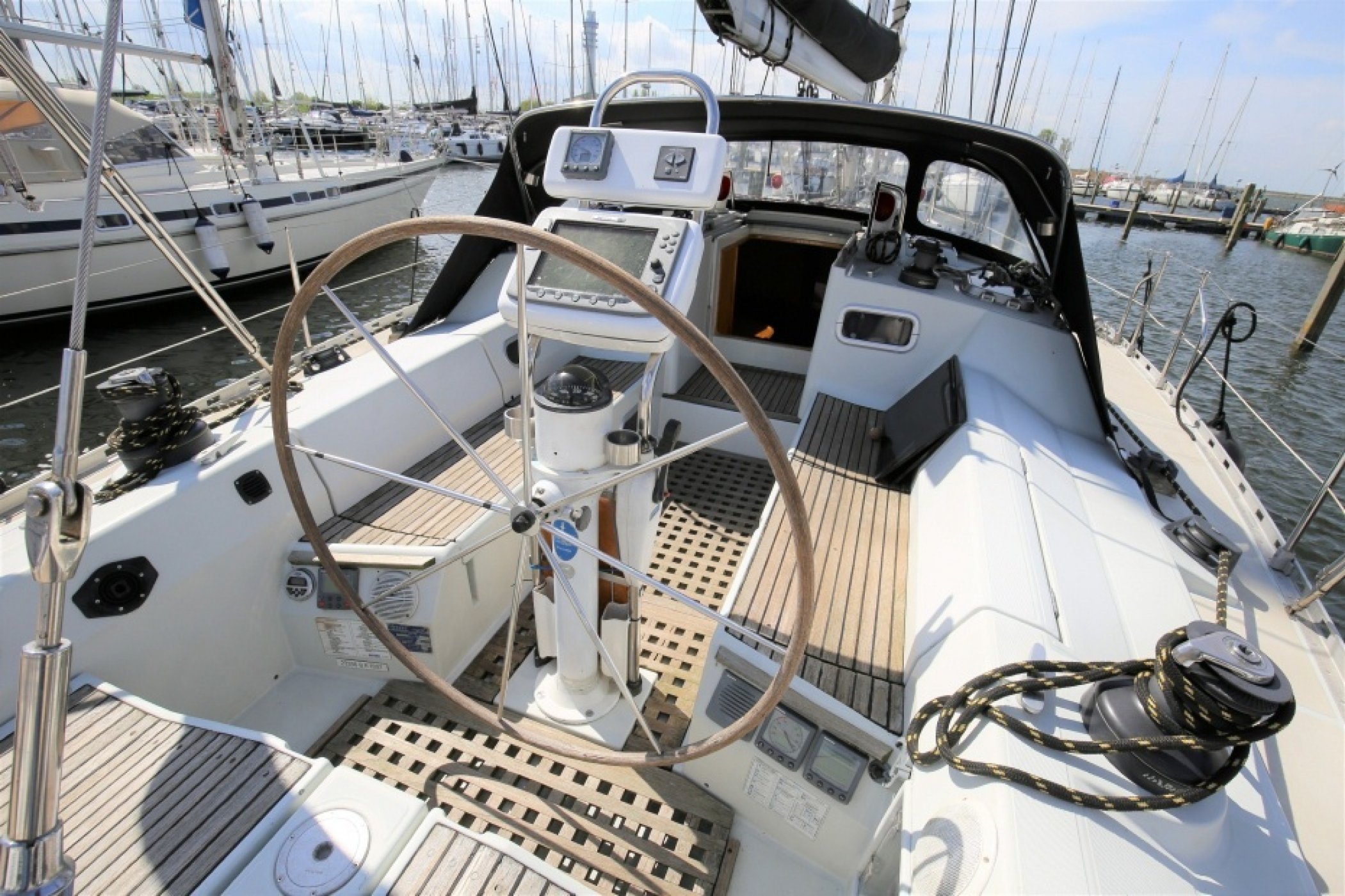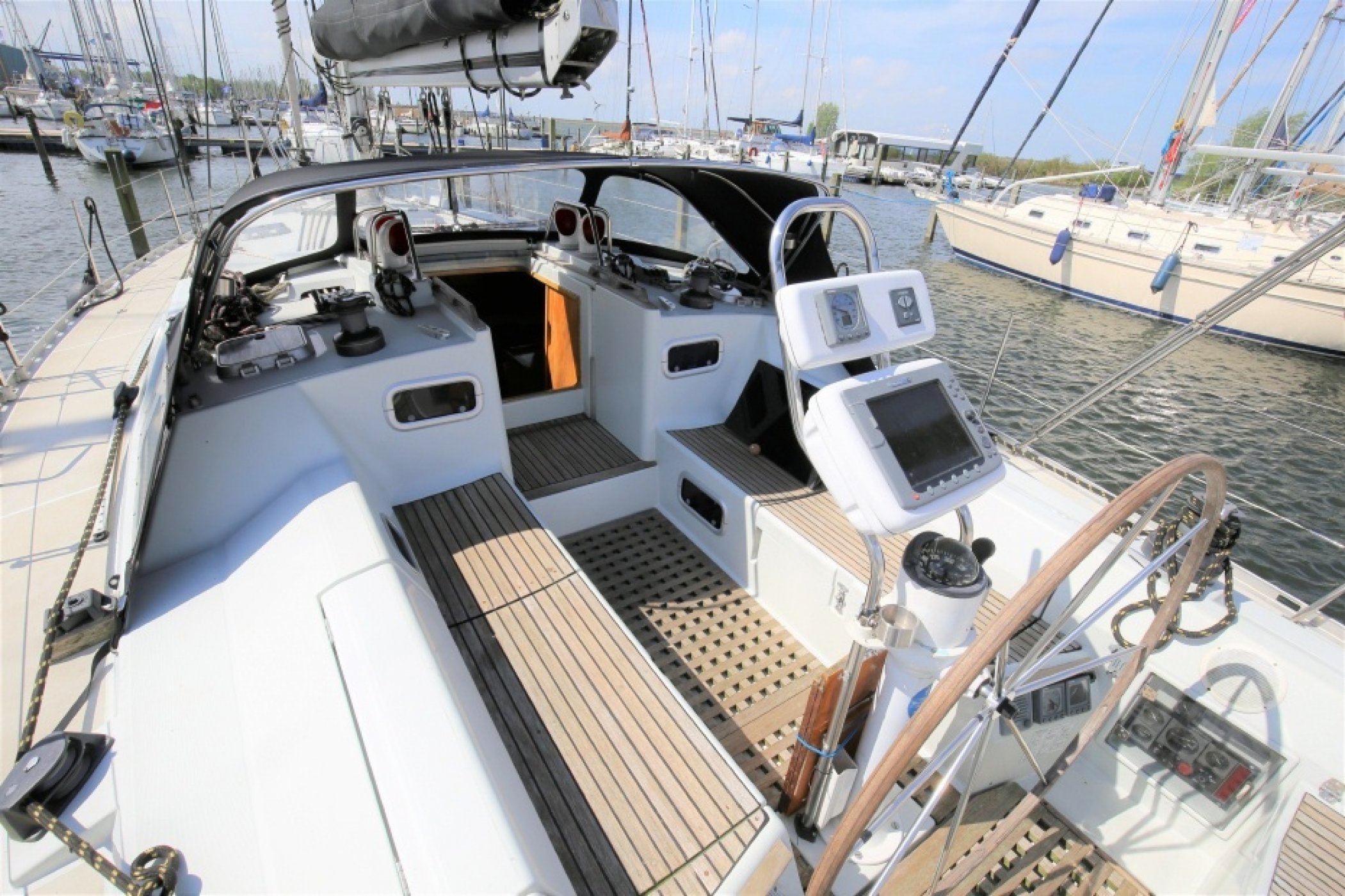 2 x Selftailing schootlieren, 2 Selftailing vallieren en 1 reeflier op de mast (allen Harken).