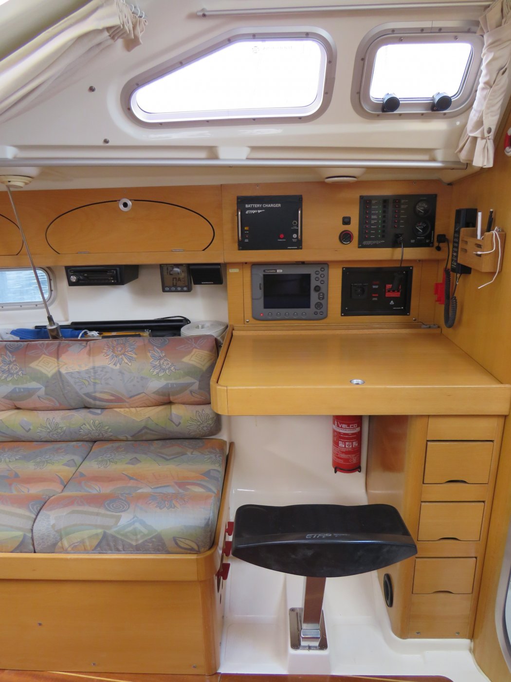 Salon, voorhut, achterhut, toilet