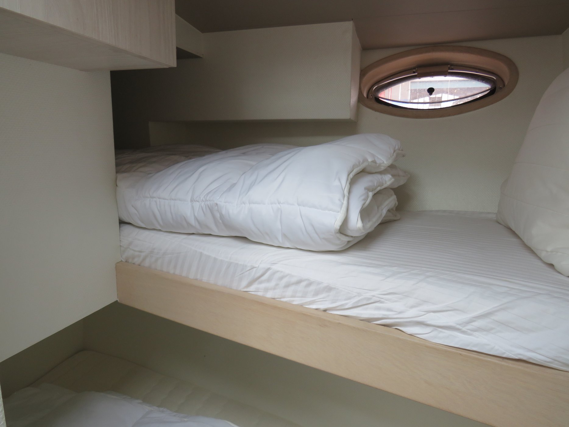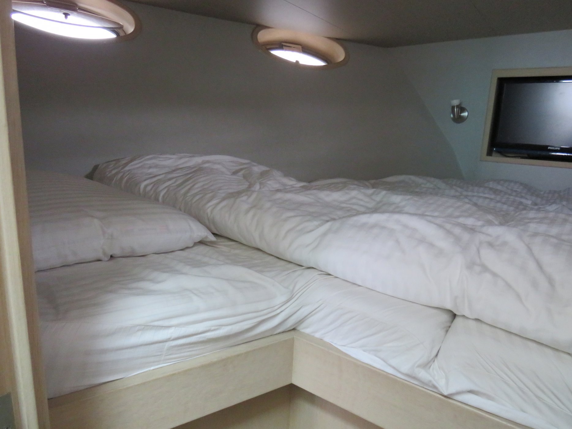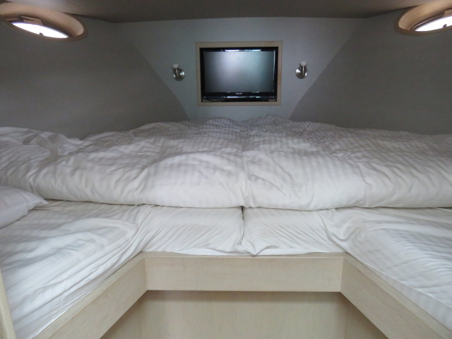 Voorpunt - kabin met stapelbed - wc/douche cel - salon met stuurstand en keuken