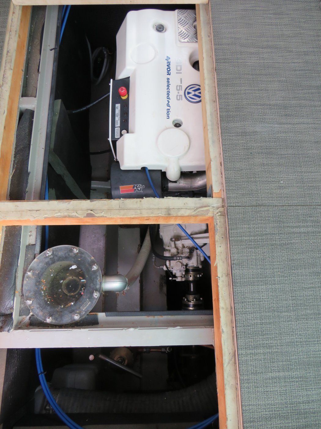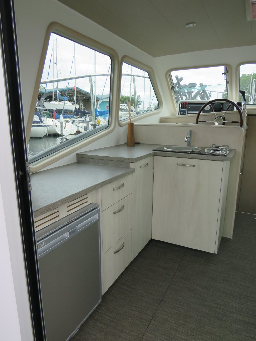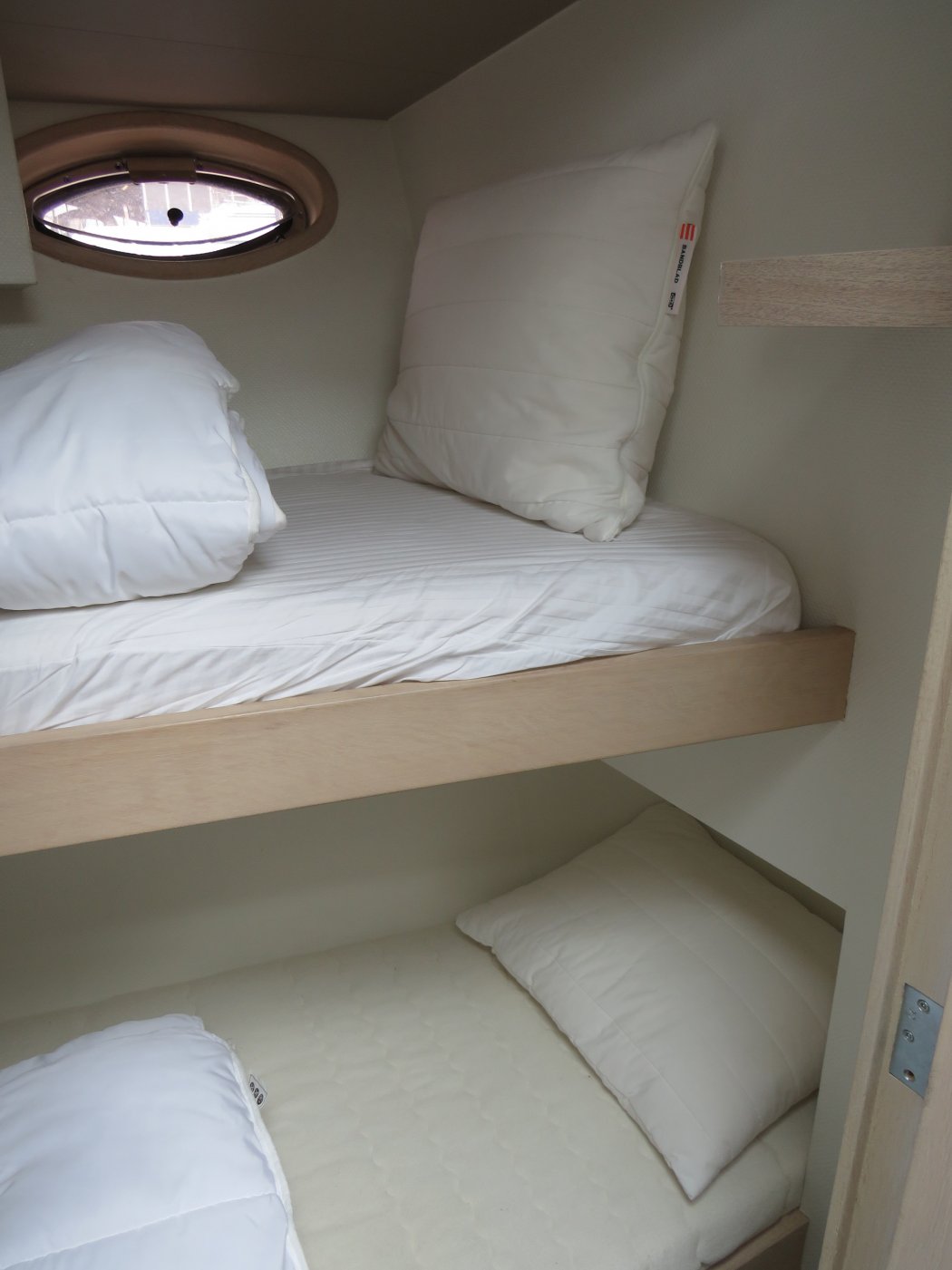 Voorpunt - kabin met stapelbed - wc/douche cel - salon met stuurstand en keuken
